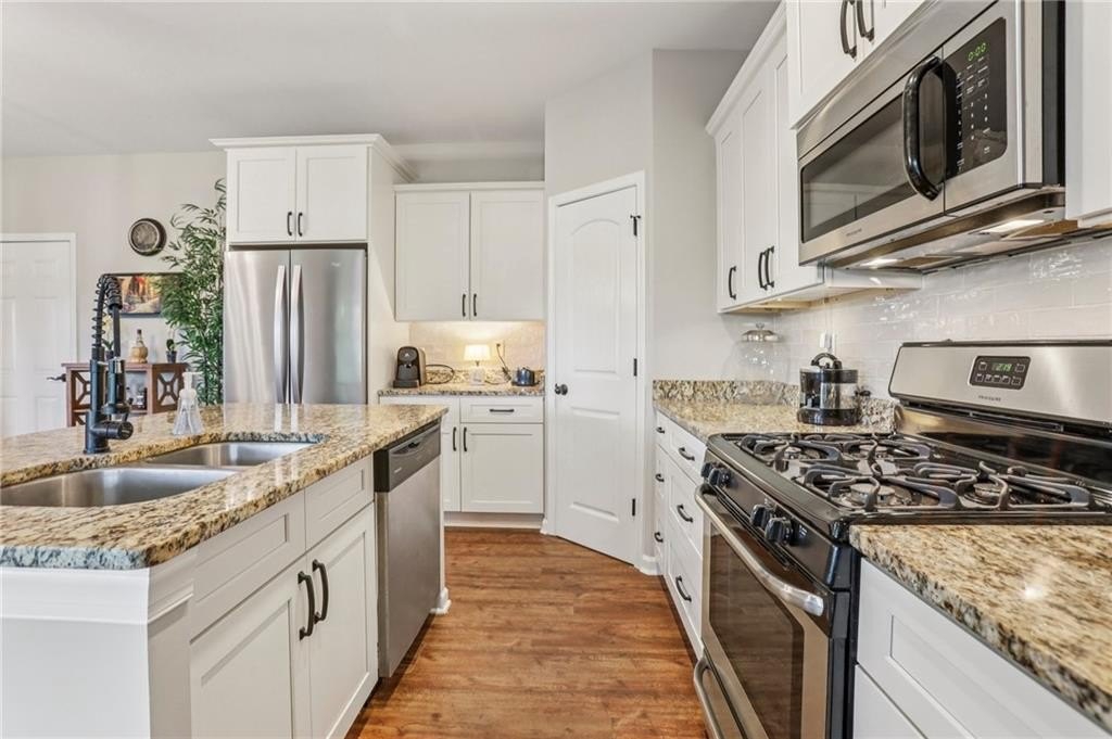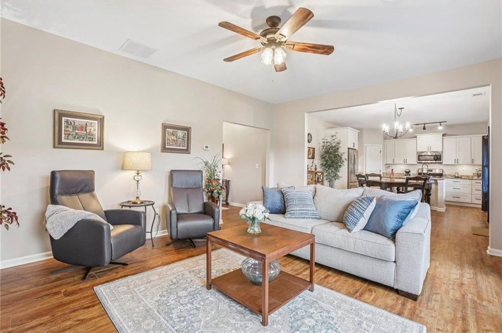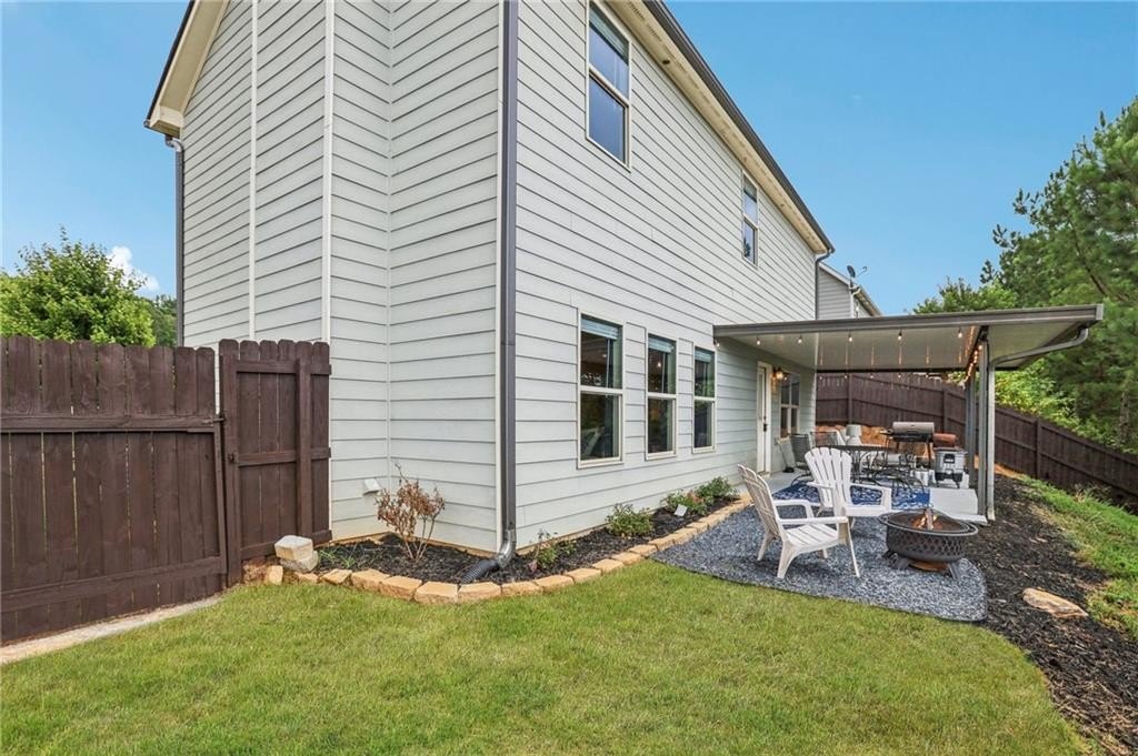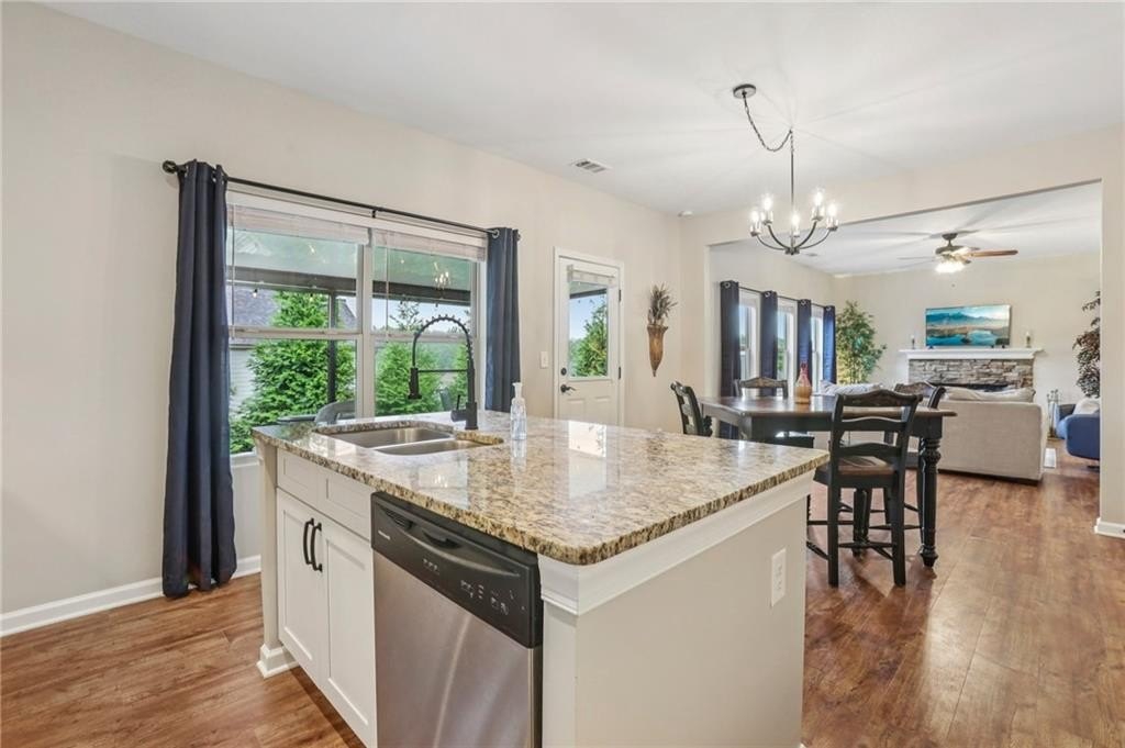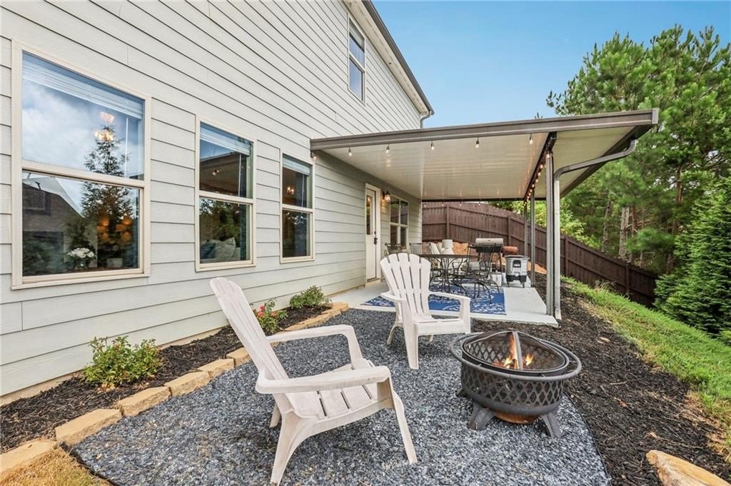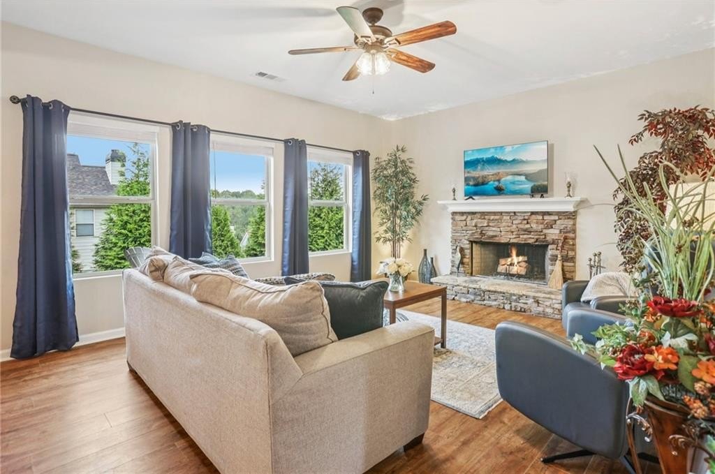 ***Fully renovated***New LVP floors***North facing for light and energy efficiency***Bright open concept***This beautifully updated home offers bright, open spaces and modern style throughout. Situated on a desirable corner lot with stone accents and a charming front porch, it immediately impresses with curb appeal. Inside, you'll find wide-plank, high-end LVP wood flooring throughout the entire main level—both stylish and durable. The bright and spacious living room is filled with natural light and features a stunning stone fireplace as its centerpiece. The updated kitchen is a showstopper, complete with soft-close white cabinetry, granite countertops, stainless steel appliances, a large center island with seating, and a brand-new tile backsplash. The adjacent dining room overlooks the private backyard and offers easy access for seamless indoor-outdoor living—perfect for al fresco dining or entertaining. A convenient half bath completes the main level. Upstairs, retreat to the oversized primary suite, featuring a beautifully updated en-suite bath with granite counters and dual sinks, a soaking tub, a separate glassed-in shower, and huge walk-in closet. Three additional spacious bedrooms provide room for everyone, including one with private en-suite access to the updated hall bath. Enjoy the everyday ease of an upstairs laundry room—no more hauling baskets up and down stairs! Step outside to a fully fenced backyard designed for entertaining and relaxation. The oversized 22x11 covered patio with an insulated roof offers plenty of space for grilling and outdoor gatherings, while the extended crushed stone area is perfect for a cozy fire pit. Mature privacy trees and a 6-foot privacy fence complete the space. Additional upgrades include fresh interior paint, new carpet on the stairs and entire upper level, new LVP flooring in all bathrooms, updated light fixtures on the main level, new rubber flooring in the garage, new landscaping, and a brand-new roof. You'll also find 2" blinds on every window and ceiling fans in every room for added comfort. All of this is located in a welcoming neighborhood just north of downtown Dawsonville, with easy access to shopping, dining, and all the conveniences you need. This move-in ready home truly has it all!