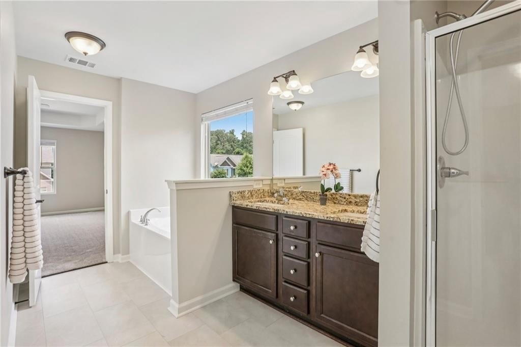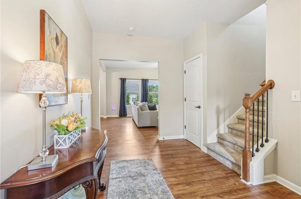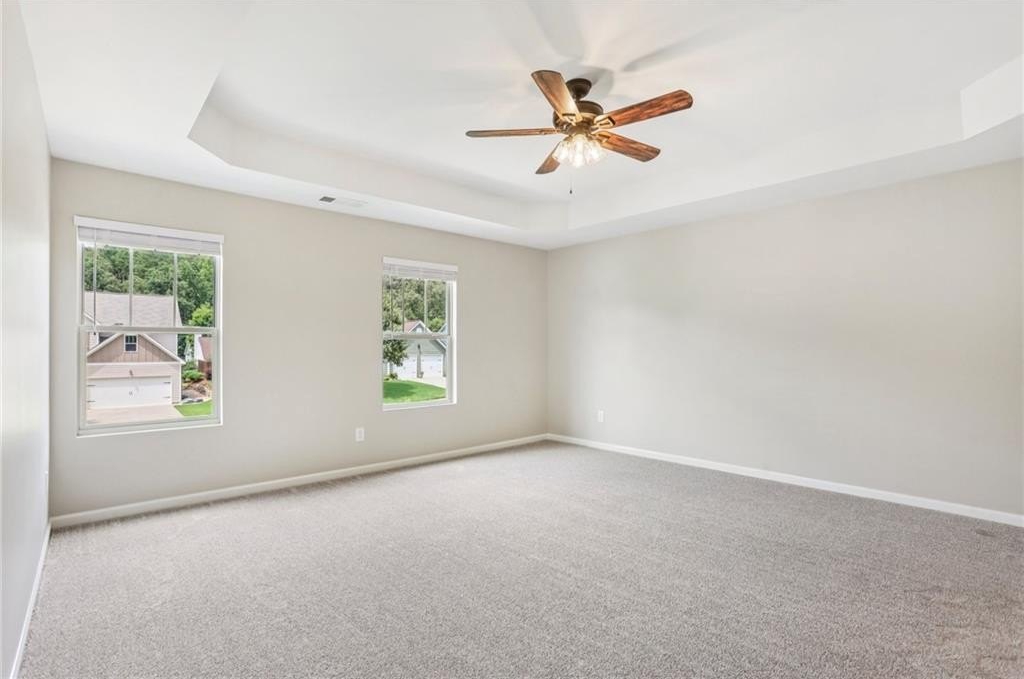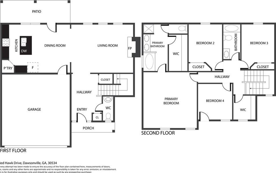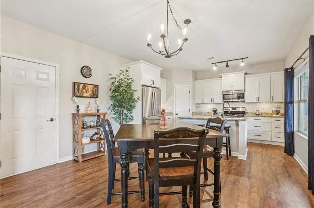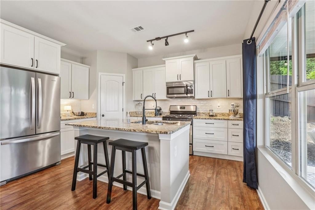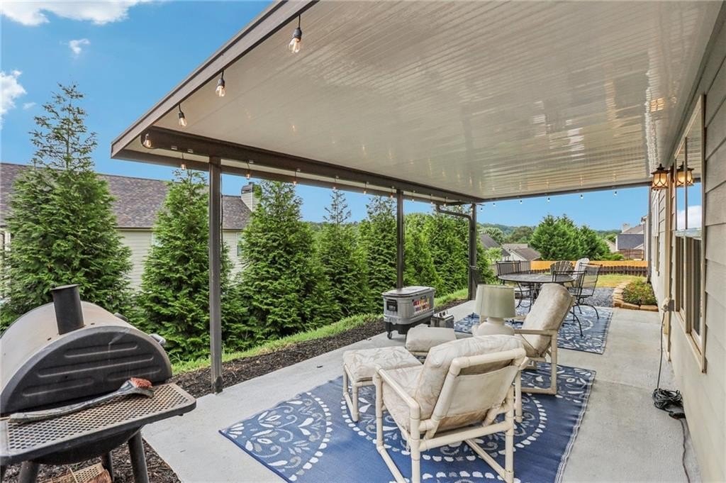 ***Fully renovated***New LVP floors***North facing for light and energy efficiency***Bright open concept***This beautifully updated home offers bright, open spaces and modern style throughout. Situated on a desirable corner lot with stone accents and a charming front porch, it immediately impresses with curb appeal. Inside, you'll find wide-plank, high-end LVP wood flooring throughout the entire main level—both stylish and durable. The bright and spacious living room is filled with natural light and features a stunning stone fireplace as its centerpiece. The updated kitchen is a showstopper, complete with soft-close white cabinetry, granite countertops, stainless steel appliances, a large center island with seating, and a brand-new tile backsplash. The adjacent dining room overlooks the private backyard and offers easy access for seamless indoor-outdoor living—perfect for al fresco dining or entertaining. A convenient half bath completes the main level. Upstairs, retreat to the oversized primary suite, featuring a beautifully updated en-suite bath with granite counters and dual sinks, a soaking tub, a separate glassed-in shower, and huge walk-in closet. Three additional spacious bedrooms provide room for everyone, including one with private en-suite access to the updated hall bath. Enjoy the everyday ease of an upstairs laundry room—no more hauling baskets up and down stairs! Step outside to a fully fenced backyard designed for entertaining and relaxation. The oversized 22x11 covered patio with an insulated roof offers plenty of space for grilling and outdoor gatherings, while the extended crushed stone area is perfect for a cozy fire pit. Mature privacy trees and a 6-foot privacy fence complete the space. Additional upgrades include fresh interior paint, new carpet on the stairs and entire upper level, new LVP flooring in all bathrooms, updated light fixtures on the main level, new rubber flooring in the garage, new landscaping, and a brand-new roof. You'll also find 2" blinds on every window and ceiling fans in every room for added comfort. All of this is located in a welcoming neighborhood just north of downtown Dawsonville, with easy access to shopping, dining, and all the conveniences you need. This move-in ready home truly has it all!