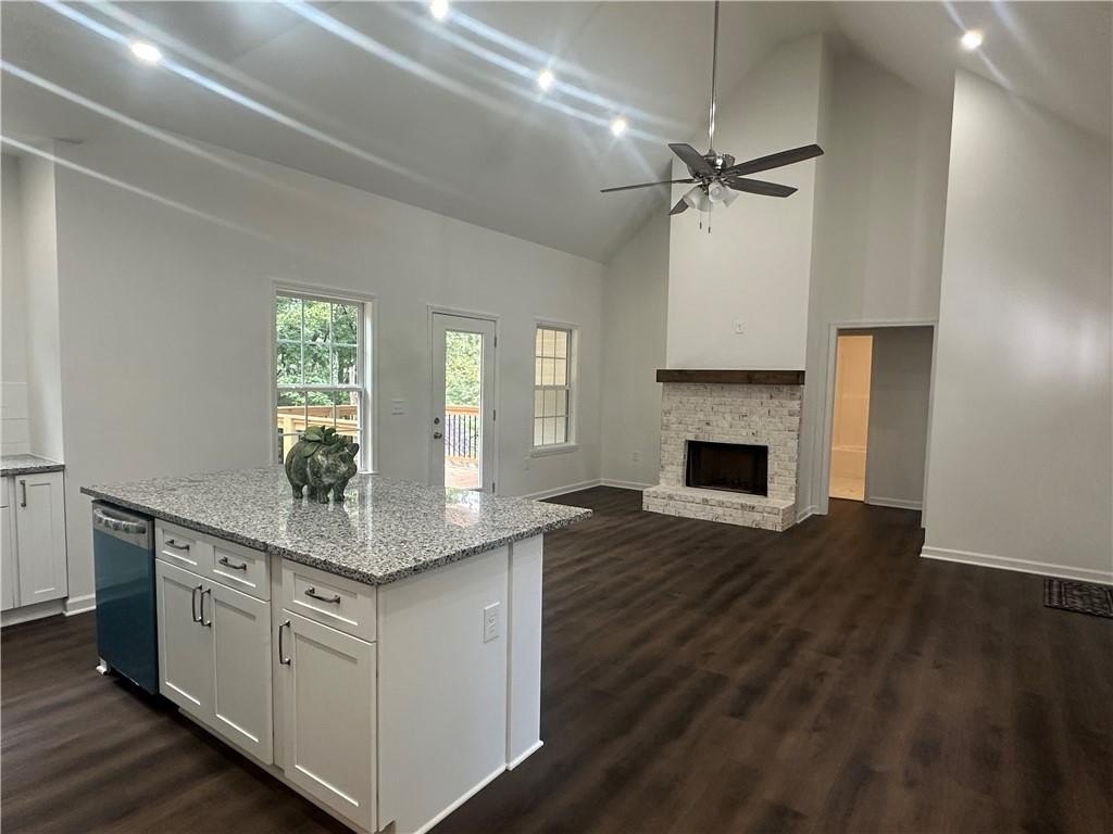 Stunning, bright open concept Craftsman Style Ranch, with a finished basement, located just minutes from Lake Lanier! Enjoy nearby LAKE AMENITIES WITHOUT LAKE PRICES! This new 4 bedroom, 3 bath home is conveniently located near Robinson Park. NO HOA! The rocking chair front porch invites you inside to a spacious soaring 16' ceiling in the large great room area, featuring a wood burning fireplace, and opening to a covered porch overlooking the serene backyard. The kitchen has tons of natural light with stainless steel appliances, and granite countertops. Master suite has lots of closet space with a gorgeous master bath. Featuring two additional bedrooms, and one bath on the main level. Enjoy a finished basement, with a bedroom and full bath, as well as flex space and lots of storage room. Separate Trane HVAC systems for the main level and basement level.
