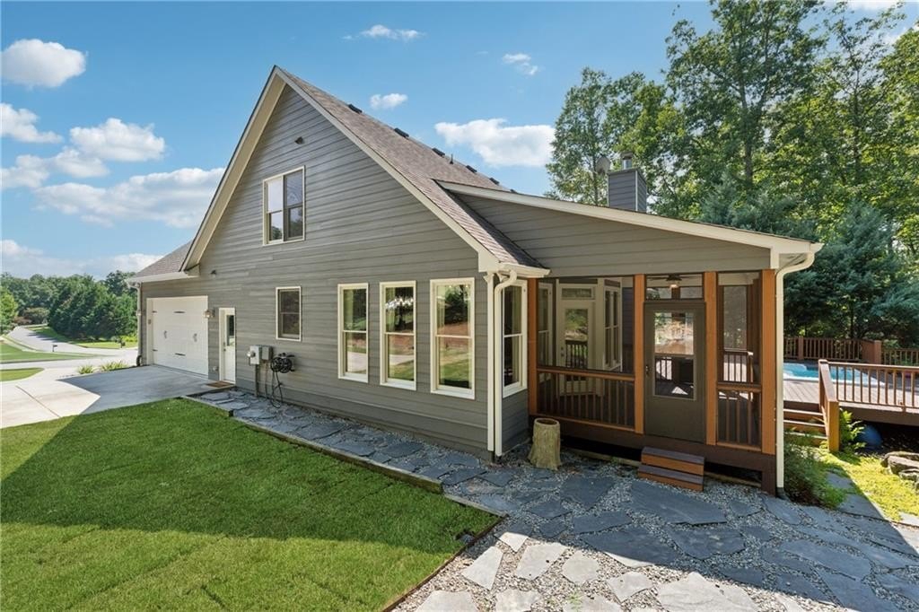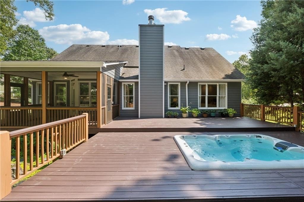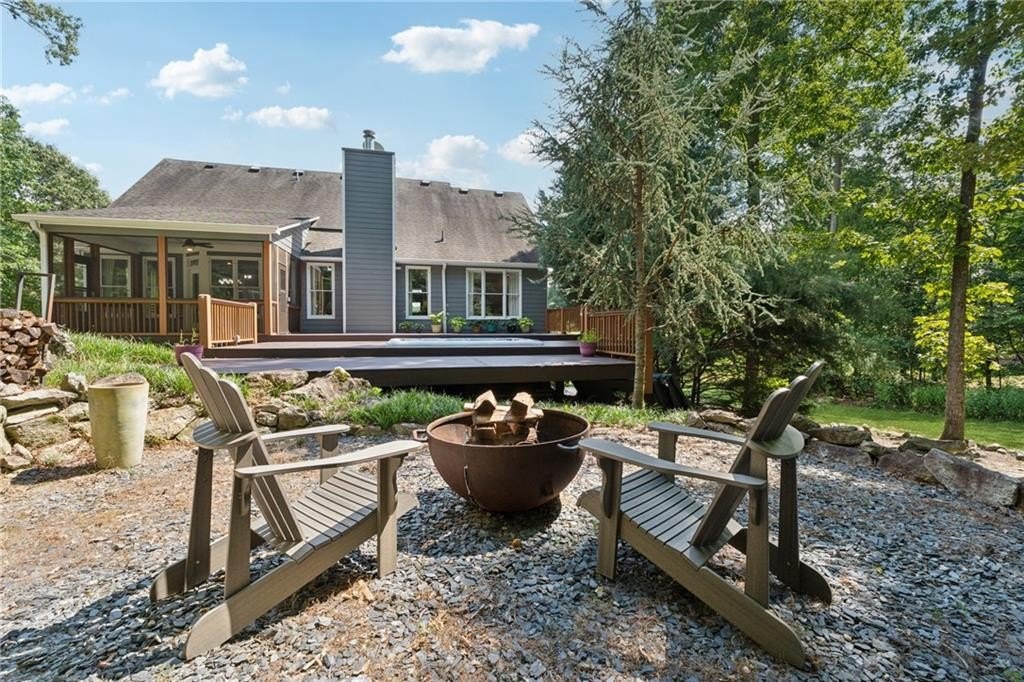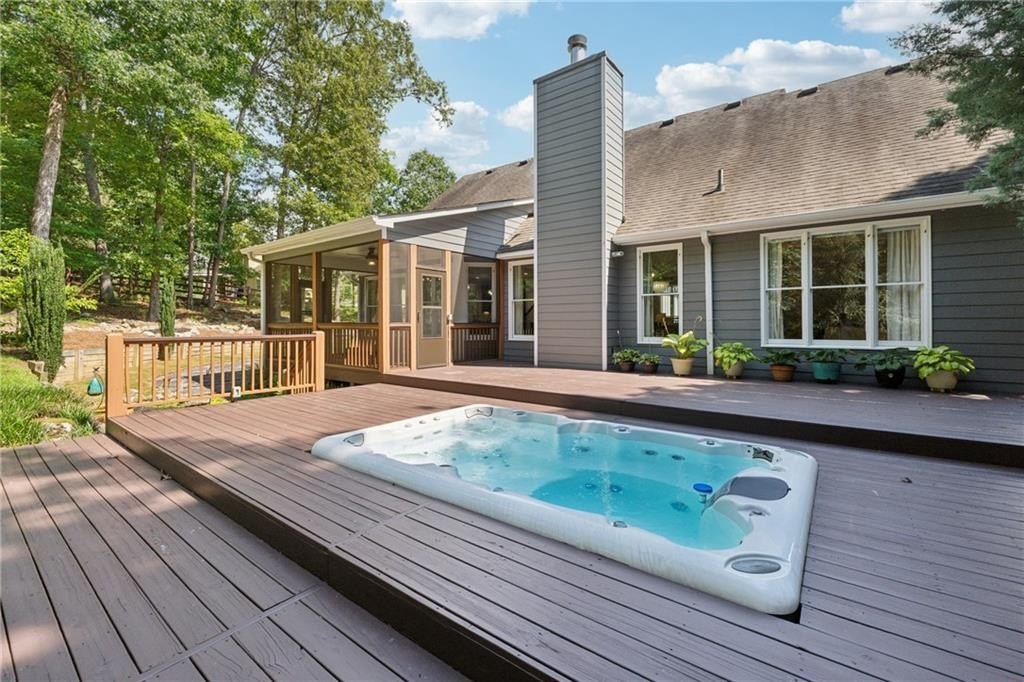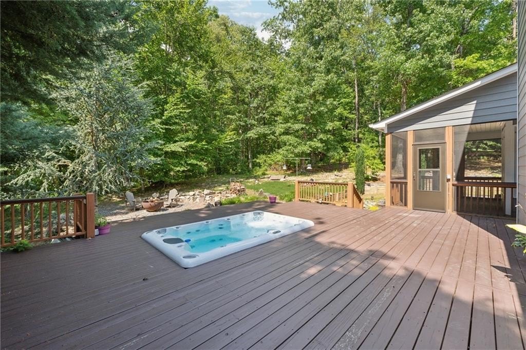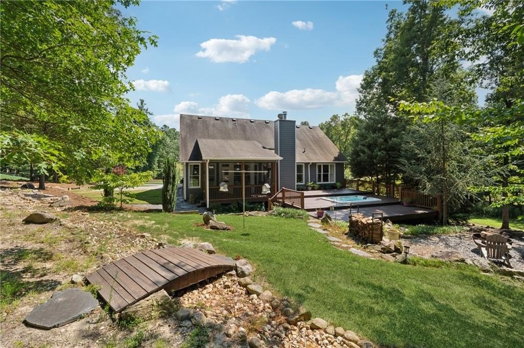 Prepare to be impressed by this immaculate, modern-style 3BR / 2.5BA home on 1.32 Acres, unlike anything else on the market! This beautifully updated home offers a perfect blend of luxury, functionality, and privacy, all just minutes from I-75. Step inside to find refinished hardwood floors throughout the main level, modern fixtures, and a desirable open-concept layout. The spacious kitchen is a showstopper, featuring marble countertops, stainless steel appliances, a large island with bar seating, and an adjacent sitting area with a wall of windows overlooking the lush, tree-filled backyard. The great room boasts vaulted ceilings, extensive crown molding, a stacked stone wood-burning fireplace, and multiple open-concept dining areas, ideal for both entertaining and daily living. The main-level owner's suite is a true retreat, complete with a custom walk-in closet, spa-like marble tile shower, soaking tub, double vanity with marble countertops, and tile flooring. Upstairs, you'll find 2 secondary bedrooms, full bath + a large bonus room, perfect for a home office, playroom, or media space. An unfinished basement with an over-sized garage door offers unlimited potential for expansion, storage, or a workshop. Outdoor living is exceptional with a covered front porch, screened-in back porch, HUGE multi-level deck, oversized hot tub/swim spa, and fire pit area, perfect for relaxing or entertaining year-round. Homes with this level of quality, style, and space don’t come around often, and they don’t last long. Schedule your showing today!