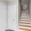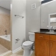 Upstairs, the top-level primary suite offers treetop views thanks to neighboring units being only two stories tall. Enjoy a spacious walk-in closet, a laundry room with built-in cabinetry, and an ensuite bath with a soaking tub and separate shower, your own private retreat.