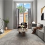 This contemporary 3-story townhome features an open and airy layout with soaring 20-foot ceilings and dramatic floor-to-ceiling Pella windows that flood the space with natural light. The second-floor main living area is perfect for entertaining, with a sleek kitchen featuring stainless steel appliances, granite countertops, and a custom pantry with ample storage.