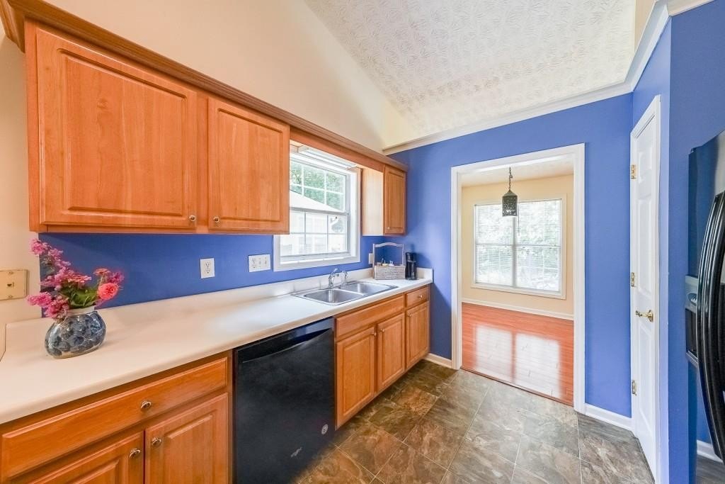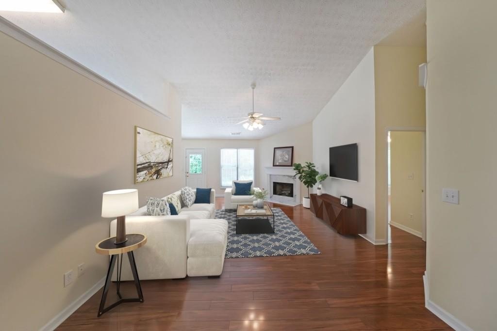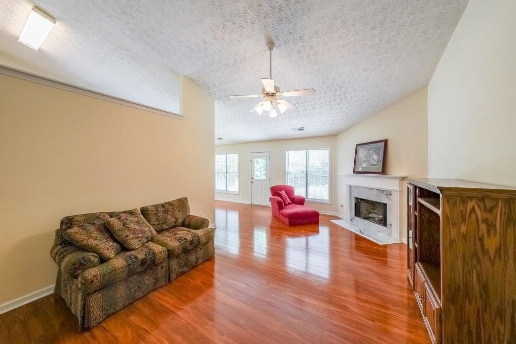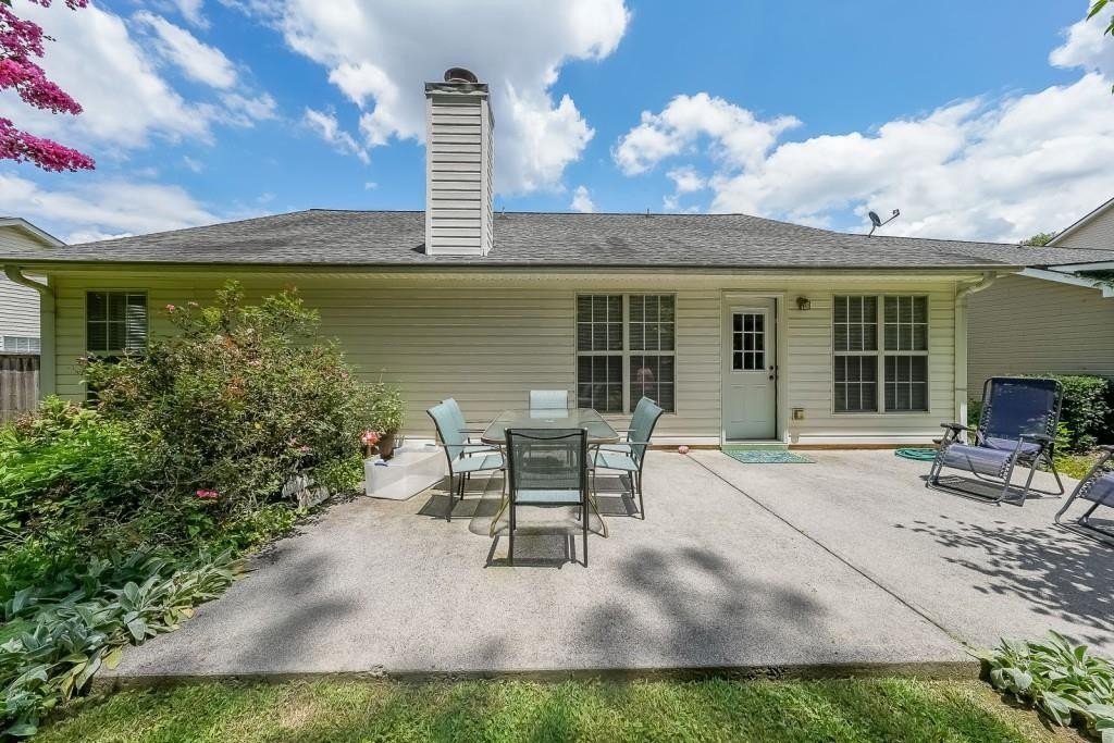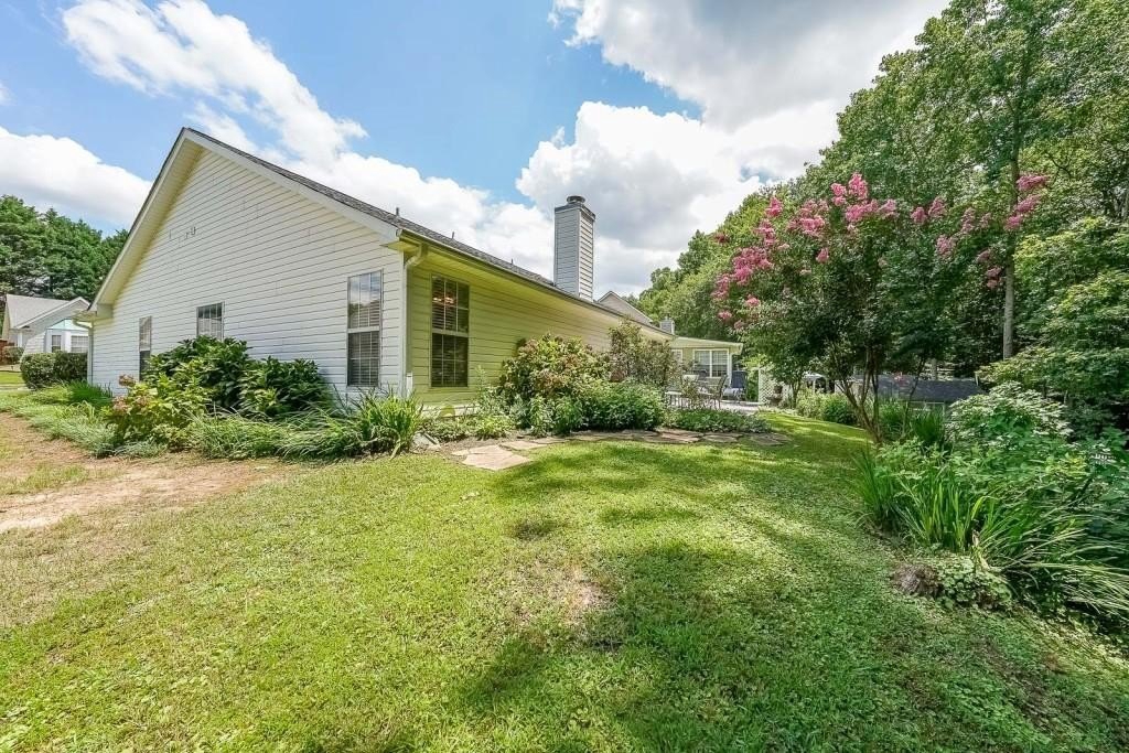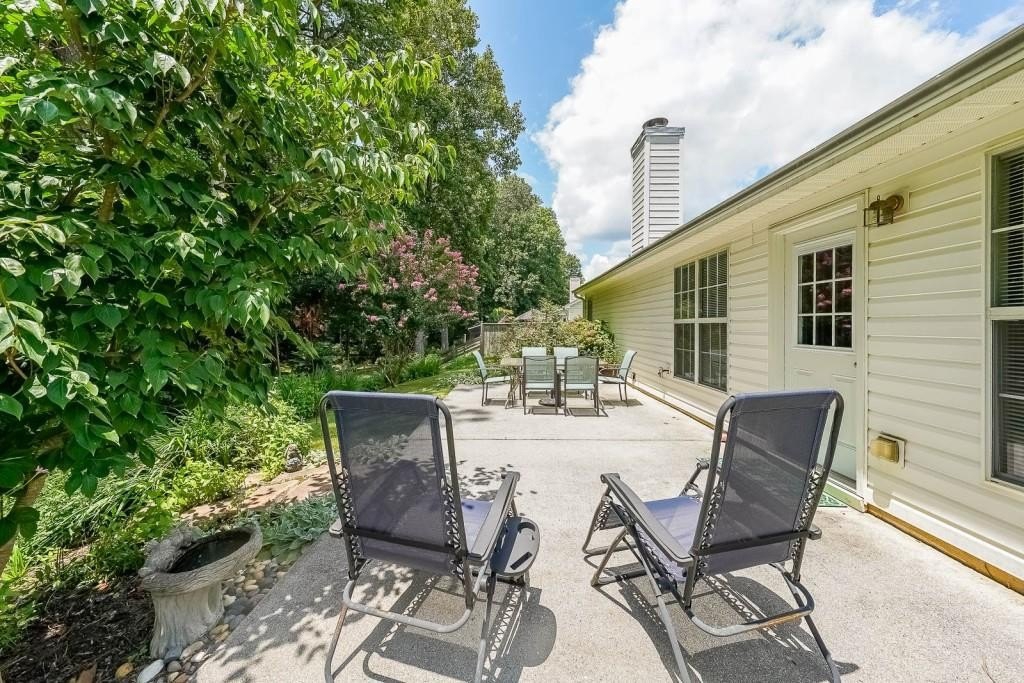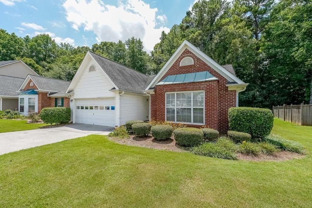 True One level living in sought-after Liberty Commons Swim/Tennis Community. Just minutes from downtown Kennesaw and downtown Acworth. Shopping is right around the corner, as well as a library, resturants, schools, Swift Cantrell Park, and more. This ranch style home boasts maintence free exterior of brick and vinyl, new luxury vinyl flooring throughout, numberous vaulted ceilings, and a split bedroom plan. There are three bedrooms and one of those rooms has a huge oversized window making it a great room for an additional den or office. The kitchen has a new gas stove and is flanked by a eat-in breakfast area and a more formal area serves as a dining room. The large family room has soaring ceilings, a fireplace and gleaming new flooring. The owner's suite is in the back of the home and features ensuite with garden tub and separate shower as well as double vanities and a walk-in closet. The main living area has loads of light with large windows overlooking a patio and with a view of a lovely wooded area. Additional features include: All plumbing pipes have been replaced. Fridge -8 yrs young, dishwasher has been replaced, new roof in 2017.