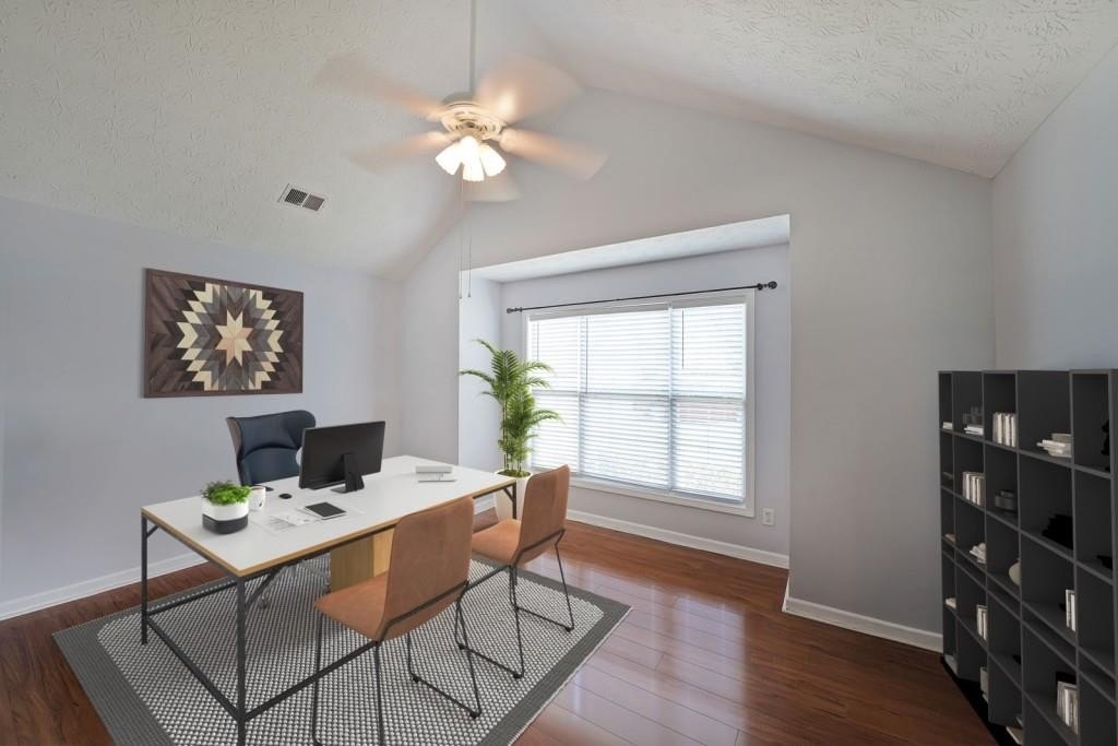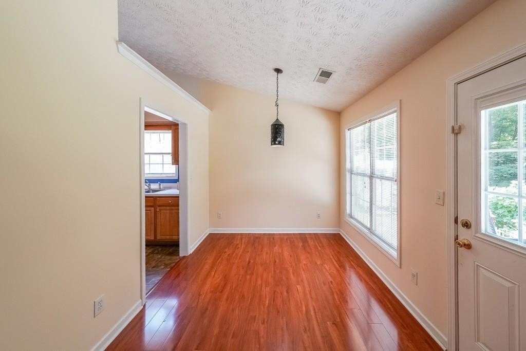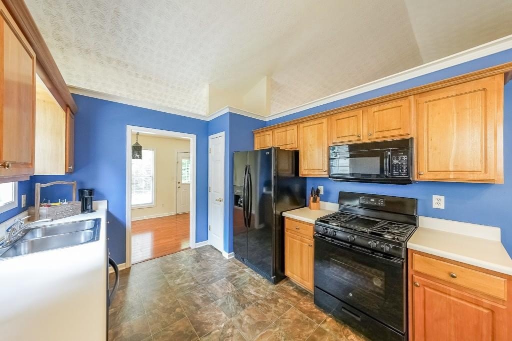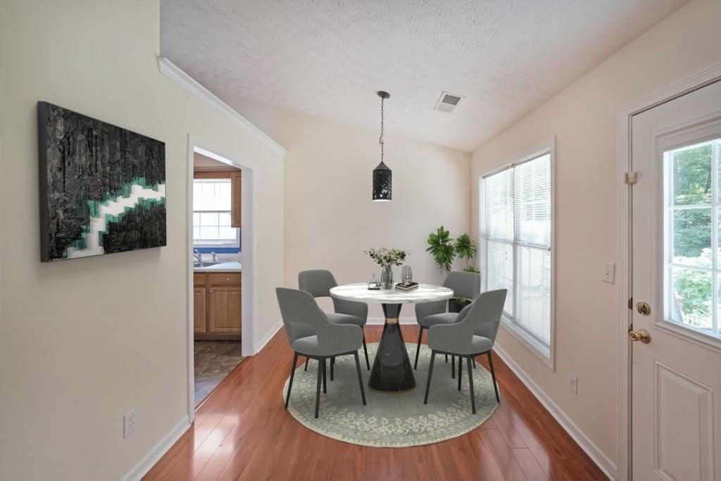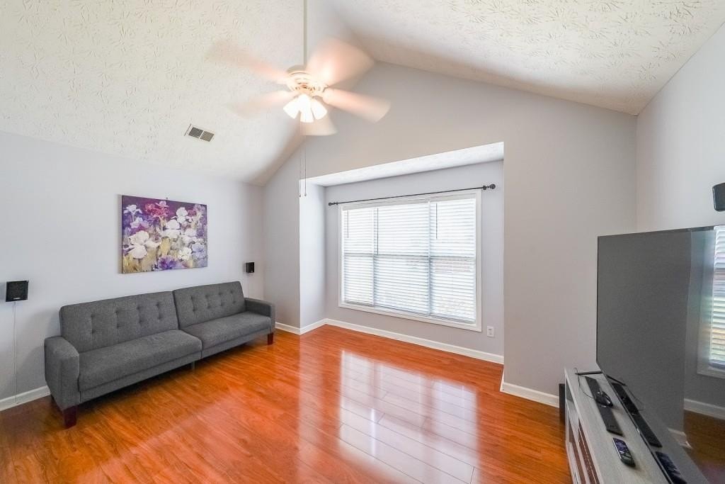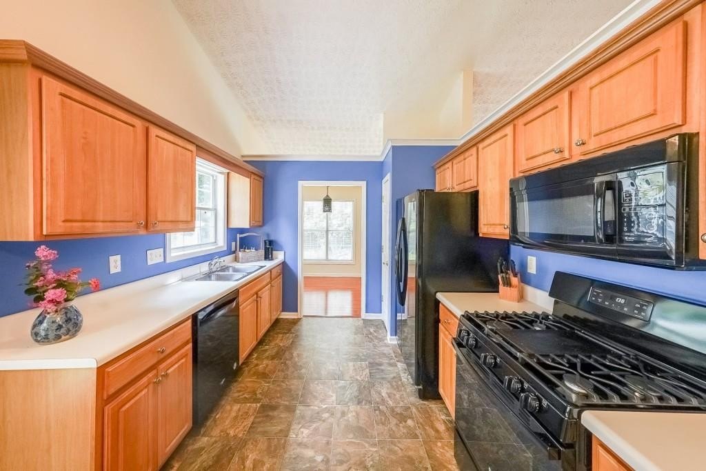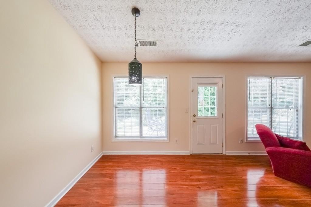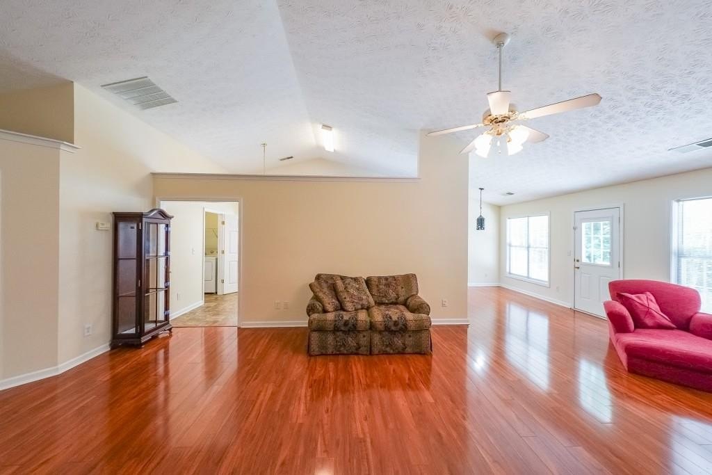 True One level living in sought-after Liberty Commons Swim/Tennis Community. Just minutes from downtown Kennesaw and downtown Acworth. Shopping is right around the corner, as well as a library, resturants, schools, Swift Cantrell Park, and more. This ranch style home boasts maintence free exterior of brick and vinyl, new luxury vinyl flooring throughout, numberous vaulted ceilings, and a split bedroom plan. There are three bedrooms and one of those rooms has a huge oversized window making it a great room for an additional den or office. The kitchen has a new gas stove and is flanked by a eat-in breakfast area and a more formal area serves as a dining room. The large family room has soaring ceilings, a fireplace and gleaming new flooring. The owner's suite is in the back of the home and features ensuite with garden tub and separate shower as well as double vanities and a walk-in closet. The main living area has loads of light with large windows overlooking a patio and with a view of a lovely wooded area. Additional features include: All plumbing pipes have been replaced. Fridge -8 yrs young, dishwasher has been replaced, new roof in 2017.