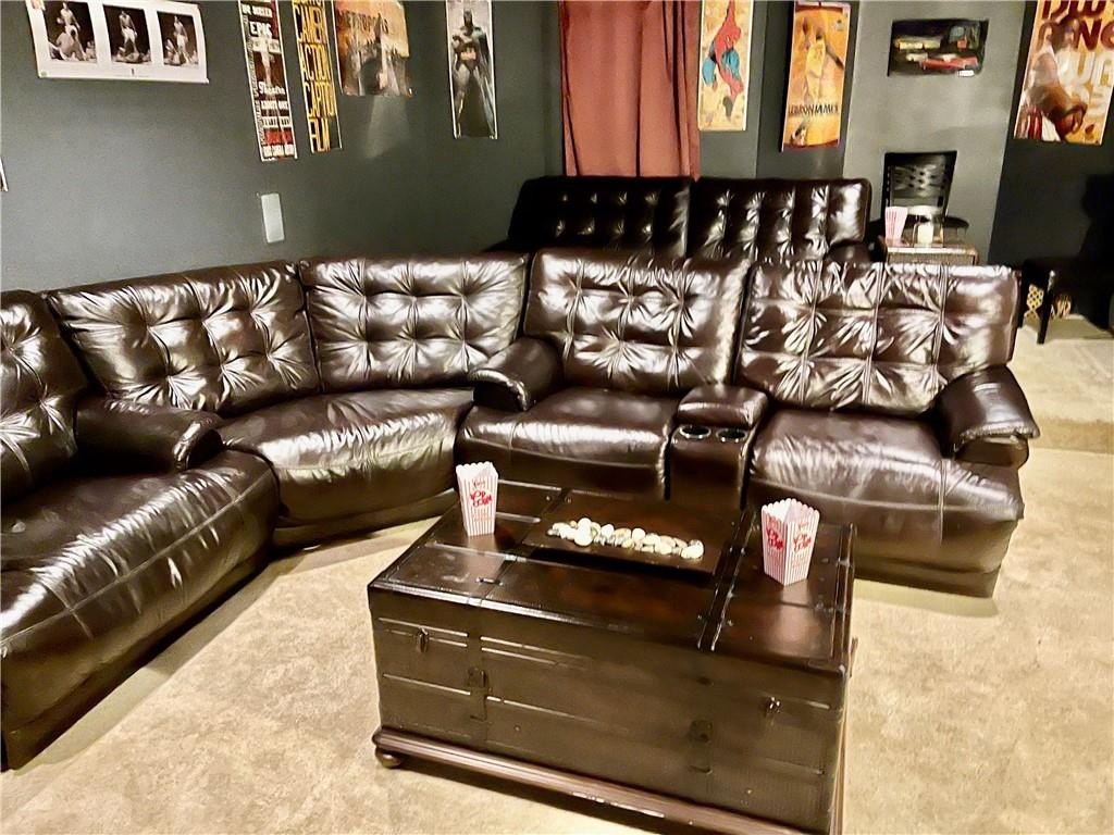 The fully finished basement includes a large guest bedroom and bathroom, a spacious flex room, and an impressive custom-designed theater room, perfect for movie nights and entertaining.