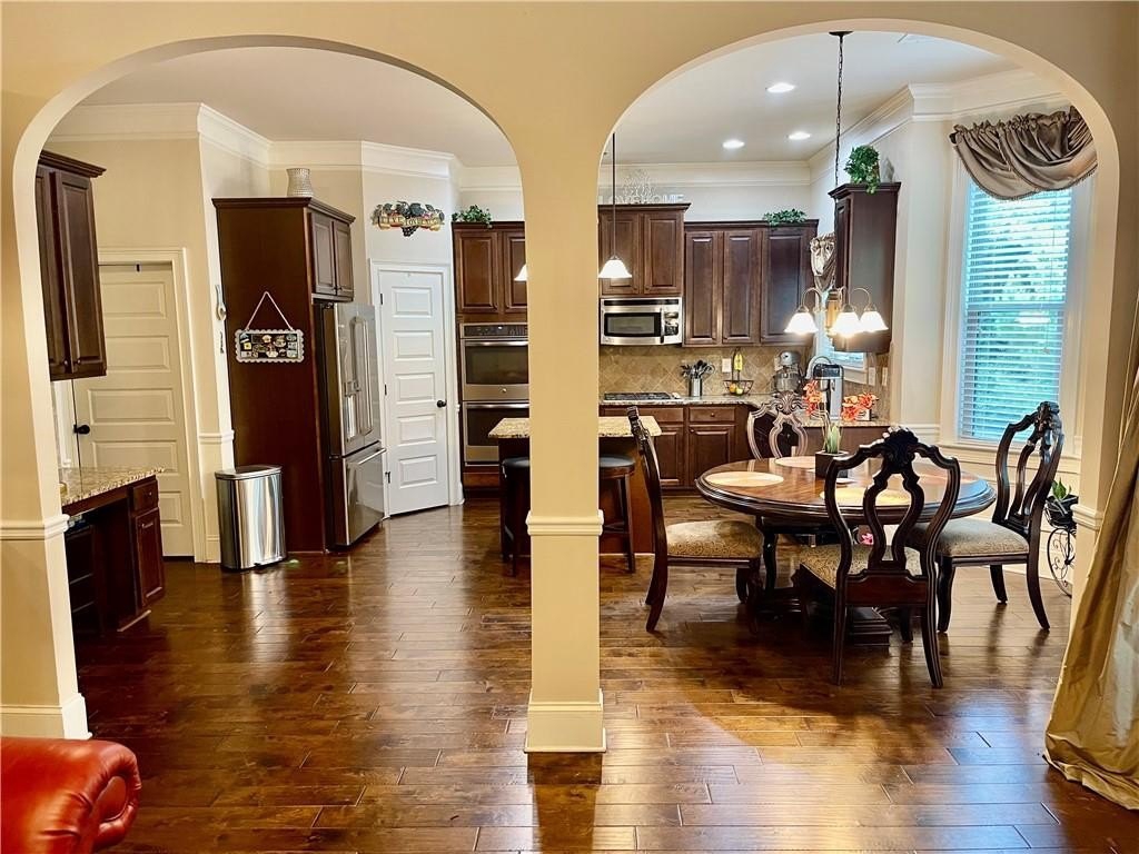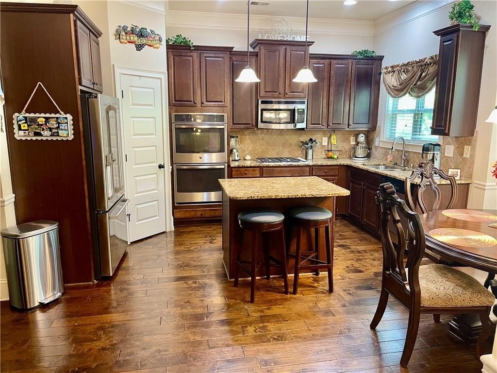 Enjoy cooking and entertaining in the chef’s kitchen, complete with granite countertops, gas cooktop, double wall ovens with convection baking, tile backsplash, center island, and an open floor plan that flows into the breakfast area and great room—ideal for hosting family and friends.