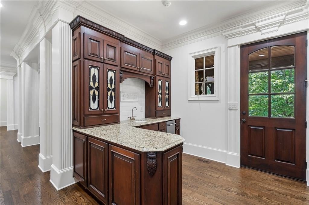 Experience the perfect blend of timeless sophistication and relaxed luxury in this extraordinary residence, nestled within the prestigious gated golf community of The River Club. Ideally located just a short walk from both the clubhouse and the lakeside family center, this home offers effortless access to world-class amenities that define this exclusive enclave. This premium homesite is one-of-a-kind—offering serene privacy and picturesque views from every angle. From its classic architecture to the impeccable finishes found throughout all three levels, every detail of this home exudes enduring quality and thoughtful design. Whether you're hosting elegant dinner parties, casual gatherings with friends, or enjoying quiet moments with family, this home provides the ideal backdrop for every occasion. Tucked away behind lush landscaping, the front porch is where evenings are spent watching the sunset and greeting neighbors walking by in the distance. The warm and welcoming foyer leads to richly appointed living spaces. A handsome study with fireplace, exquisite millwork, and sun-filled window creates the perfect setting for a home office. The formal dining room flows to a gracious great room featuring a limestone fireplace, coffered ceilings, and stunning views of the beautifully landscaped backyard and tranquil waterfall. Unique to this home is the charming “friends and family entrance,” which opens into a well-appointed service area—ideal for welcoming guests with refreshments upon arrival or serving cocktails adjacent to the dining room when hosting formal parties. The gourmet kitchen, centered around a spacious island, flows effortlessly into the vaulted keeping room with an oversized, striking stone fireplace. Beyond the keeping and breakfast rooms, is one of the areas you will enjoy the most, especially in the fall! The cozy screened porch with beautiful wood burning fireplace opens to the grilling deck and overlooks the waterfall. This lot also offers the coveted “best of both worlds” in that you walk out the main level to the screened porch, grilling station, and level backyard, with the lower level just outside the terrace level being pool ready. On the terrace level, step into the ultimate haven for hosting and relaxation—where exquisite stonework and rich millwork set an unforgettable tone. The showstopping centerpiece is a stunning, stone-wrapped English-style pub, complete with a private gentleman’s room and wine cellar with hidden enclave for storing valuables. Whether you're enjoying fireside conversations, movie nights in your private home theater, or friendly competition in the billiard room, this luxurious terrace level delivers unforgettable moments and endless entertainment. A rare and highly sought-after feature in this home is the inclusion of two luxurious primary suites—one conveniently located on the main level and another upstairs. The home is also elevator-ready for added ease and accessibility. The home offers 7 spacious bedrooms, including 5 ensuite bedrooms, a large bonus room with built-in study/office area, and 2 additional bedrooms on the terrace level. Lovingly maintained by its original owners, this timeless home has recently been refreshed with new paint, new carpet, and refinished hardwood floors, making it truly move-in ready. Set along the iconic Chattahoochee River, The River Club is a certified Audubon Sanctuary and one of the Southeast’s premier private communities. Residents enjoy a wealth of amenities including a Greg Norman-designed championship golf course, a lakeside family sports center featuring both clay and hard-surface tennis courts, a junior Olympic lap pool with splash pad and slide, and a state-of-the-art fitness center. Dining options abound, from casual fare to fine dining. With 24/7 gated security, top-rated schools, and close proximity to upscale shopping, dining, and cultural attractions, The River Club offers a lifestyle of unmatched luxury and convenience.
