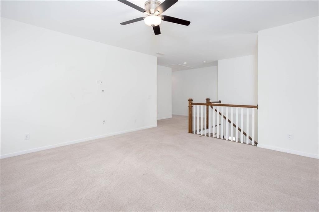 Up the solid wood, switchback staircase, you’ll find the ample sized loft for secondary seating and entertaining, functioning as a game area, home school space, tv room, or arts and crafts / home-based business area.