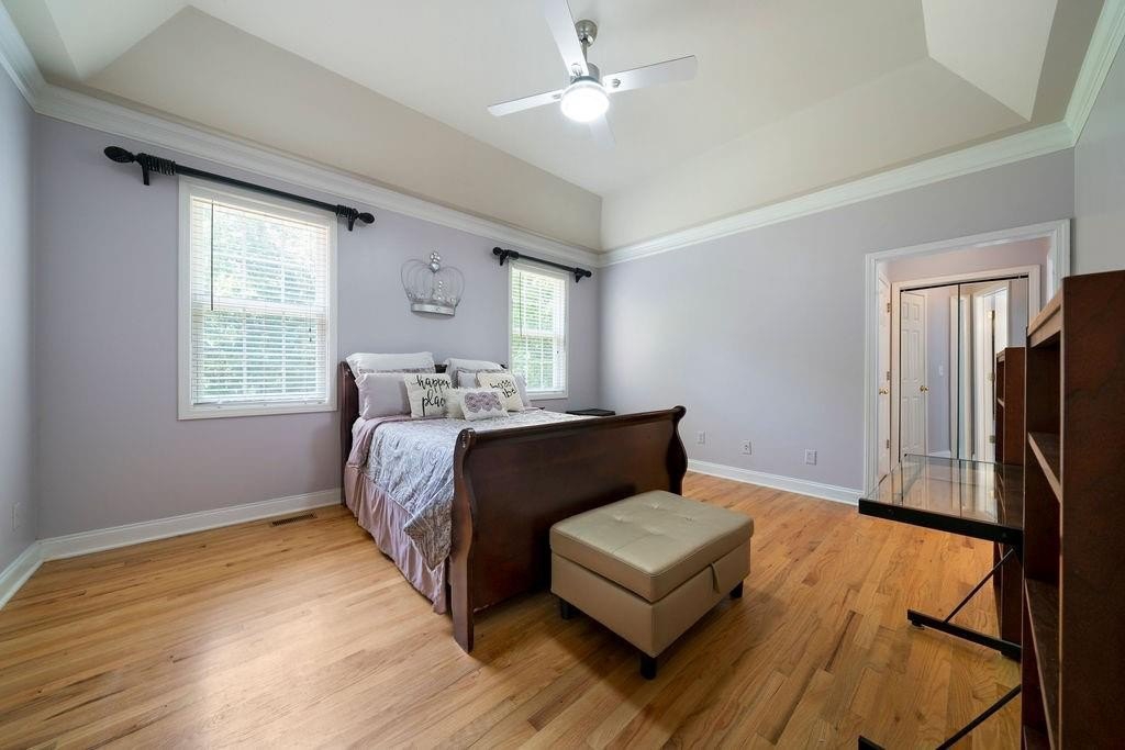 Welcome to this beautifully maintained estate home, ideally nestled in a vibrant swim and tennis community with low HOA dues of just $600/year. Overflowing with charm, space, and natural light, this open-concept gem offers the perfect blend of elegance, comfort, and functionality—truly a home like no other! Featuring 4 very spacious bedrooms and 3 full bathrooms. The luxurious Master Suite is conveniently located on the main level, complete with a custom walk-in closet system, a spa-like ensuite bathroom featuring a jetted soaking tub, dual-head walk-in shower with built-in bench, and dual vanities.