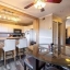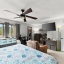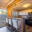 The kitchen offers bar seating and a clear view of the fenced-in backyard—perfect for grilling out with friends or letting the kids play.