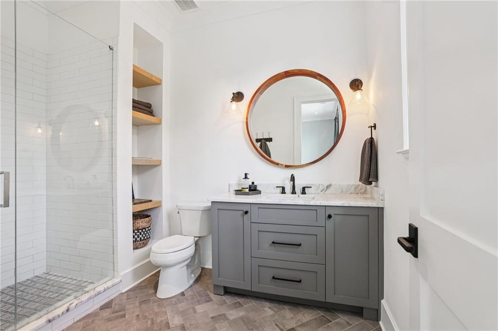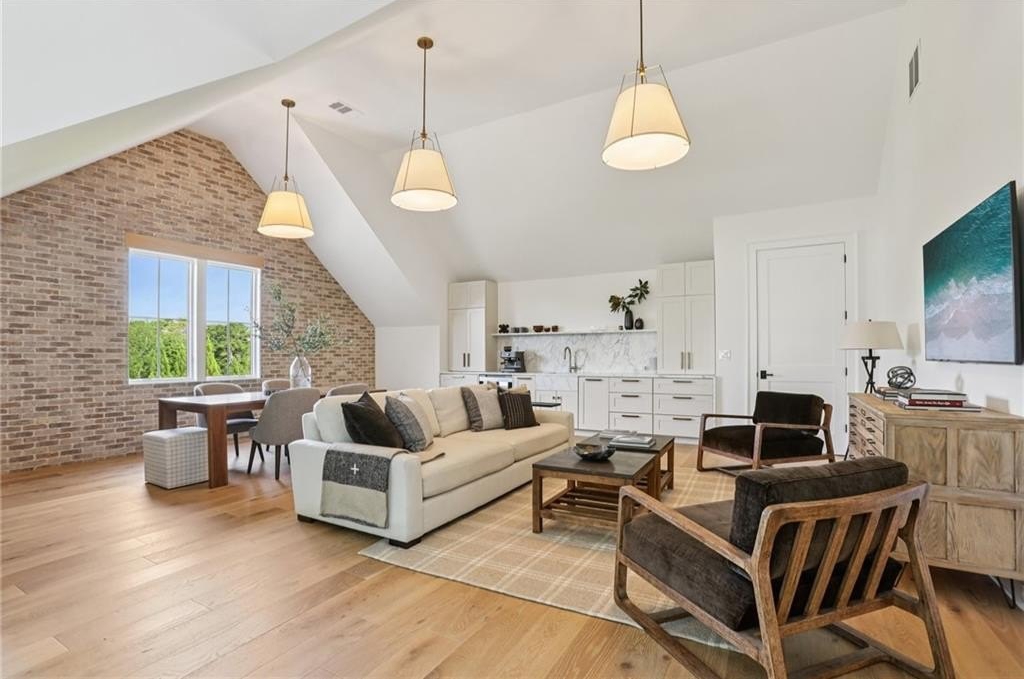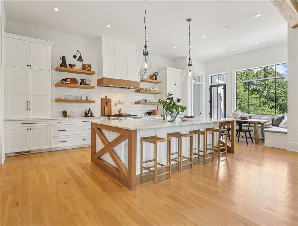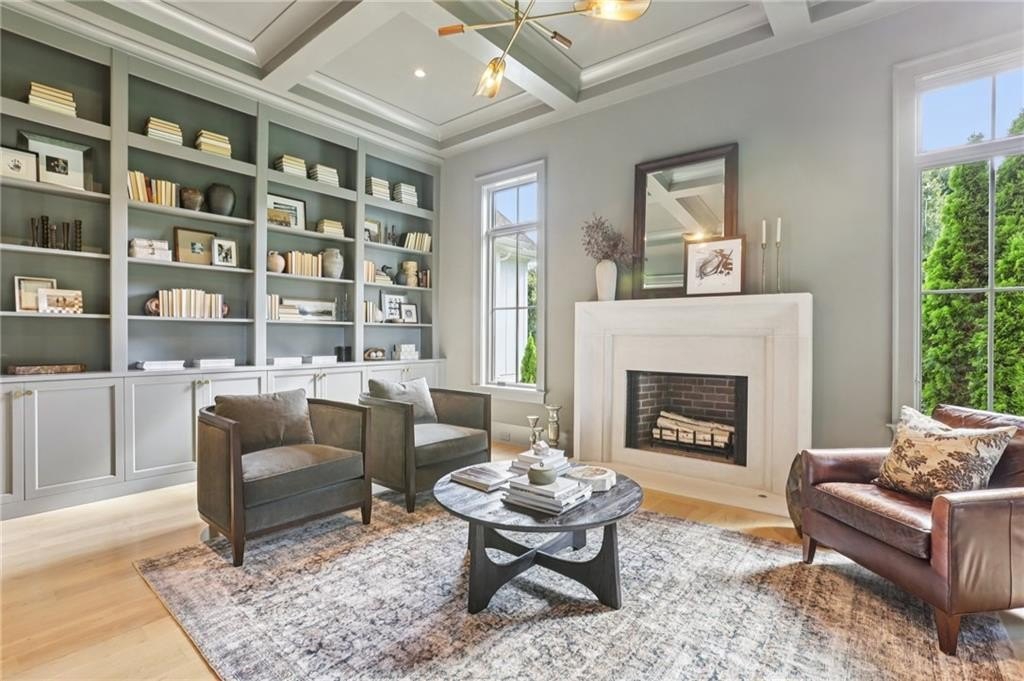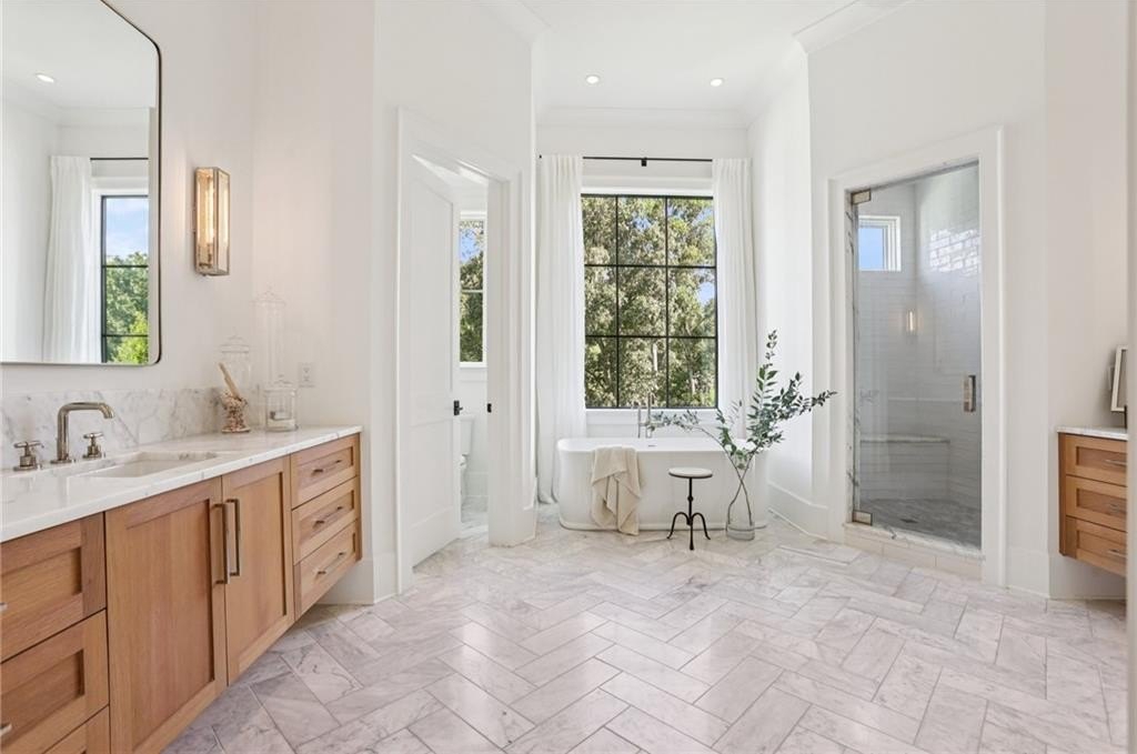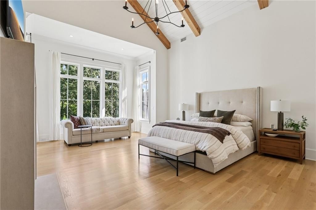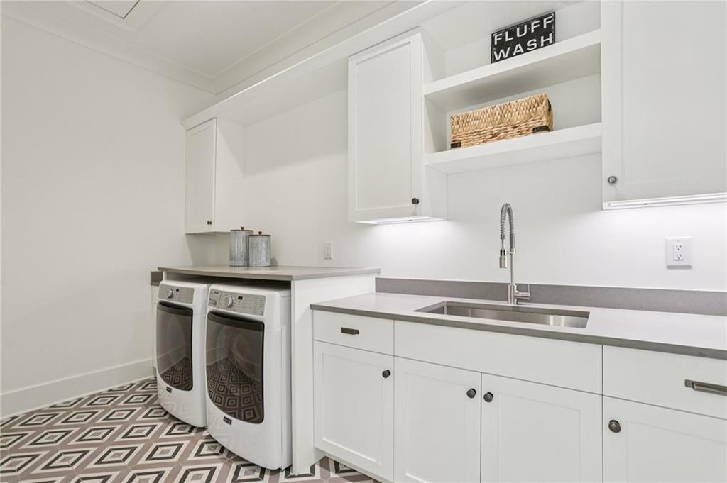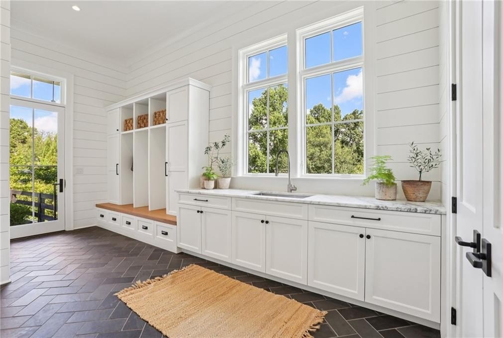 The main level includes a dramatic vaulted primary suite overlooking the pool, with private deck access and a spa-inspired bath complete with marble herringbone floors, a freestanding soaking tub, floating white oak vanities, and an oversized shower. An open-concept chef’s kitchen, perfect for entertaining features custom-built cabinetry, marble countertops, and 200-year-old reclaimed white oak beams. Enjoy the great room anchored by a custom limestone fireplace, one of three fireplaces (two gas, one wood burning) throughout the home. Additional features of this home include: A 6-car garage with 14-foot ceilings, epoxy floors, and ample space for car lifts; An elevator-ready shaft is centrally located for convenience; A large mudroom with a secondary staircase leading to a bonus suite with a kitchenette, beverage fridge, sink, and full bath—ideal for guests or an au pair; A fully finished daylight basement with a full kitchen, a built-in 4-bed bunk room, and direct walkout access to the pool; A 20’ x 40’ saltwater pool with an integrated spa, tanning ledge, and adjacent pool bath and natural blue stone patio. Enjoy the charming streetscape of Hayfield, with gas lanterns, granite curbing, copper mailboxes, and a stone's throw access to The Union Restaurant, Posie Fields, and Collab Kids Enrichment Center. This is more than a home—it’s a statement of refined living in one of North Atlanta’s most exclusive enclaves.