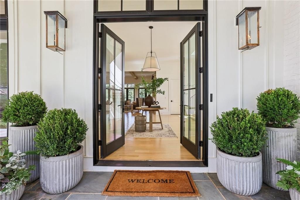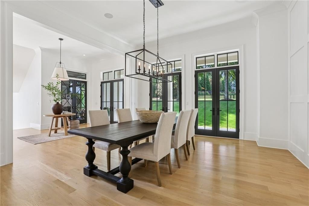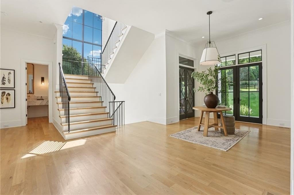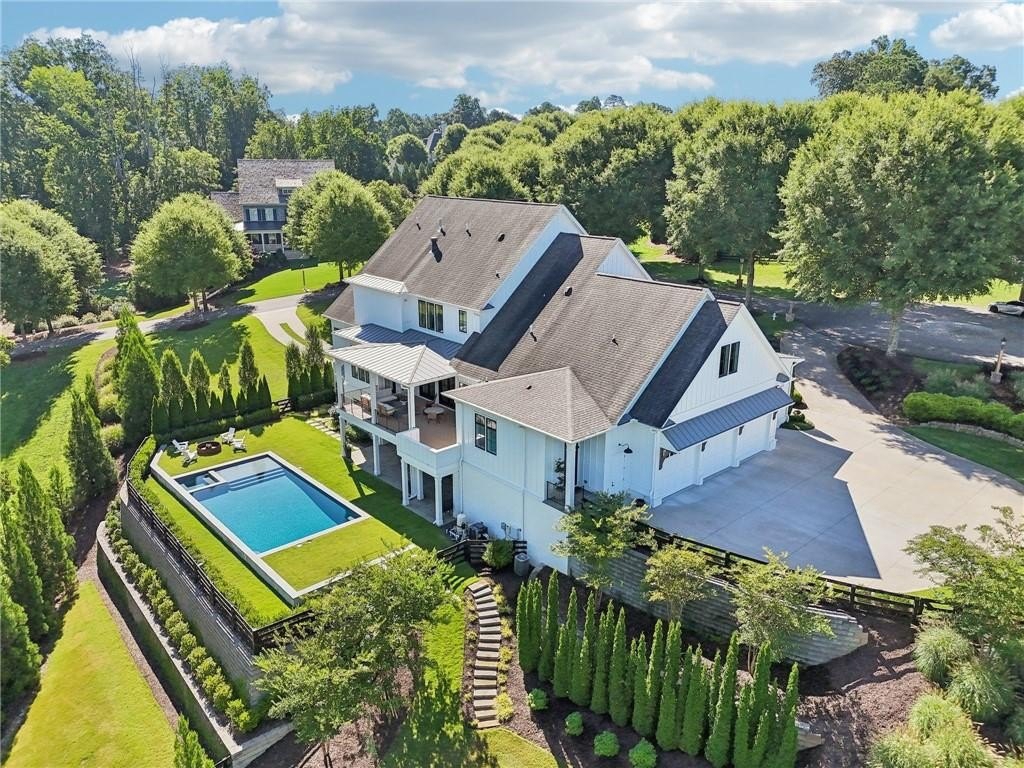 Welcome to this custom-built masterpiece located in the prestigious gated community, The Hayfield. This exceptional residence offers timeless elegance, modern luxury, and practical function, all situated on a corner lot in one of the area’s most sought-after neighborhoods. You'll be just minutes from Crabapple, Alpharetta (4 miles), Avalon (4.3 miles), and the Verizon Amphitheater. This home features 7 bedrooms, 6 full baths, and 3 half baths, featuring 12-foot ceilings, white oak hardwood floors, and metal-clad Pella windows and doors that fill the home with natural light and offer stunning treehouse views.