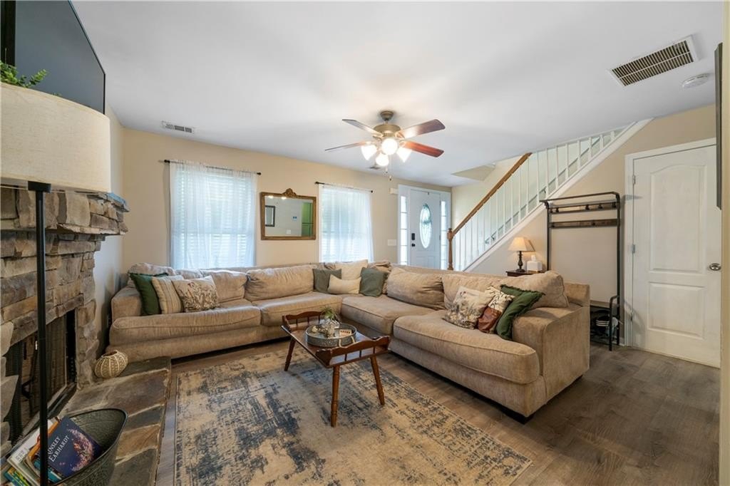 Located just minutes from Allatoona Lake, I-75, and shopping, this beautiful two-story home offers the perfect blend of comfort and convenience. Inside, you’ll find a charming breakfast kitchen and a cozy family room featuring a stone fireplace. The spacious master bedroom boasts a large walk-in closet and a bath complete with a double vanity, separate tub, and shower—perfect for unwinding in style. Generously sized secondary bedrooms provide plenty of space for family or guests. Major upgrades include a $15,000 30 yr roof (only 2 years old), a brand-new HVAC system with a lifetime warranty on parts and labor, and a smart water heater for added efficiency. Step outside to a new deck overlooking a huge, level backyard—ideal for entertaining or simply enjoying the outdoors