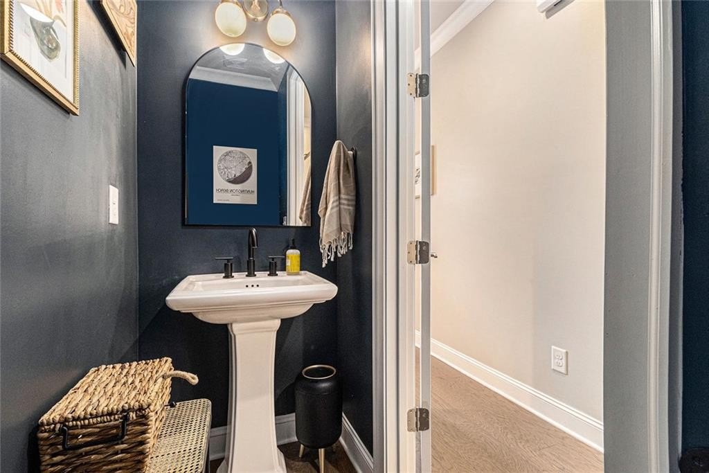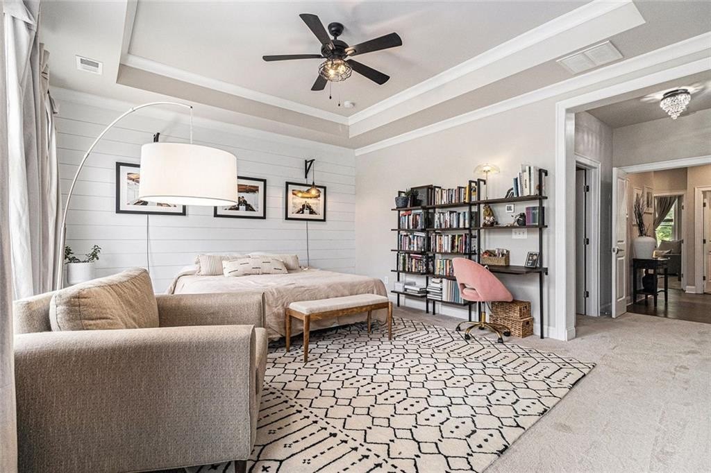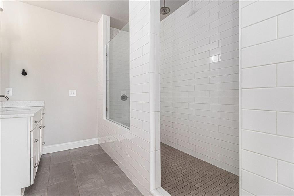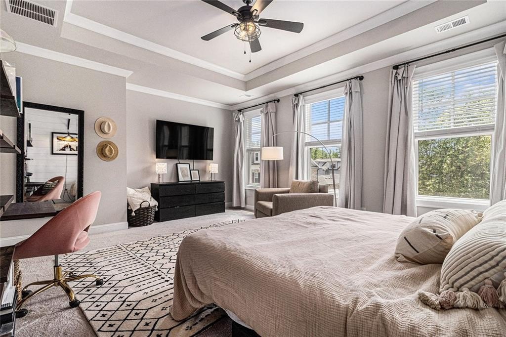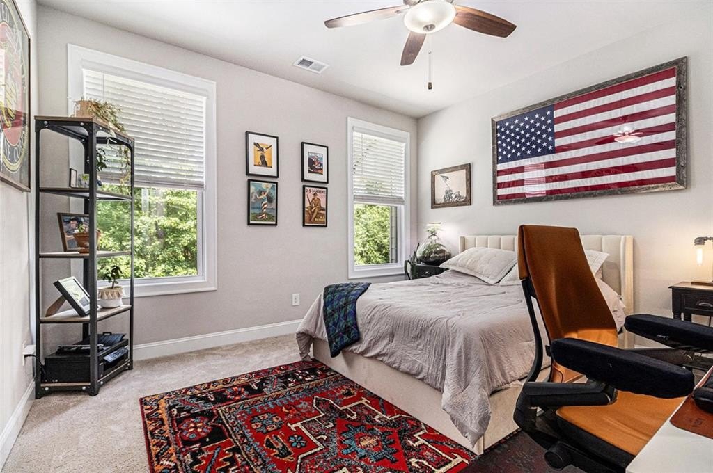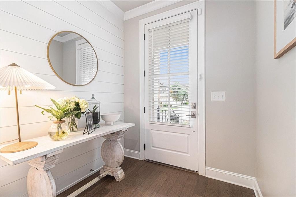 Stunning Farmhouse-Inspired Townhome! You'll approach through the gated entry to this immaculate, architecturally stunning community. Home features wide plank hardwood floors balanced with silvery-white living spaces including chef's kitchen w/ sleek quartz countertops, stainless appliances, subway tile, gas cooking w stainless vent, massive breakfast bar, island with sink, pendant lighting, large open dining, family room w/ batton board millwork and wall of windows overlooking the ultra private fenced backyard. Entertaining expands to covered patio, custom fencing lined by a canopy of trees. Owners suite w trey ceiling, double french doors to tile bath, massive spa shower, separate quartz vanities, two secondary bedrooms and bath with double sinks, carriage style 2 car garage with additional storage added by Seller. Imagine owning this stunning home in the best spot in this quiet neighborhood with walking path and pond, minutes to Roswell Area Park, Downtown Roswell, Crabapple, Alpharetta and Avalon. All this and more with Top Rated Schools.