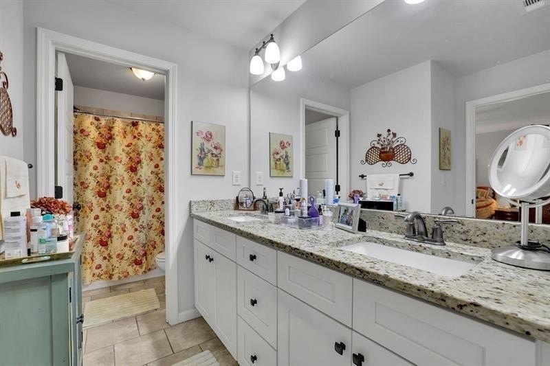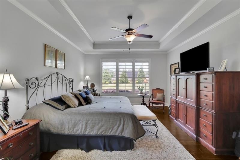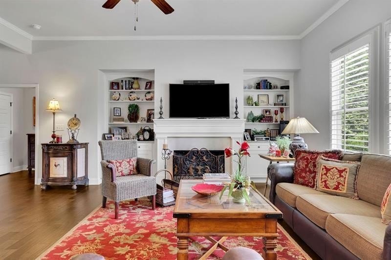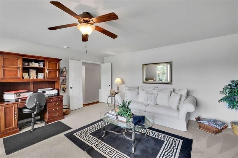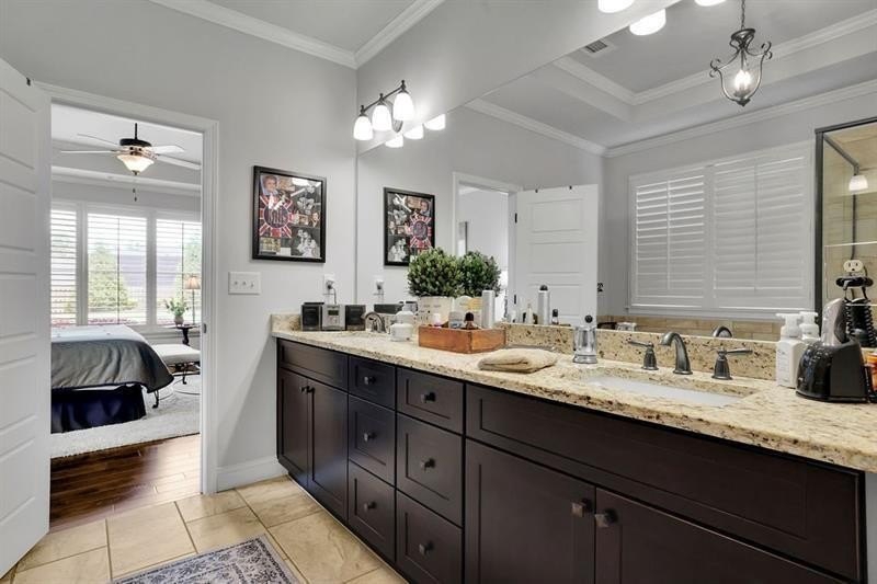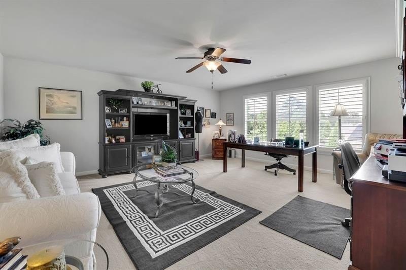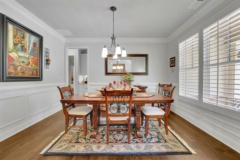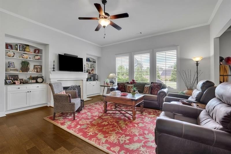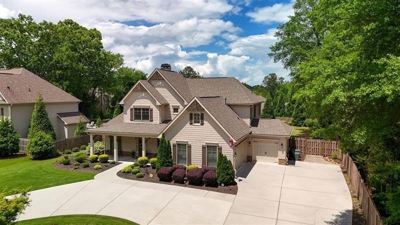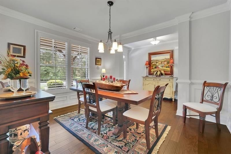 Just off the breakfast room, French doors lead you to the show-stopping four-seasons room, featuring its own outdoor gas fireplace. It’s the ideal spot to sip coffee or host friends while overlooking one of the most spacious and level backyards in all of East Cobb.