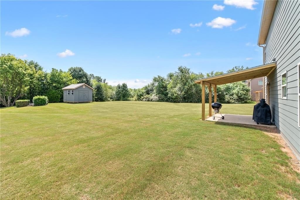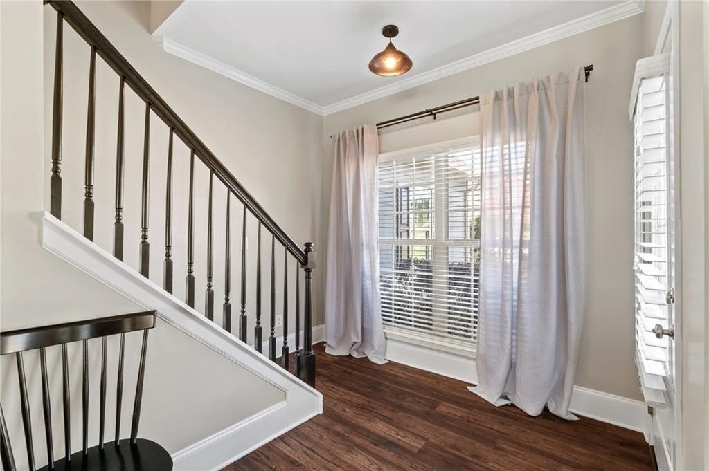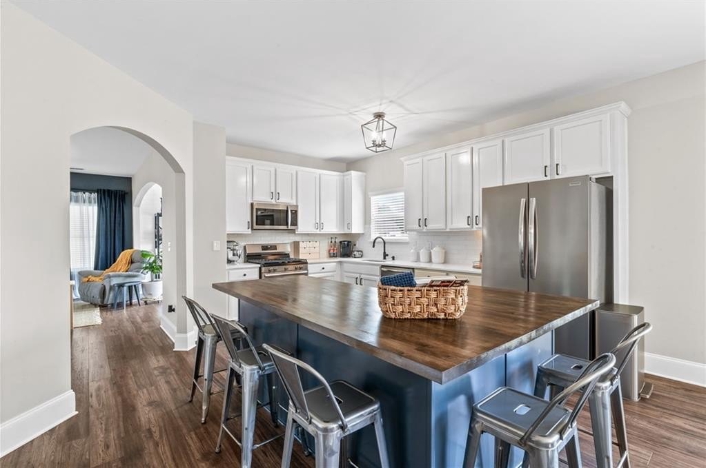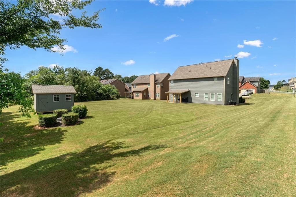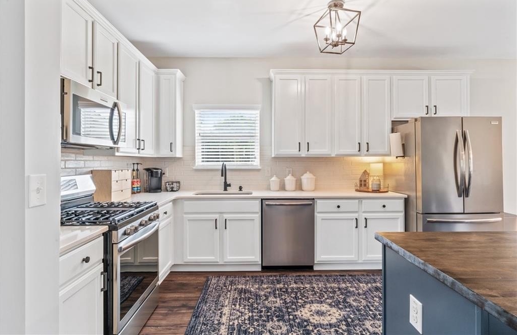 Sitting on one of the largest and most incredible corner lots in the popular Hamilton Crossing neighborhood, this beautifully - and completely updated - 4 bedroom, 3 full bathroom home offers the perfect mix of modern comfort and timeless charm. This increasingly uncommon floor plan features a full bedroom and full bathroom on the main level - ideal for guests, multi-generational living, or a private home office! There is also plenty of flex space with a large eat-in kitchen that is perfect for a more casual dining room, or used as a roomy keeping room! Then there is another large flex space off the living room that is perfect for a kid's play room, office space, sitting room, or a more formal dining space. Aside from having a ton of natural light, the home has been lovingly updated from top to bottom, boasting new flooring, fresh light fixtures, updated bathrooms, 5 year old (30 year architectural) roof, and a stunningly reimagined heart of the home! The kitchen features solid quartz countertops, expanded kitchen island with tons of room for barstools, tall cabinetry, less than a year old stainless steel appliances, and a huge walk-in pantry - absolutely perfect for busy daily living or full on entertaining! Upstairs there is an oversized owners suite, giant walk-in closet, immaculate owners bath, two additional bedrooms, and another completely overhauled full bathroom! Back outside, you'll find a newly covered patio, perfect for enjoying your morning coffee or hosting gatherings, and a large storage shed that is included in the sale! And being one of the largest lots in Hamilton Crossing and backing up to woods, this property allows ample outdoor space for recreation, gardening, private pool, hot tub, play set, or just taking in all that green space. Located just steps from the neighborhood pool, playground, and local parks right around the corner, this home delivers the ideal blend of immaculate move-in ready condition, peaceful established neighborhood lifestyle, prime location convenience, and easy living!
