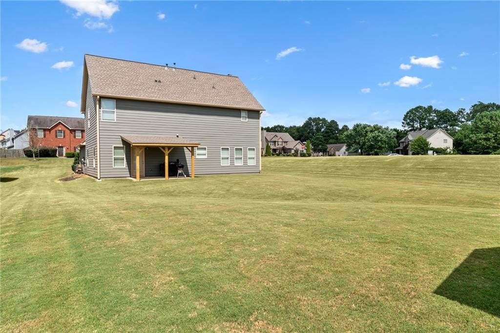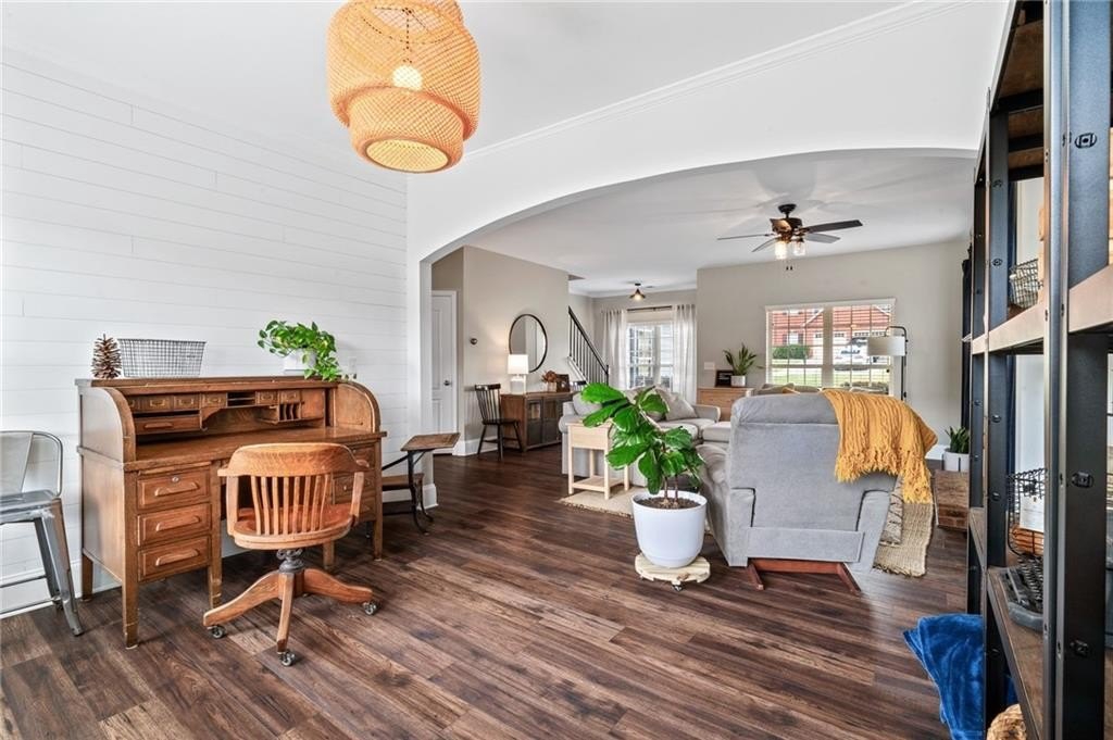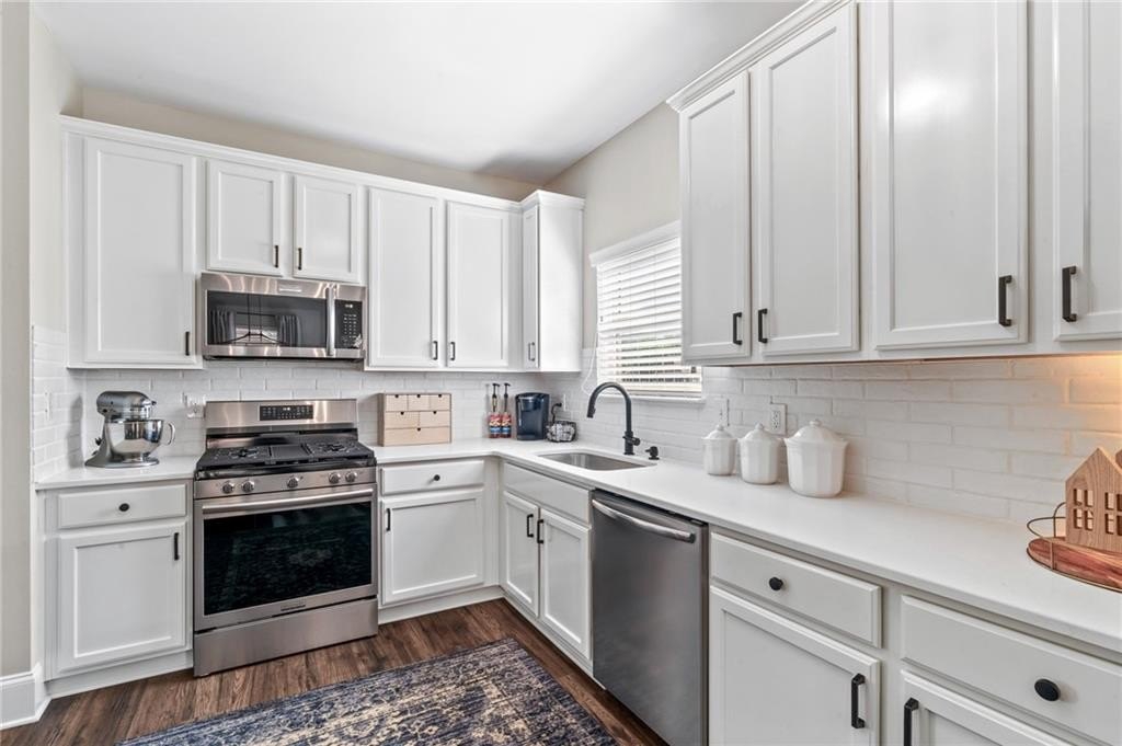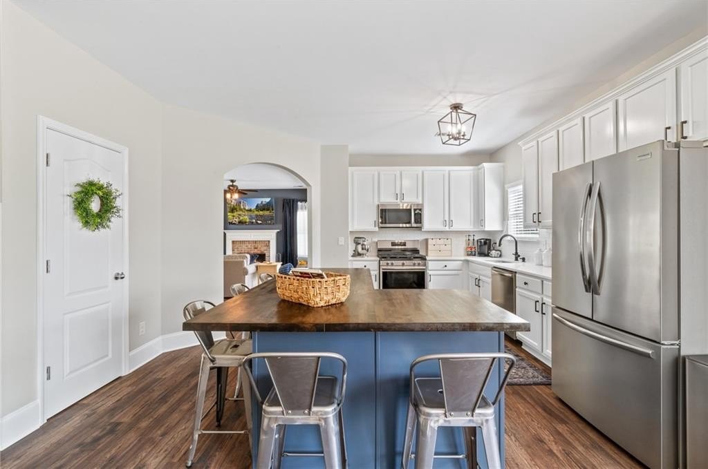 Sitting on one of the largest and most incredible corner lots in the popular Hamilton Crossing neighborhood, this beautifully - and completely updated - 4 bedroom, 3 full bathroom home offers the perfect mix of modern comfort and timeless charm. This increasingly uncommon floor plan features a full bedroom and full bathroom on the main level - ideal for guests, multi-generational living, or a private home office! There is also plenty of flex space with a large eat-in kitchen that is perfect for a more casual dining room, or used as a roomy keeping room! Then there is another large flex space off the living room that is perfect for a kid's play room, office space, sitting room, or a more formal dining space. Aside from having a ton of natural light, the home has been lovingly updated from top to bottom, boasting new flooring, fresh light fixtures, updated bathrooms, 5 year old (30 year architectural) roof, and a stunningly reimagined heart of the home! The kitchen features solid quartz countertops, expanded kitchen island with tons of room for barstools, tall cabinetry, less than a year old stainless steel appliances, and a huge walk-in pantry - absolutely perfect for busy daily living or full on entertaining! Upstairs there is an oversized owners suite, giant walk-in closet, immaculate owners bath, two additional bedrooms, and another completely overhauled full bathroom! Back outside, you'll find a newly covered patio, perfect for enjoying your morning coffee or hosting gatherings, and a large storage shed that is included in the sale! And being one of the largest lots in Hamilton Crossing and backing up to woods, this property allows ample outdoor space for recreation, gardening, private pool, hot tub, play set, or just taking in all that green space. Located just steps from the neighborhood pool, playground, and local parks right around the corner, this home delivers the ideal blend of immaculate move-in ready condition, peaceful established neighborhood lifestyle, prime location convenience, and easy living!