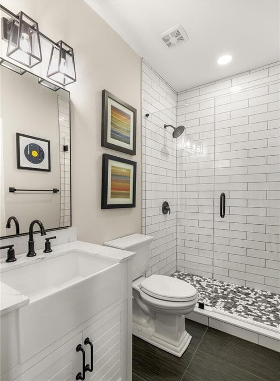 owner’s suite, providing durability and timeless charm. A private guest bedroom on the main floor features plush carpeting and a full ensuite bath — perfect for visiting family or multi-generational living. The heart of the home is a chef-inspired kitchen boasting crisp white