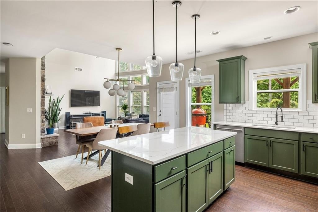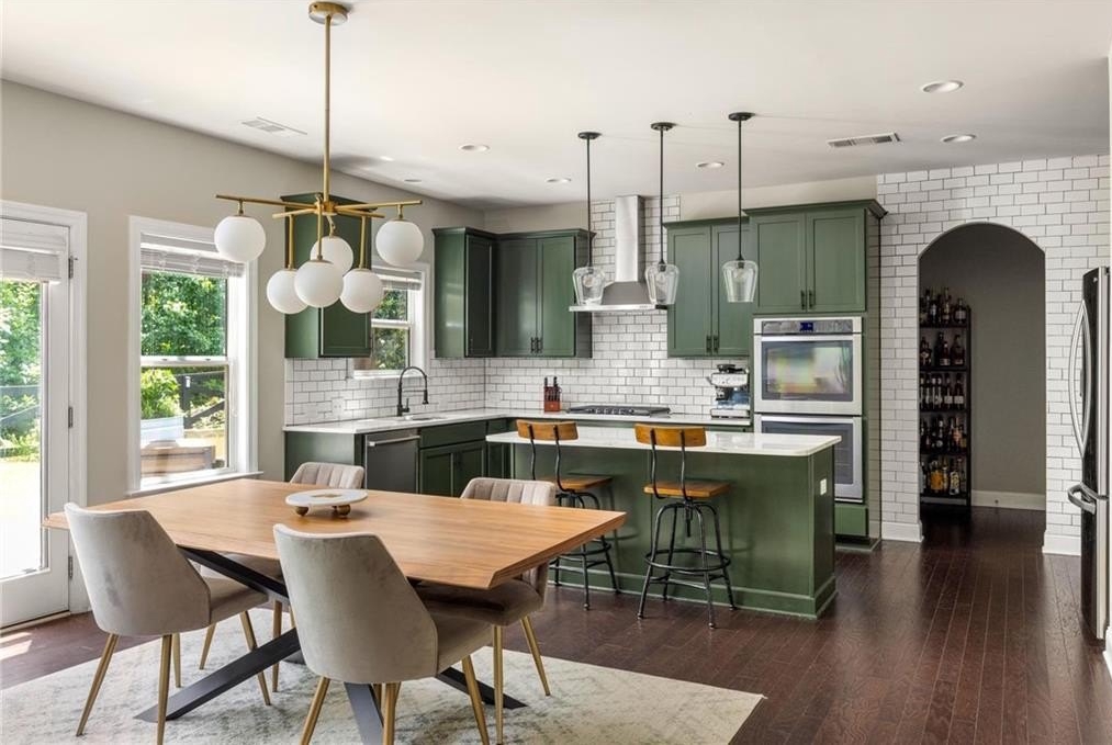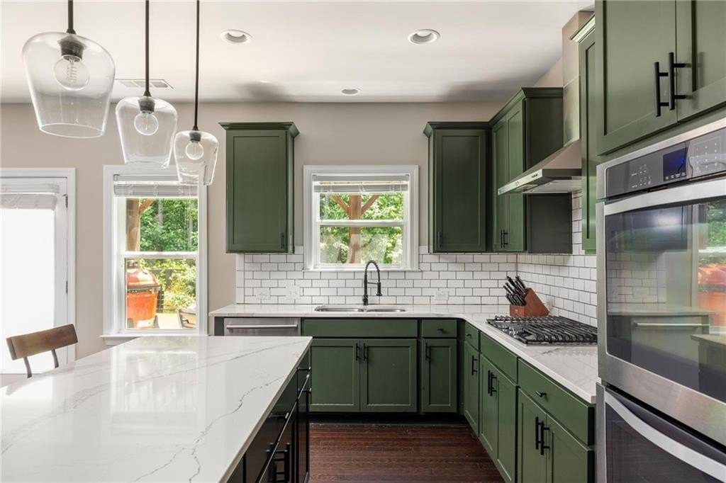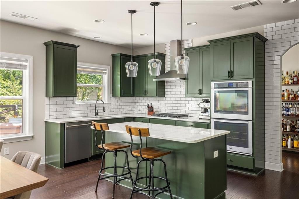 quartz countertops, abundant cabinetry, and high-end appliances — perfect for weeknight dinners or hosting friends for the big game. The