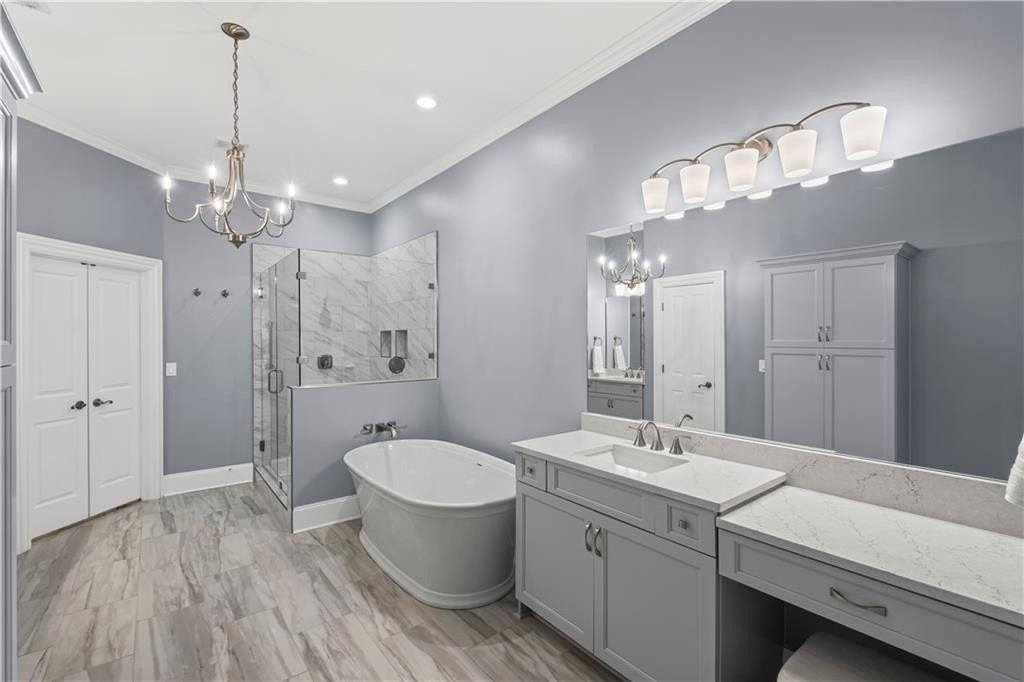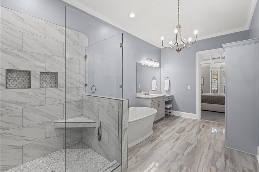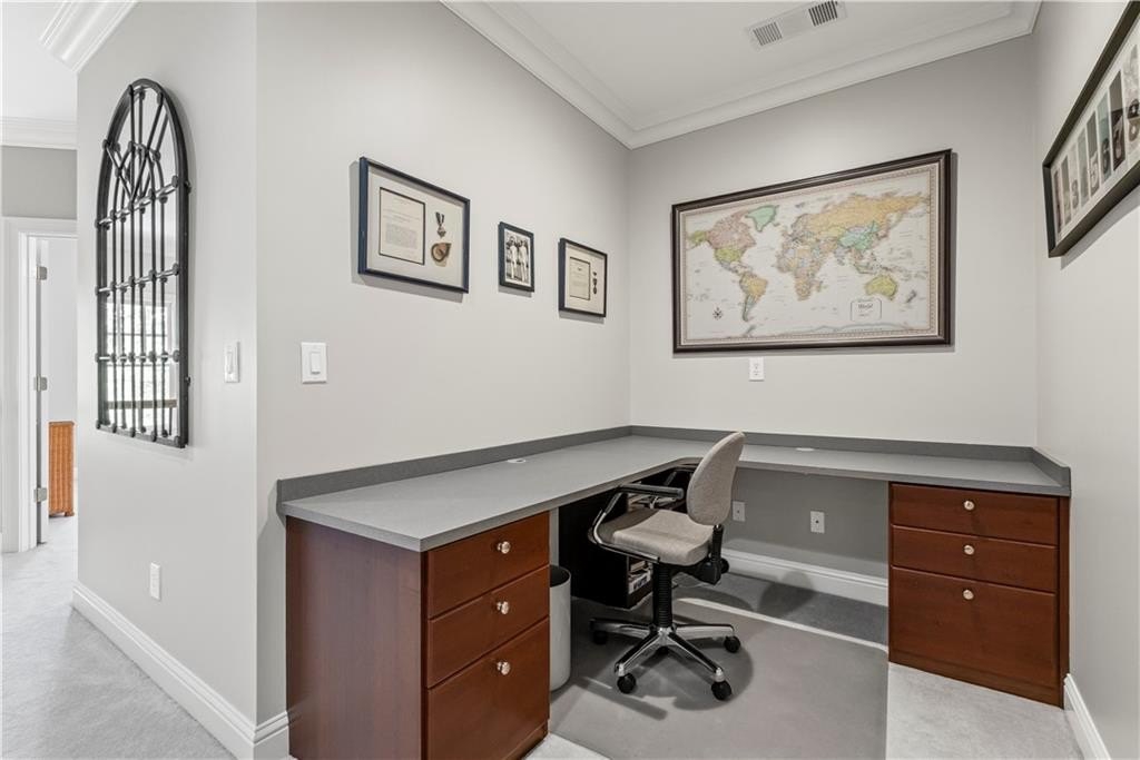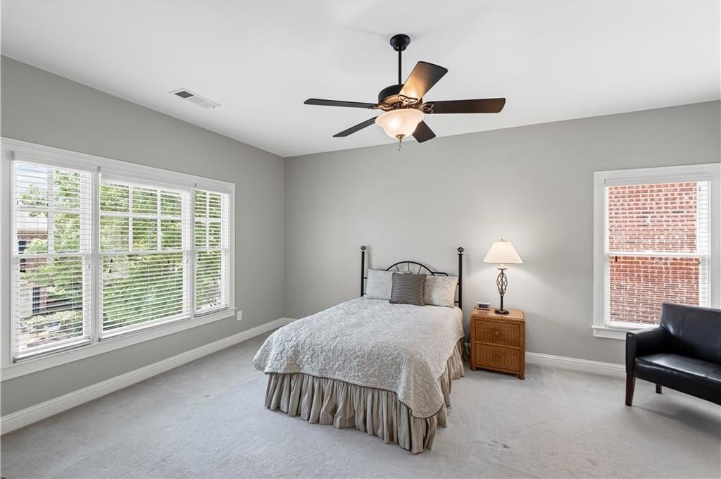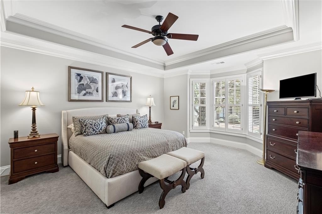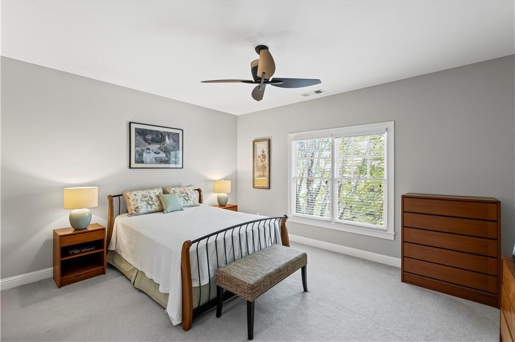 The main-level primary suite features a tray ceiling, large walk-in closet with custom built-ins, and a spa-like bath with a standalone soaking tub and a frameless glass shower. Upstairs, you’ll find two additional generously sized bedrooms, each with its own en-suite bath, plus an additional home office or flex space. Additional highlights include plantation shutters, a spacious laundry room, a two-car garage, and a main-level half bath. Enjoy abundant natural light throughout and a location that can’t be beat—just a 5-minute drive to North Point Mall, 10 minutes to Avalon and downtown Alpharetta, and walking distance to a variety of restaurants, shops and access to the Greenway. This is the perfect balance of privacy, comfort, and convenience in one of Alpharetta’s most desirable areas. Don’t miss your chance to call it home!