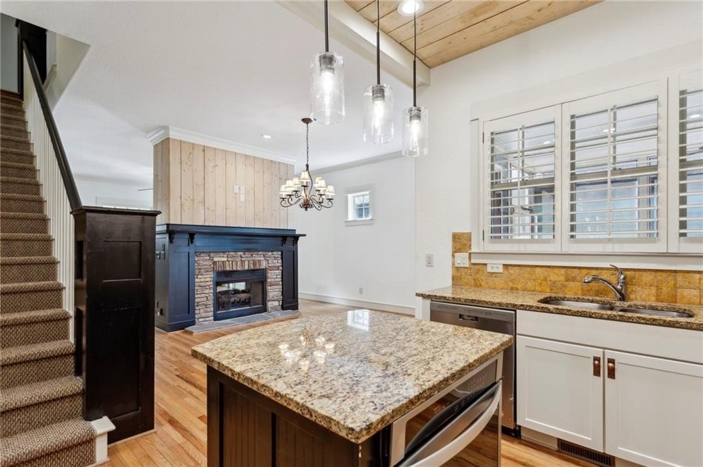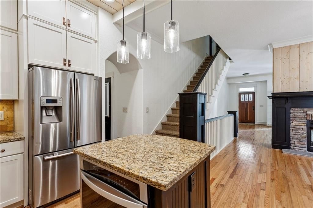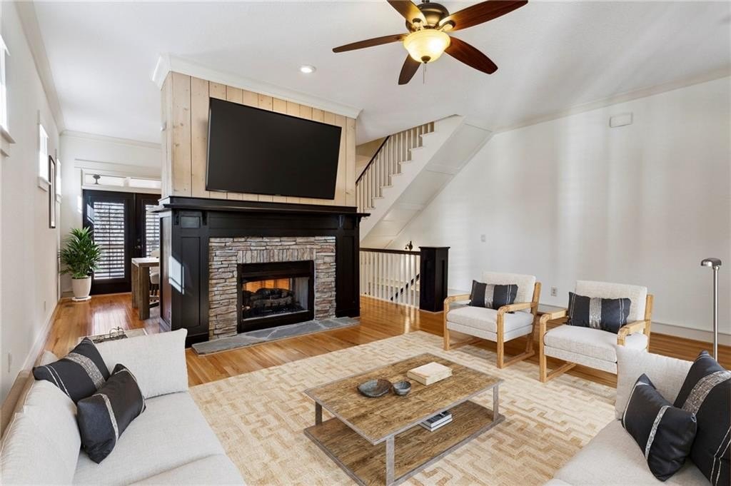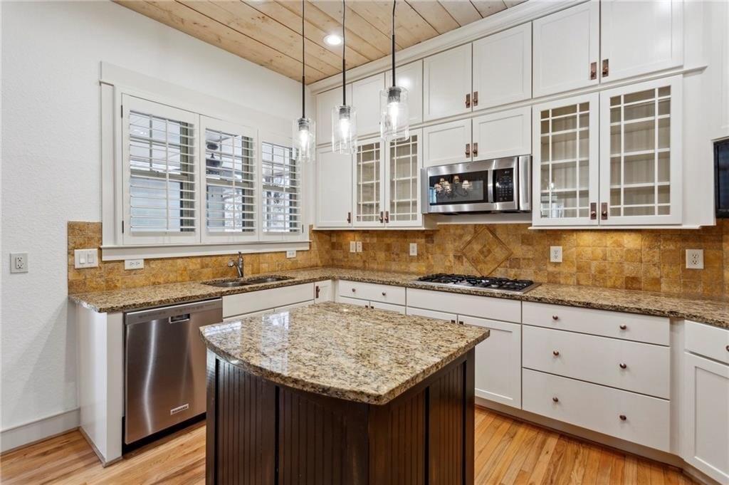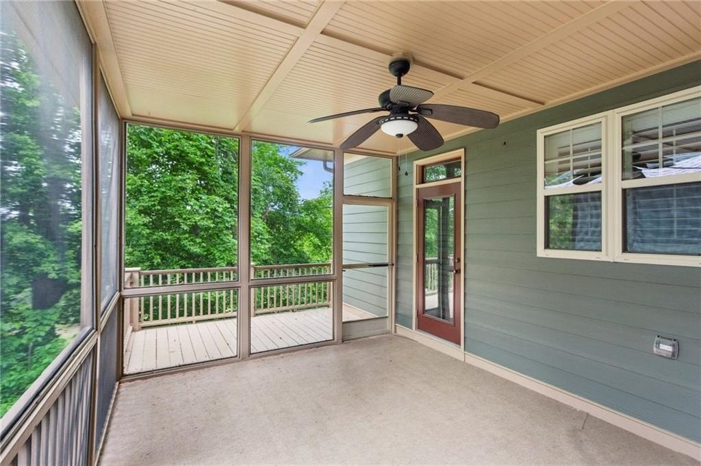 The main level features hardwood floors, 2 sided gas fire place, sunroom/office, updated kitchen, 10’ ceilings, large primary bedroom suite, primary bathroom with double granite vanity, walk in tile shower, jetted garden tub, primary closet with custom shelving, laundry room, large garage, powder room, and screened porch extending to renovated deck with views of creek and park. The kitchen includes painted cabinetry with upgraded hardware, granite counter tops, tile back splash, stainless steel appliances, gas cooktop, two large pantries, and island. Upstairs provides 3 large bedrooms, walk in closets, and bathrooms renovated with tile surround showers and painted cabinetry. The finished daylight basement has a large recreation room with projector screen for a home theater, additional bedroom/office spaces, storage, full bathroom with walk in shower, and opens to the covered patio with an outdoor fireplace. Additional highlights are new paint, plantation shutters, transoms, upgraded trim, hardie cement fiber board and shake exterior, newer roof, fenced backyard, community playground, and gated community.