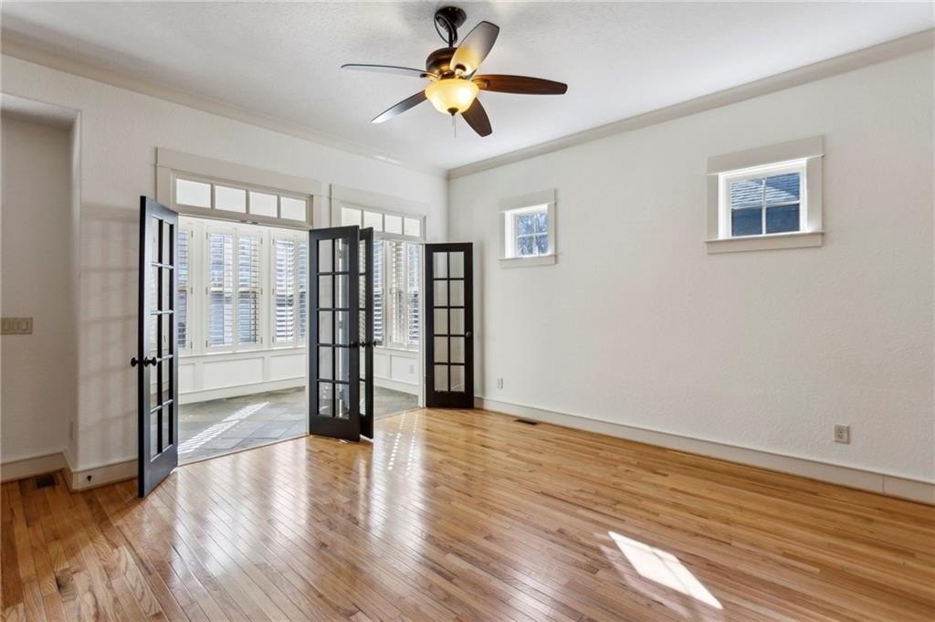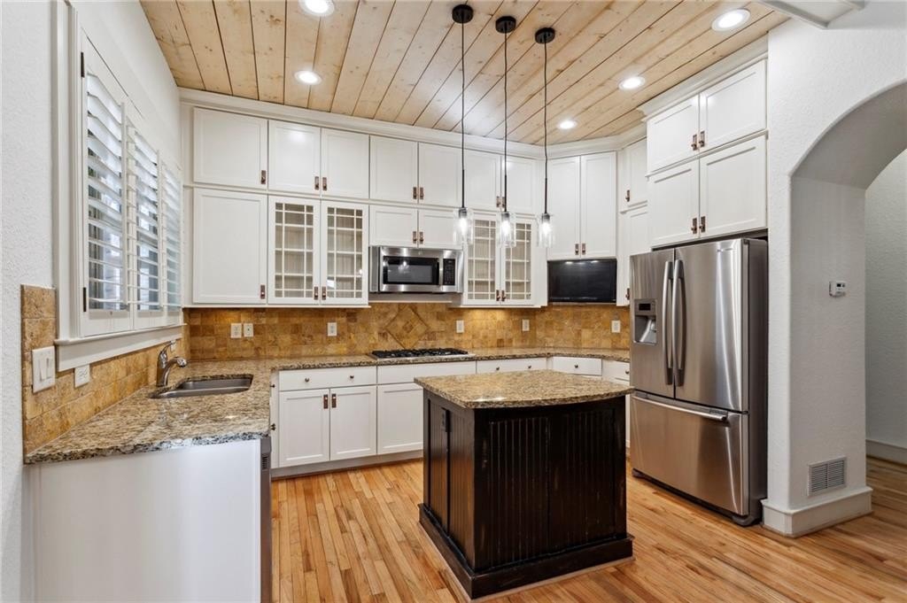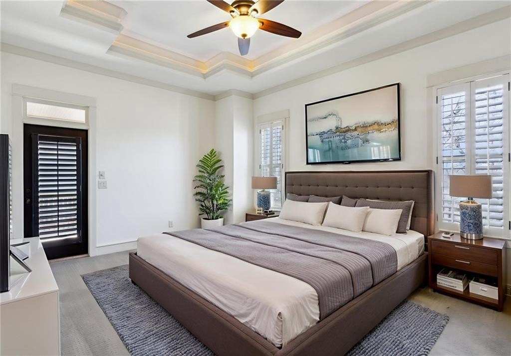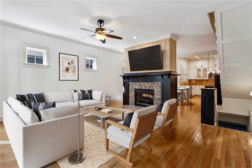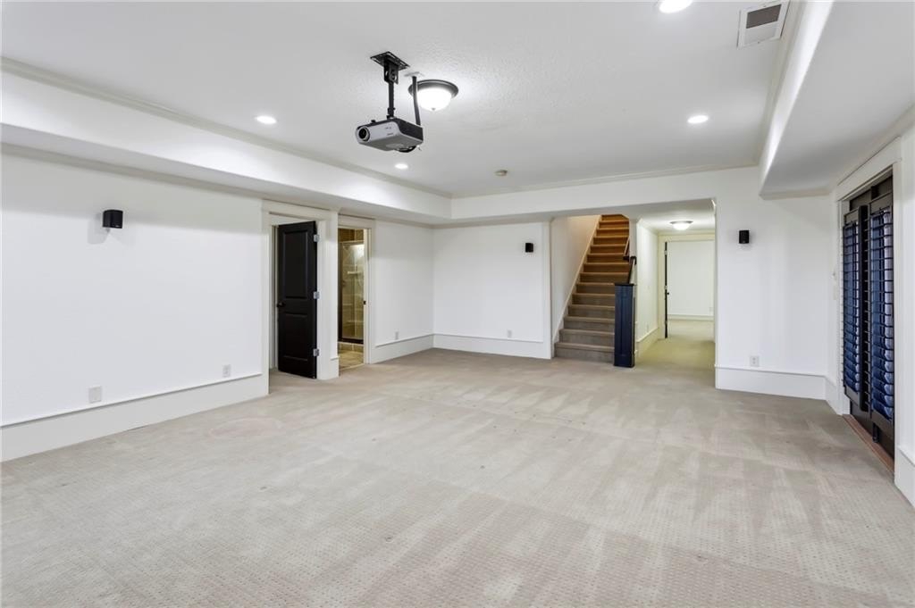 The main level features hardwood floors, 2 sided gas fire place, sunroom/office, updated kitchen, 10’ ceilings, large primary bedroom suite, primary bathroom with double granite vanity, walk in tile shower, jetted garden tub, primary closet with custom shelving, laundry room, large garage, powder room, and screened porch extending to renovated deck with views of creek and park. The kitchen includes painted cabinetry with upgraded hardware, granite counter tops, tile back splash, stainless steel appliances, gas cooktop, two large pantries, and island. Upstairs provides 3 large bedrooms, walk in closets, and bathrooms renovated with tile surround showers and painted cabinetry. The finished daylight basement has a large recreation room with projector screen for a home theater, additional bedroom/office spaces, storage, full bathroom with walk in shower, and opens to the covered patio with an outdoor fireplace. Additional highlights are new paint, plantation shutters, transoms, upgraded trim, hardie cement fiber board and shake exterior, newer roof, fenced backyard, community playground, and gated community.