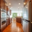 The gourmet kitchen is equipped with a breakfast bar, GE Profile double ovens, and an electric cooktop pre-plumbed for gas conversion. Cabinetry featuring pull-out drawers ensures ease of access. A casual dining area seamlessly connects to the family room, which includes a cozy gas fireplace framed by custom built-in cabinetry and picturesque views of the wooded backyard. The inviting enclosed sunroom offers tropical ceiling fans and EZ-Breeze windows, ideal for enjoying seasonal weather. Accessible from the sunroom, the landscaped backyard and expansive flagstone patio provide ample outdoor living space.