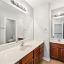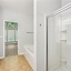 The main-level primary suite boasts high ceilings and oversized windows, creating a bright and serene retreat. The en suite bath includes a double vanity, separate tub and shower, and a walk-in closet.