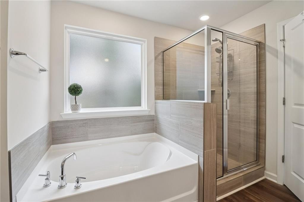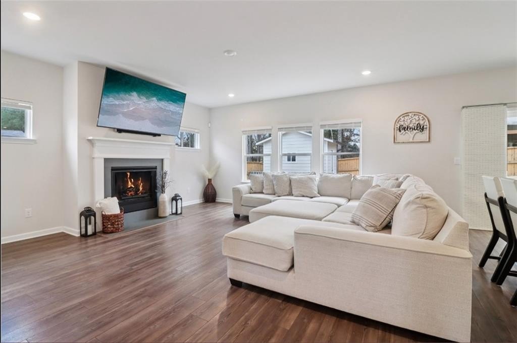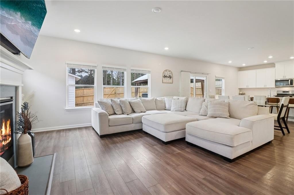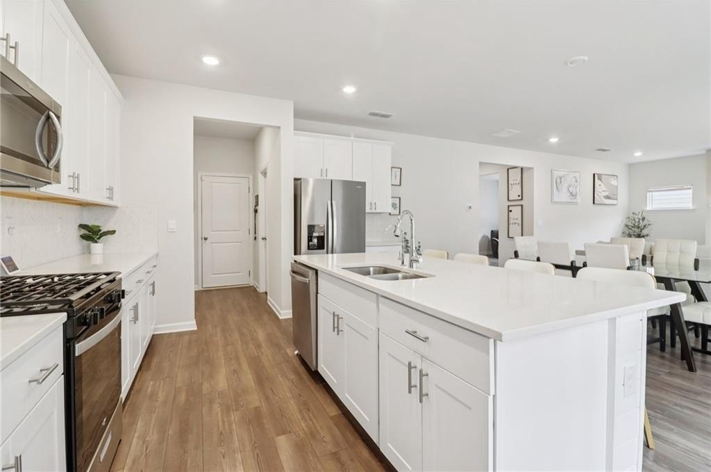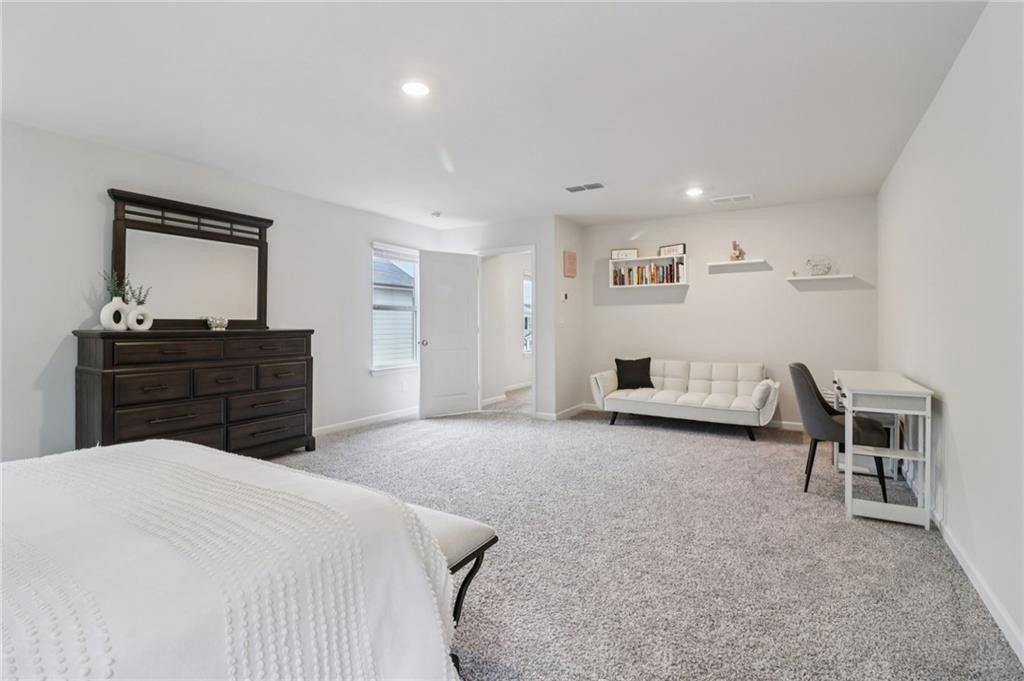 Like-new 2023 construction home for sale in the highly sought-after Meadows at Bay Creek community, located in the Archer School District! This modern single-family home is ideally positioned just minutes from shopping, dining, parks, and everyday conveniences, offering an exceptional blend of comfort, location, and lifestyle. Featuring over 3,300 square feet of living space, this open-concept floor plan is designed for today's living. The main level offers luxury vinyl plank (LVP) flooring throughout, a main-level guest bedroom with full bath, and a flex space ideal for a home office, formal dining room, or playroom. A conveniently located half bath on the main floor makes entertaining effortless. The bright, open-concept kitchen is the heart of the home, featuring crisp white cabinetry, a large center island with bar seating, and an oversized walk-in pantry. The kitchen seamlessly flows into the spacious living area, making it ideal for both everyday living and hosting gatherings. Upstairs, enjoy a versatile loft area and four spacious bedrooms, including a luxury owner's suite with a sitting area, walk-in closet, and spa-like ensuite bathroom featuring dual vanities, a soaking garden tub, and a separate shower. One secondary bedroom includes a private en suite bath, while the remaining bedrooms share a well-appointed hall bath. The upstairs laundry room adds convenience and functionality. Step outside to a private, NEW fully fenced backyard, ideal for outdoor entertaining, pets, or play. A NEW custom-built storage shed offers additional space for tools and equipment. Residents of Meadows at Bay Creek enjoy resort-style community amenities, including a swimming pool with cabana, playgrounds, sidewalks, and green spaces, making this neighborhood perfect for an active lifestyle. With abundant natural light, flexible living areas, and a prime location in Gwinnett County, this home is a standout opportunity. Schedule your private showing today to see why this nearly new home in the Archer High School district is the perfect place to call home!
