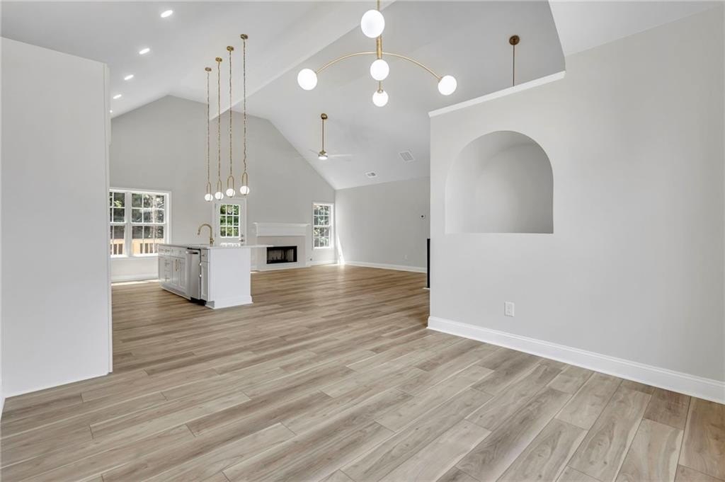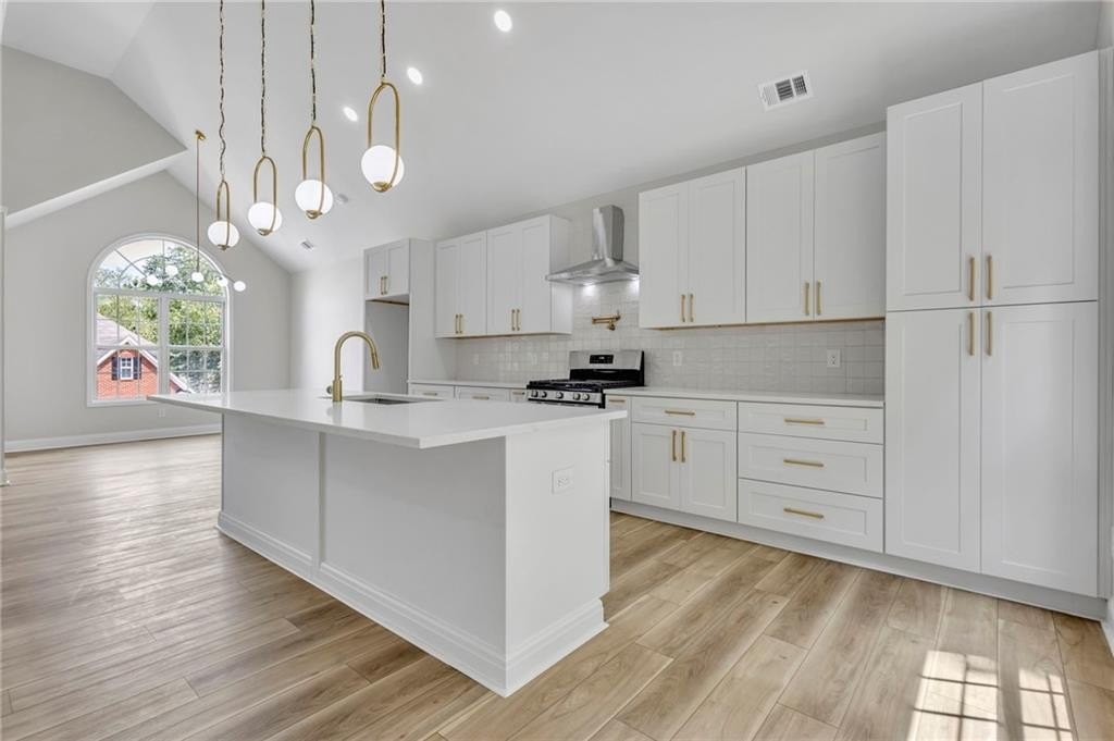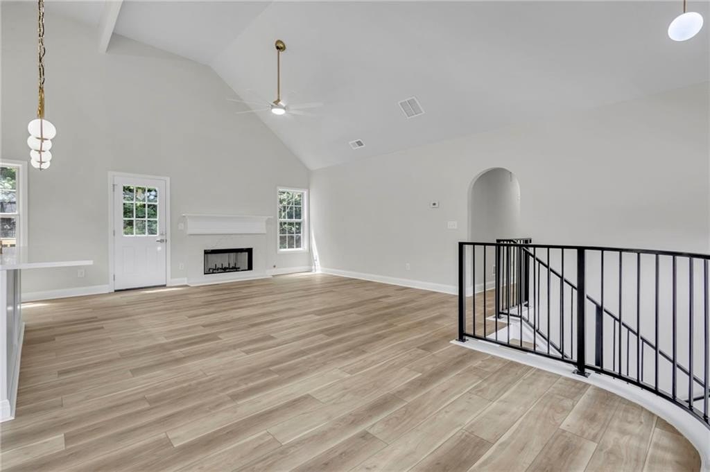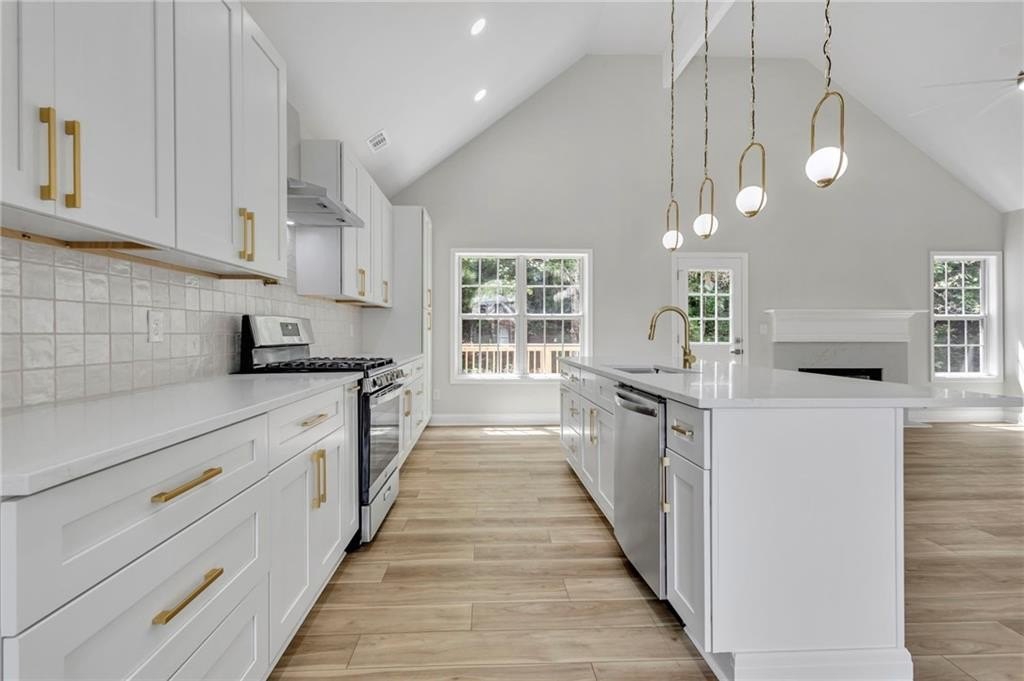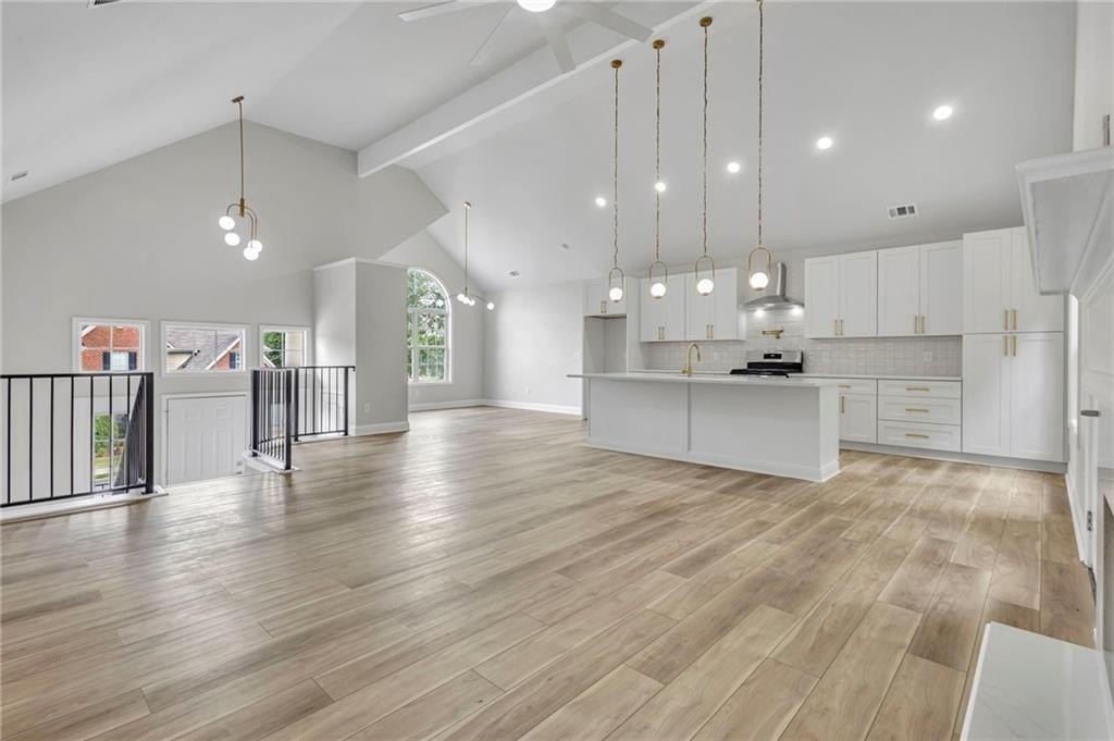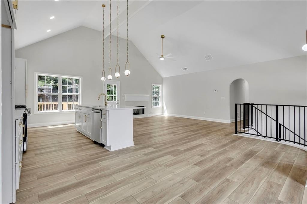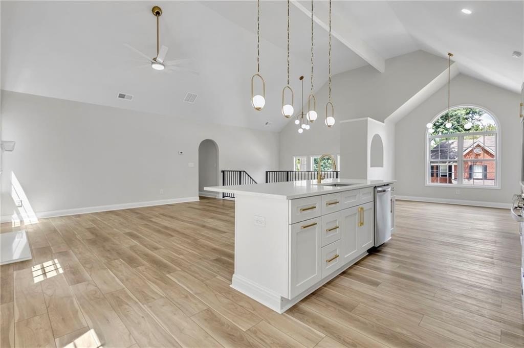 The open-concept main level features a massive quartz island, brand new appliances, wine bar and more, seamlessly blending style and function for effortless entertaining.