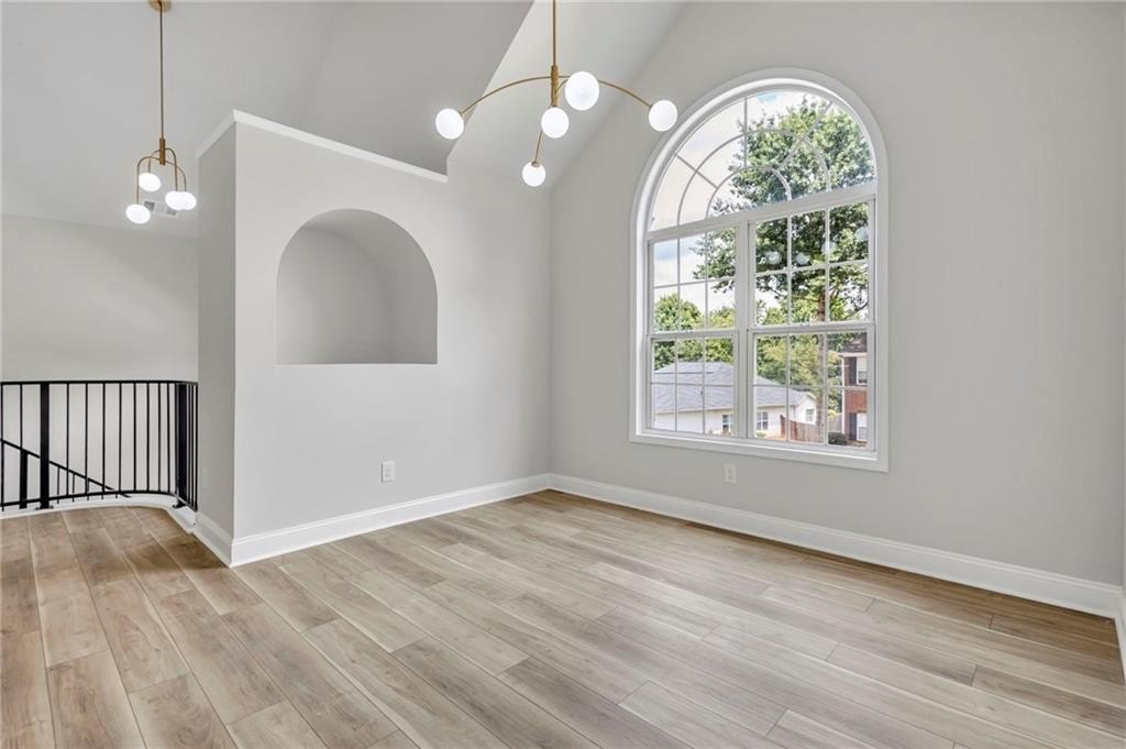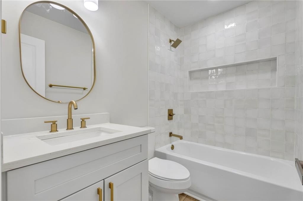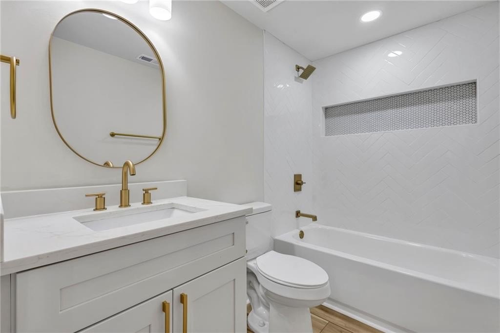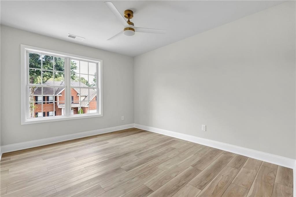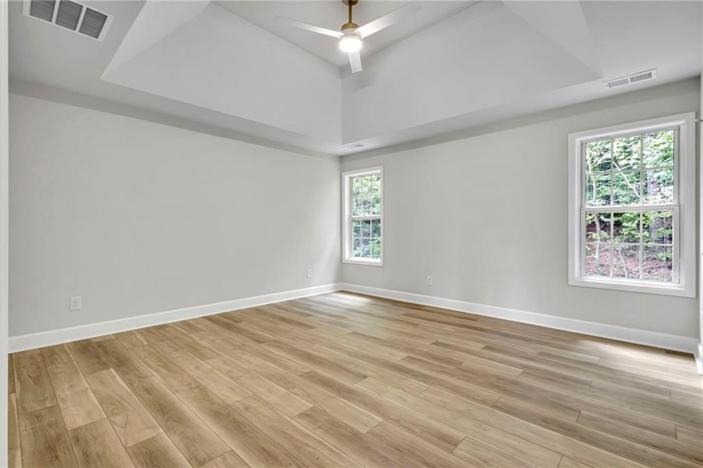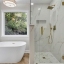 Retreat to the spa-inspired master suite, where you'll find herringbone tile floors, a soaking tub, custom gold fixtures, a walk-in closet, and a designer standing shower—all creating a peaceful, luxurious escape.