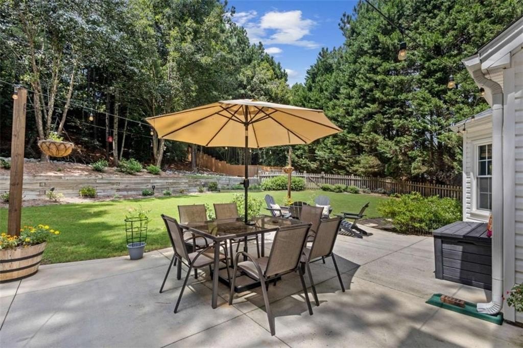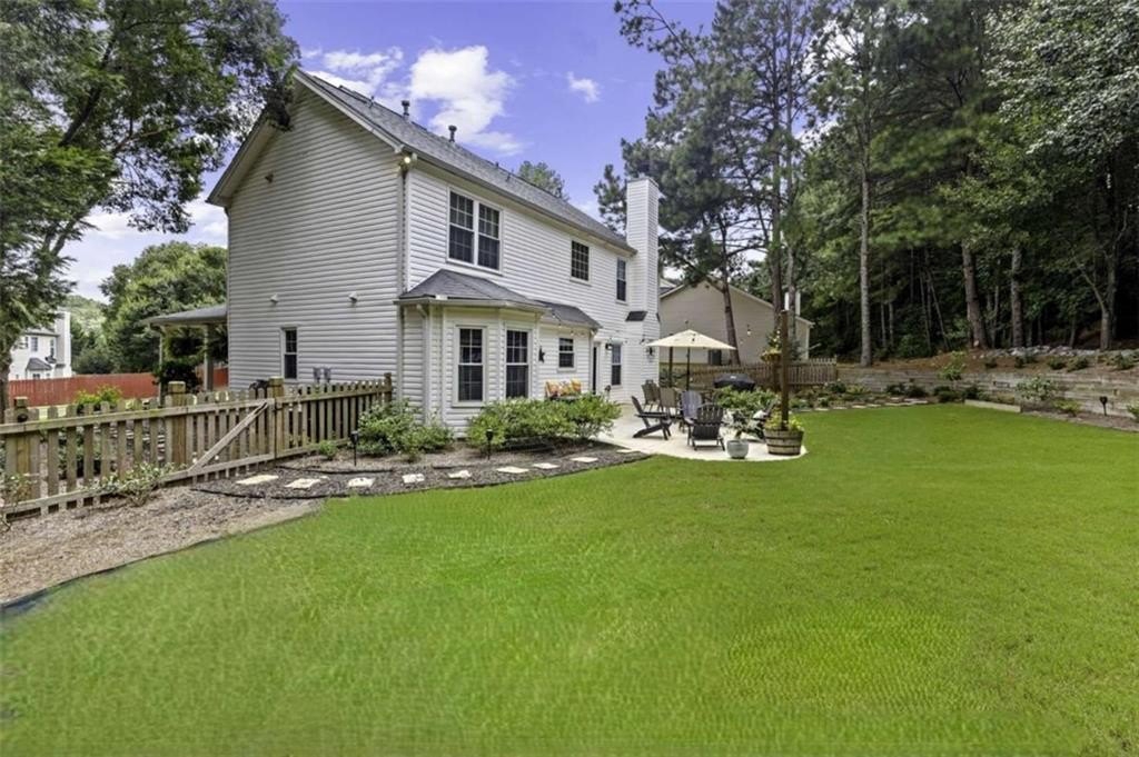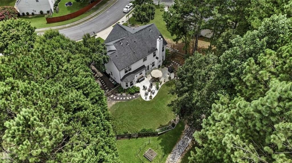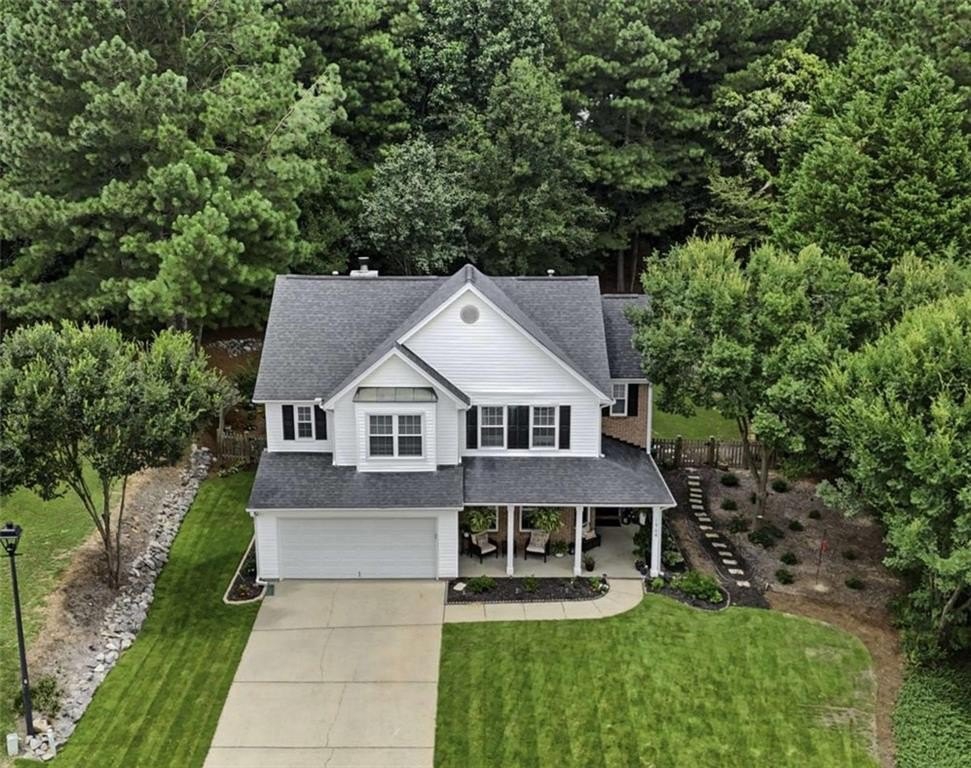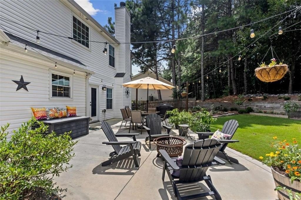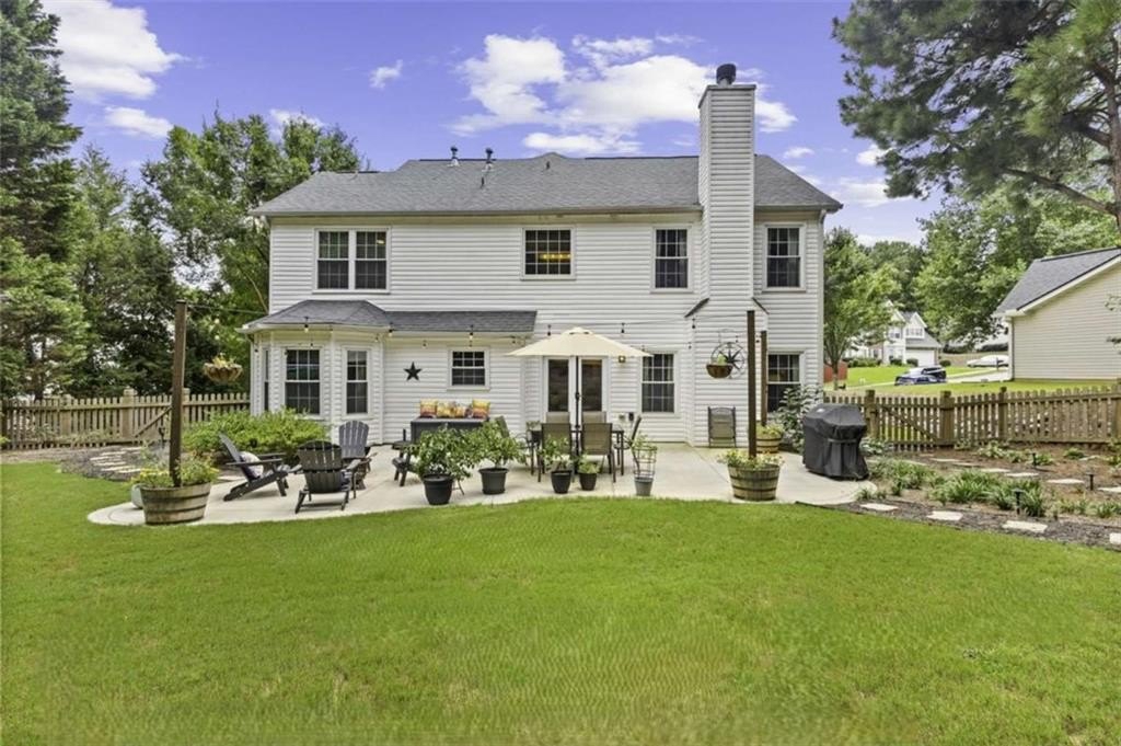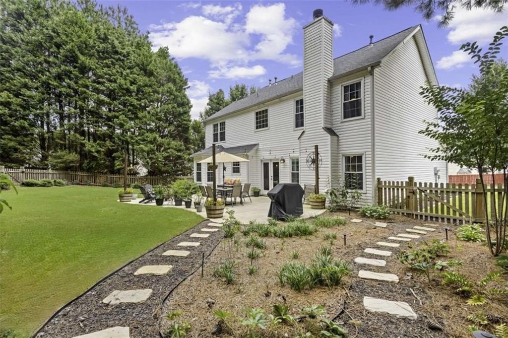 This beautifully updated home offers the perfect blend of modern style, comfort, and convenience-set on a level, fully fenced lot with a stunning backyard retreat you'll never want to leave. Enjoy evenings around the firepit under twinkling lighting while entertain on the expansive patio surrounded by a lush, professionally landscaped garden. Step inside to find a warm and welcoming interior, featuring updated modern lighting throughout, a stylish half bath with shiplap walls, and a dedicated den or office space ideal for working from home. The chef-inspired kitchen boasts abundant storage, stainless steel appliances, and a clear view to the cozy family room with gas fireplace-perfect for gathering with family and friends. Upstairs, the spacious owner's suite offers a luxurious escape with a spa-like soaking tub, while the laundry room on the bedroom level adds everyday convenience. Additional highlights include a wrought iron staircase, 2-car garage with kitchen-level entry, and a charming covered front porch for morning coffee or afternoon relaxing. Located just minutes from downtown Buford's boutique shops and popular restaurants, this vibrant swim/tennis/pickleball community courts, making it easy to stay active and social close to home. Don't miss your chance to own this move-in ready gem with a backyard that truly stands out!