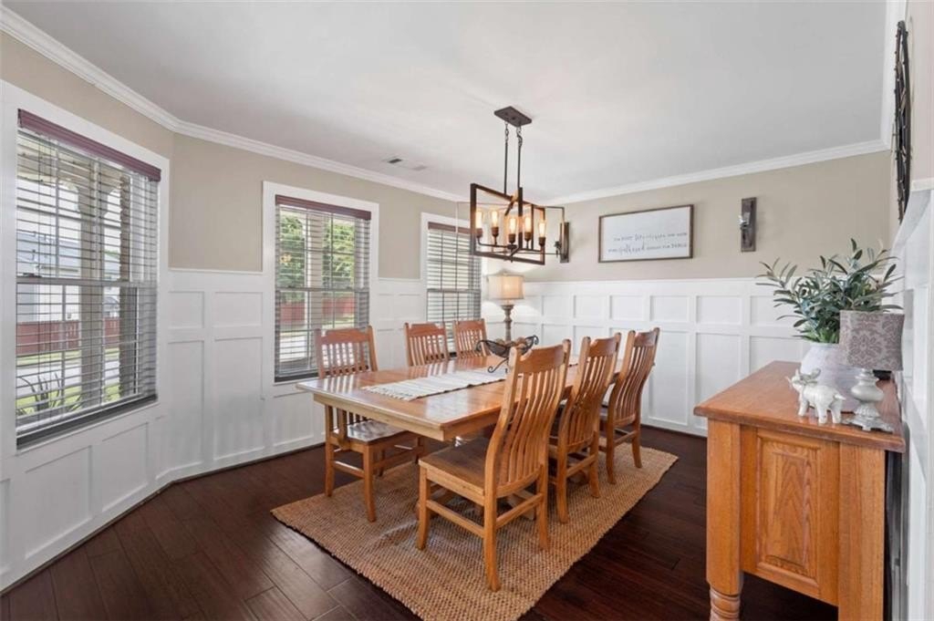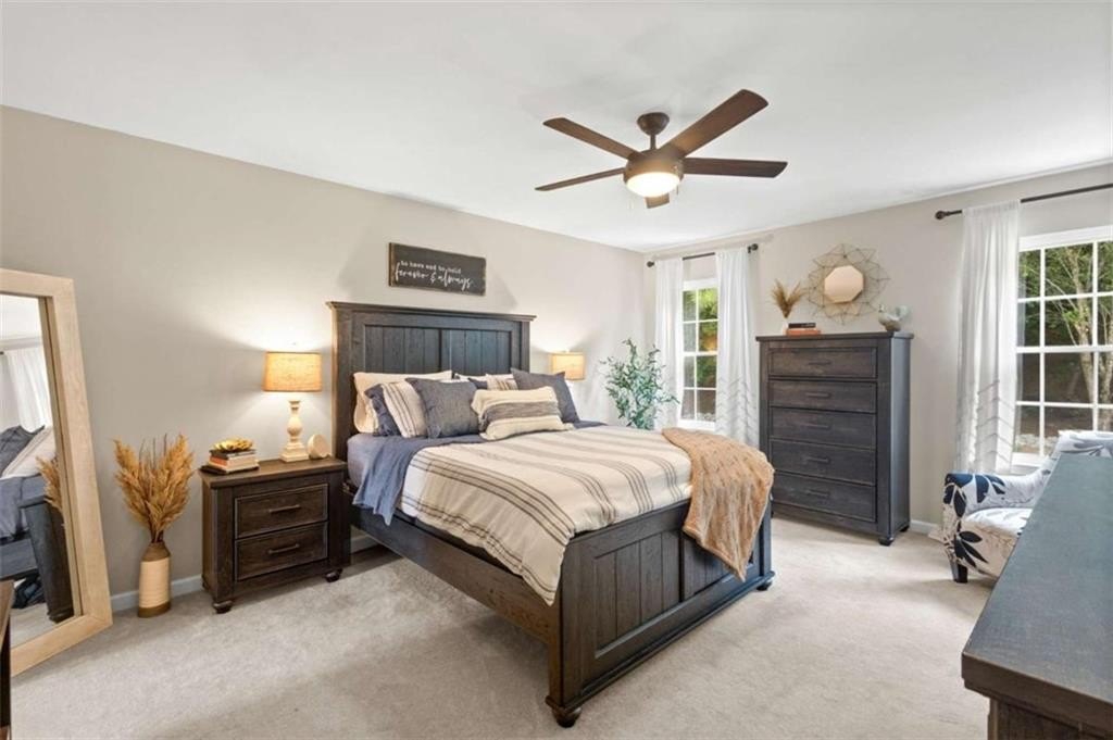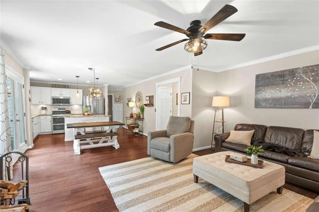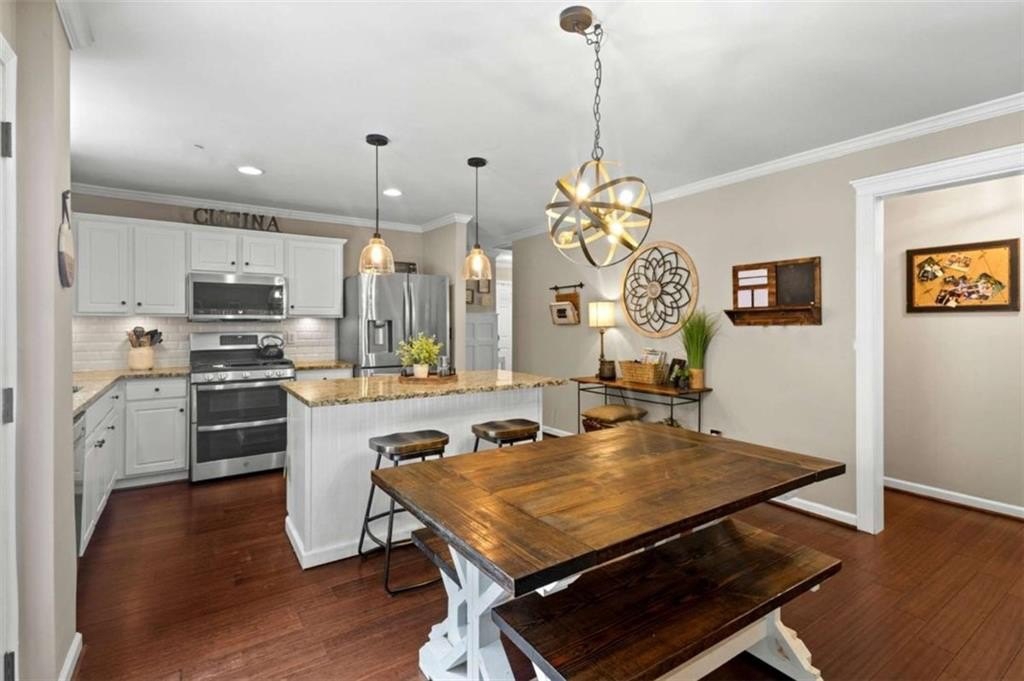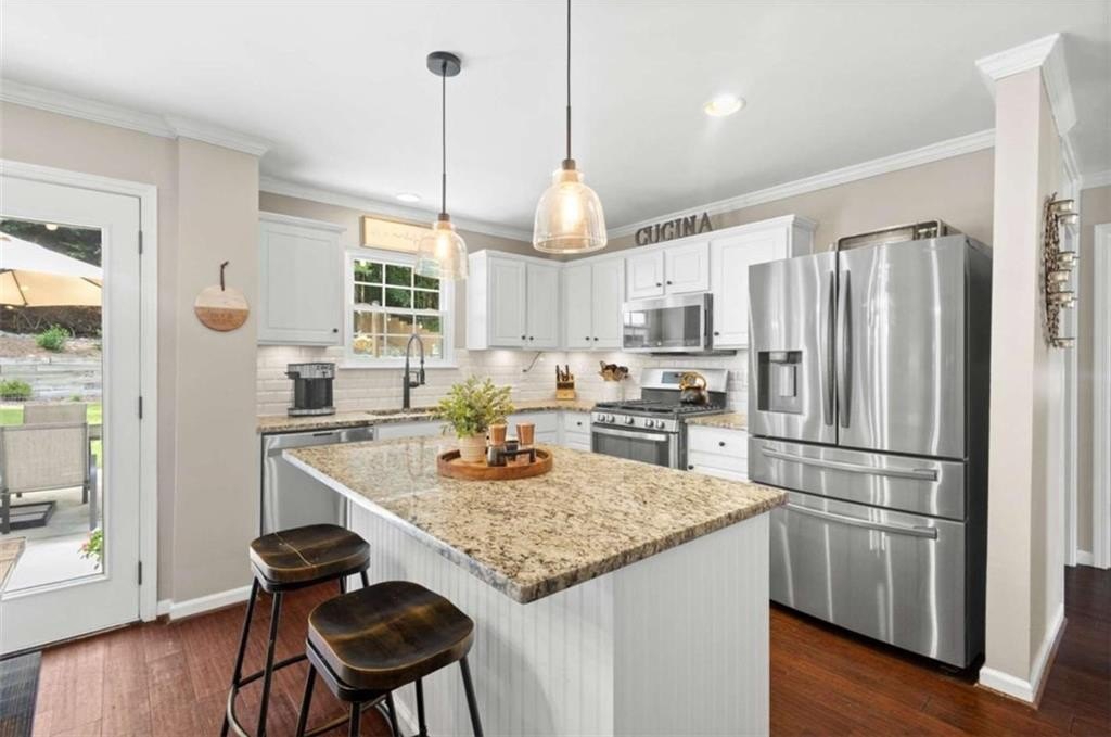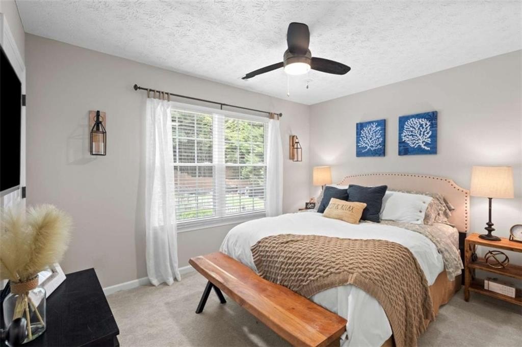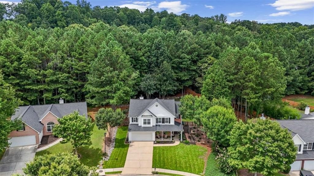 This beautifully updated home offers the perfect blend of modern style, comfort, and convenience-set on a level, fully fenced lot with a stunning backyard retreat you'll never want to leave. Enjoy evenings around the firepit under twinkling lighting while entertain on the expansive patio surrounded by a lush, professionally landscaped garden. Step inside to find a warm and welcoming interior, featuring updated modern lighting throughout, a stylish half bath with shiplap walls, and a dedicated den or office space ideal for working from home. The chef-inspired kitchen boasts abundant storage, stainless steel appliances, and a clear view to the cozy family room with gas fireplace-perfect for gathering with family and friends. Upstairs, the spacious owner's suite offers a luxurious escape with a spa-like soaking tub, while the laundry room on the bedroom level adds everyday convenience. Additional highlights include a wrought iron staircase, 2-car garage with kitchen-level entry, and a charming covered front porch for morning coffee or afternoon relaxing. Located just minutes from downtown Buford's boutique shops and popular restaurants, this vibrant swim/tennis/pickleball community courts, making it easy to stay active and social close to home. Don't miss your chance to own this move-in ready gem with a backyard that truly stands out!