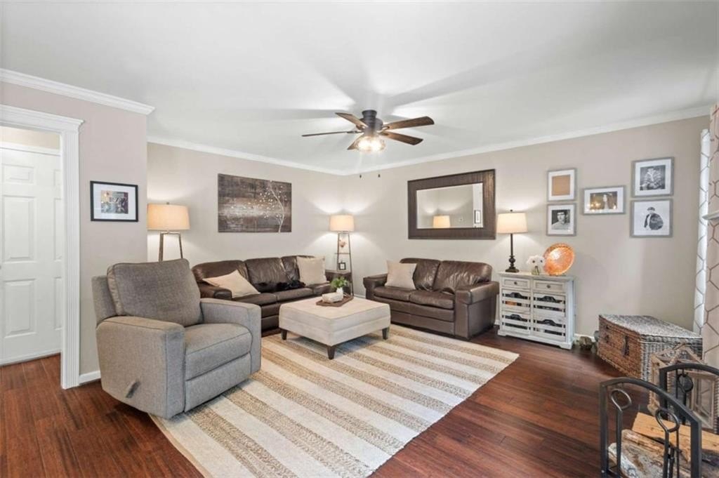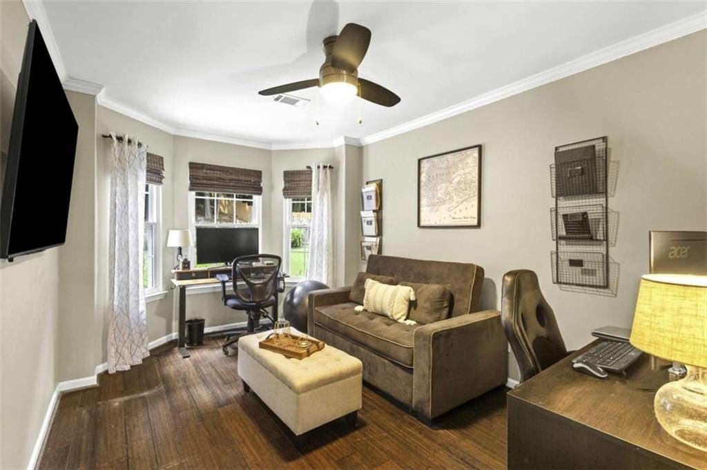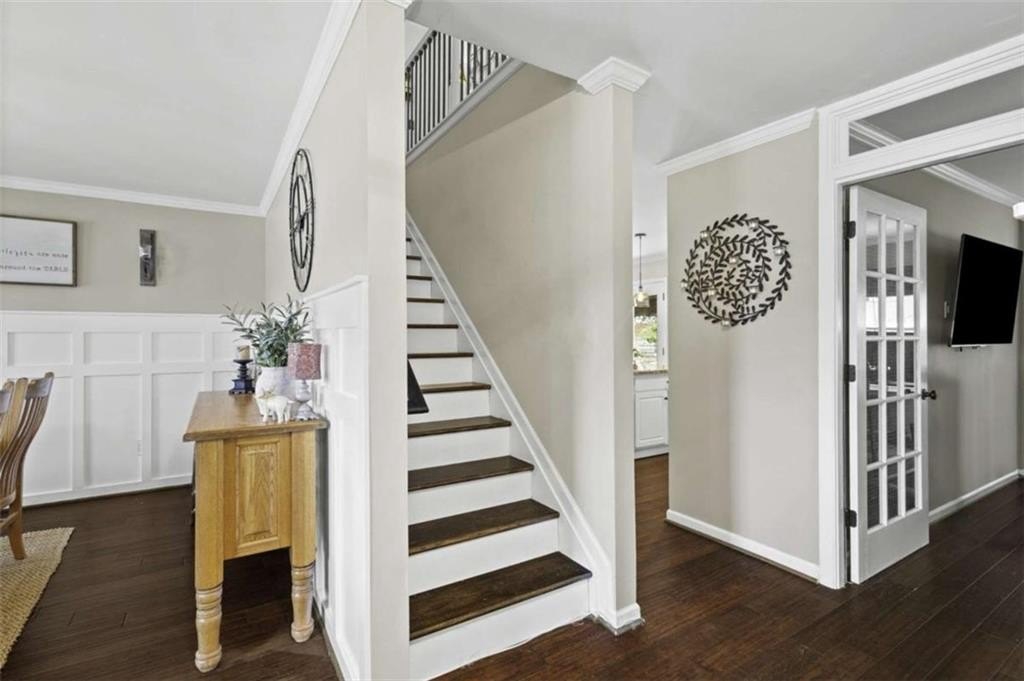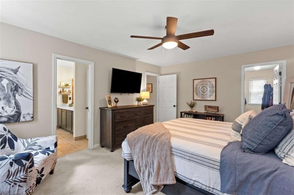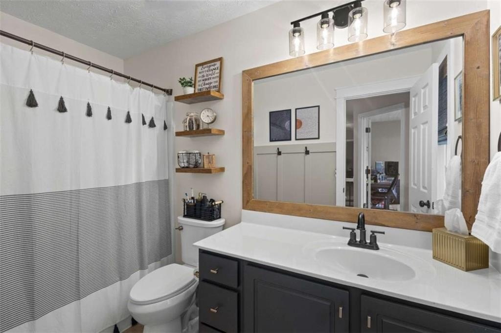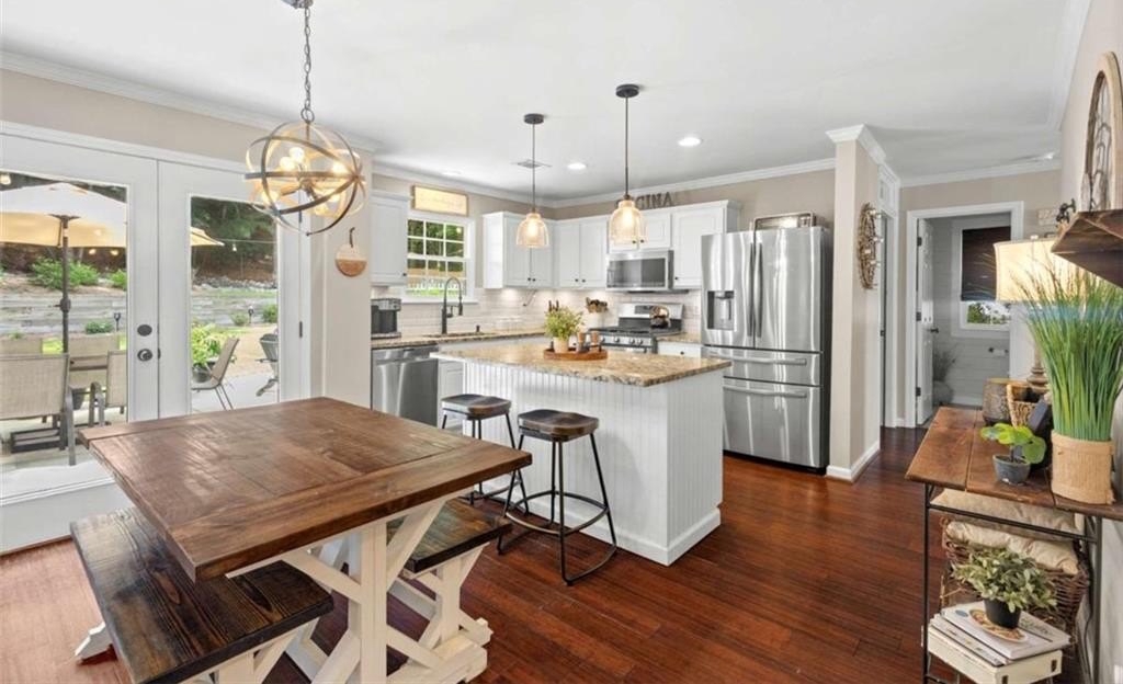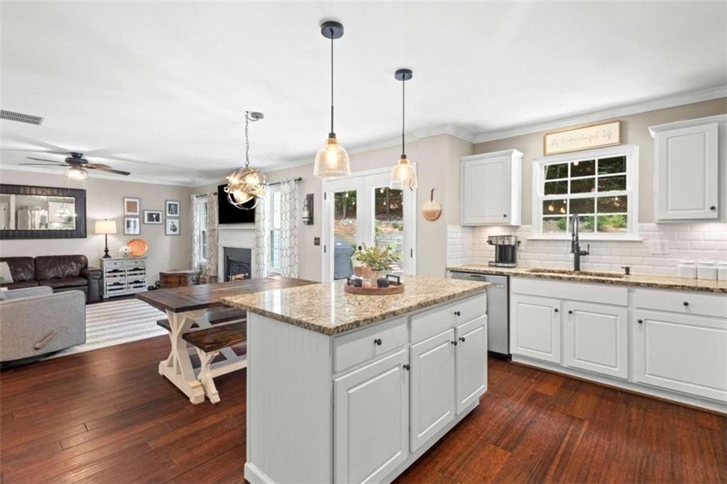 This beautifully updated home offers the perfect blend of modern style, comfort, and convenience-set on a level, fully fenced lot with a stunning backyard retreat you'll never want to leave. Enjoy evenings around the firepit under twinkling lighting while entertain on the expansive patio surrounded by a lush, professionally landscaped garden. Step inside to find a warm and welcoming interior, featuring updated modern lighting throughout, a stylish half bath with shiplap walls, and a dedicated den or office space ideal for working from home. The chef-inspired kitchen boasts abundant storage, stainless steel appliances, and a clear view to the cozy family room with gas fireplace-perfect for gathering with family and friends. Upstairs, the spacious owner's suite offers a luxurious escape with a spa-like soaking tub, while the laundry room on the bedroom level adds everyday convenience. Additional highlights include a wrought iron staircase, 2-car garage with kitchen-level entry, and a charming covered front porch for morning coffee or afternoon relaxing. Located just minutes from downtown Buford's boutique shops and popular restaurants, this vibrant swim/tennis/pickleball community courts, making it easy to stay active and social close to home. Don't miss your chance to own this move-in ready gem with a backyard that truly stands out!