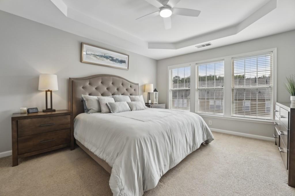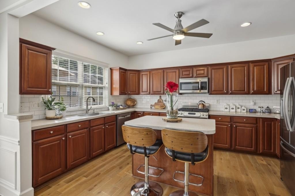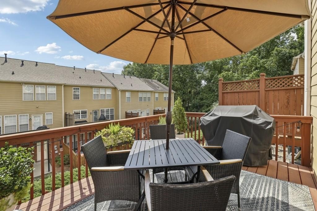 Move-In Ready Townhome in an Unbeatable Location! Nestled just minutes from The Battery, Truist Park, Vinings, Smyrna Market Village, Cumberland Mall, and the Silver Comet Trail, this spacious and light-filled townhome offers the perfect blend of comfort and convenience with easy access to I-285 and a quick 15-minute drive to Buckhead. Inside, you'll find a flowing floorplan with wide-plank flooring that seamlessly connects the fireside Family Room to the Dining Area, with access to a private Rear Deck ideal for morning coffee or evening relaxation. The spacious Kitchen is perfect for everyday living and entertaining, featuring dark wood cabinetry, stainless steel appliances, a tile backsplash, and a central island with a Breakfast Bar. Upstairs, retreat to the Primary Suite with a large Walk-In Closet and a spa-style Ensuite Bathroom complete with Dual Vanities, a Soaking Tub, and a separate Tiled Shower. A second Bedroom also offers a Walk-In Closet and access to the second Full Bathroom. The lower level includes a third Bedroom and a Half Bath perfect for a Home Office, Gym, or Media Room with access to the Private Patio and Fully Fenced Backyard. Enjoy life in a welcoming community with a Junior Olympic Pool, scenic Greenspaces, and Walking Trails. This one checks all the boxes don't miss your opportunity!