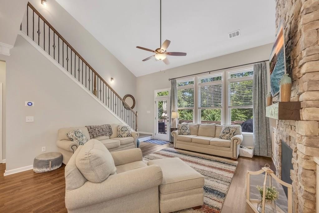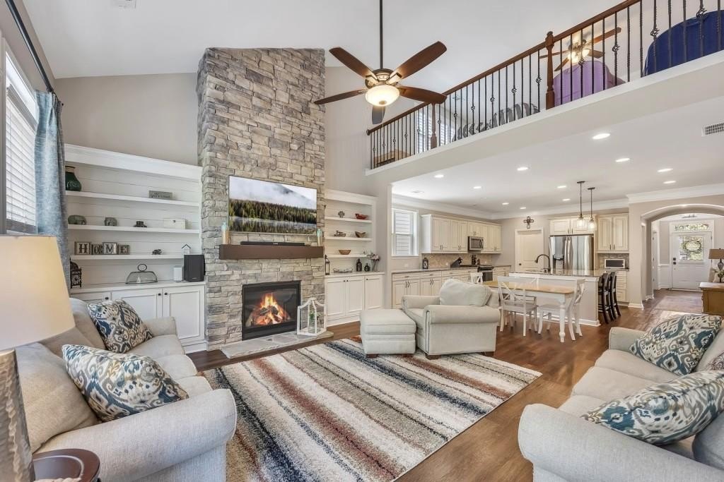 Sought after but seldom available 5 BR/4.5 BA with a MASTER ON MAIN! Situated on a premium cul-de-sac lot, this home is a MUST SEE! Meticulously maintained, this home features, a welcoming front porch, A Foyer, 2-story family room w/stone fireplace and built-in bookcases, Formal dining currently used as an office, spacious island kitchen w/a custom walk-in pantry, Open floor plan, huge loft w/built in cabinets and shelving perfect for a game room, plantation shutters, finished basement w/media room, game room, full bedroom & bath, unfinished area for storage, expanded deck, decks undercover, level fenced backyard w/walking access to lake, custom flooring in garage, beautifully landscaped front yard w/hardscapes. Call today for a quick showing!