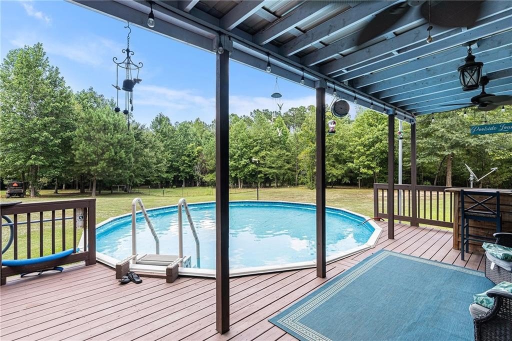 home. Outside enjoy an above ground, well maintained pool with deck surround. Pool deck also has a bar and