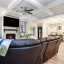 Freshly painted throughout the main level, this home is move-in ready and showcases an open floor plan featuring soaring 10-foot ceilings and elegant coffered and tray ceiling details. The gourmet kitchen is a chef’s dream with white cabinetry, a massive island with a pot filler, double ovens, and stone countertops, ideal for entertaining large gatherings. Adjacent to the kitchen is a spacious family room with a cozy gas log fireplace and stunning views of the private backyard.