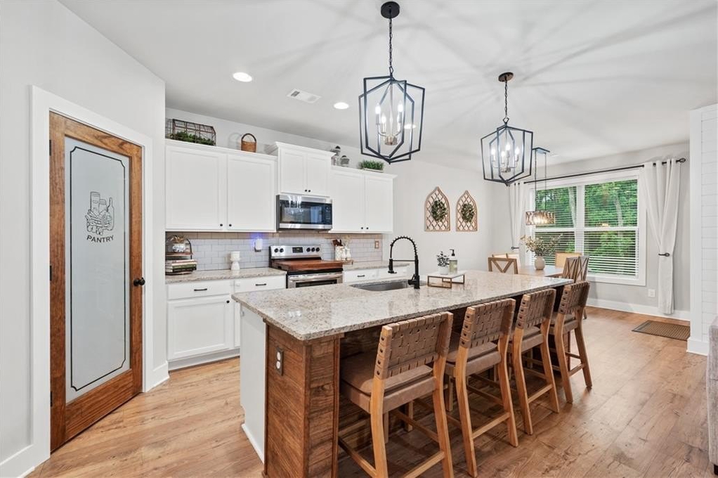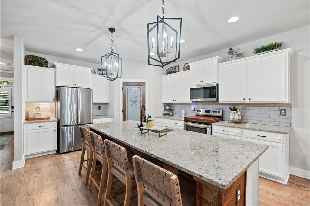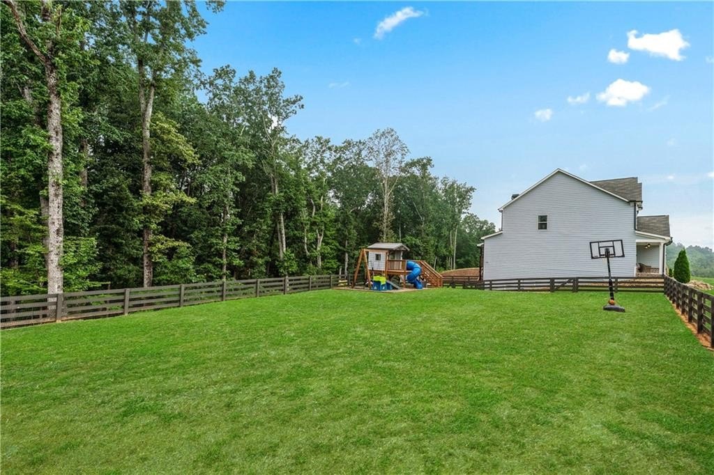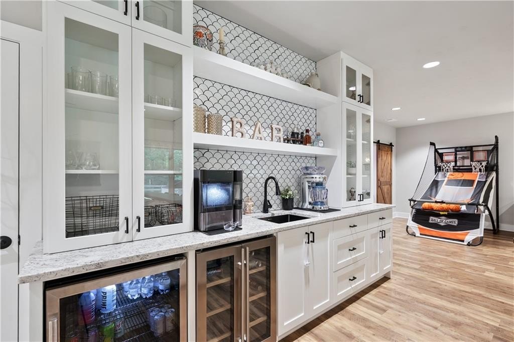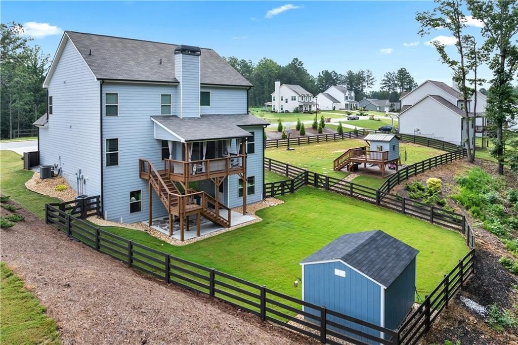 Welcome to your dream home! This beautifully updated 5 bedroom, 4 bathroom home on a fully finished basement sits on 1.5 + acres and offers the perfect blend of comfort, function, and style. Step inside to find modern finishes at every turn, upgraded lighting fixtures that elevate every room and LVP flooring throughout (No Carpet). The kitchen features a large island complete with granite countertops, stainless steel appliances and a custom pantry. Upstairs, the newly remodeled master bathroom and custom closet create a true retreat, while a custom barn door offers convenient access between the 5th bedroom and the master, ideal for a nursery or home office. (can easily be converted back if desired) As you head downstairs, you will find the recently finished basement that features a full bathroom, custom wet bar and a flex room, which is perfect for a gym, media room, or office. Enjoy outdoor living at its best with a covered back deck, storage shed, custom playhouse, epoxy coated patios and garage floors, a HUGE fenced in backyard and beautifully enhanced landscaping with rock accents and an in ground irrigation system. WAY too many upgrades to list. Conveniently located near schools, major highways and shopping. This home truly has it all!