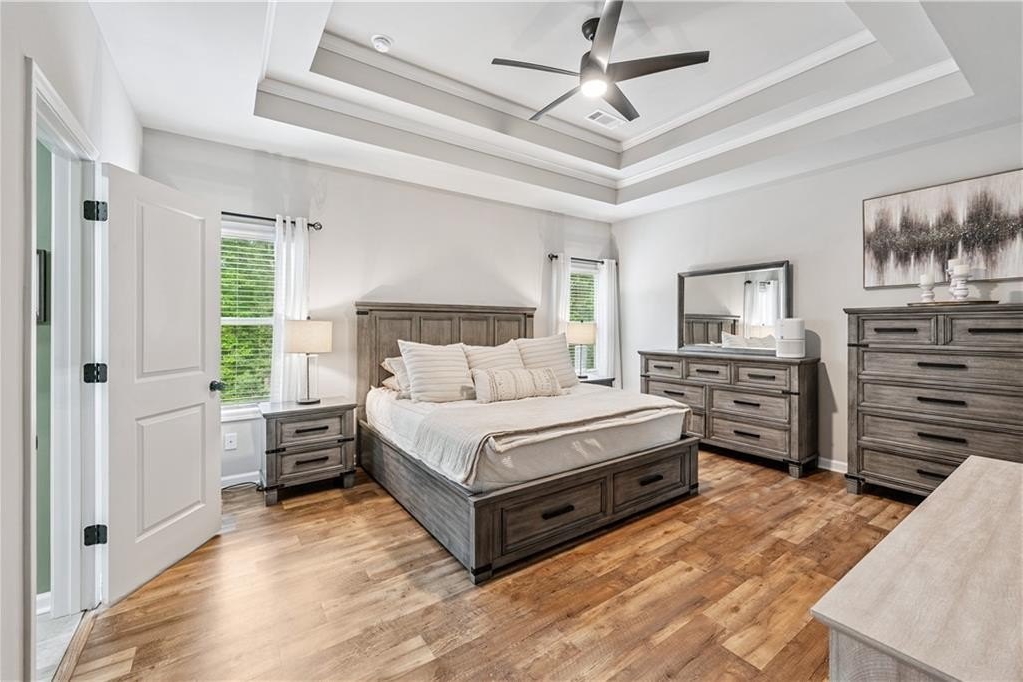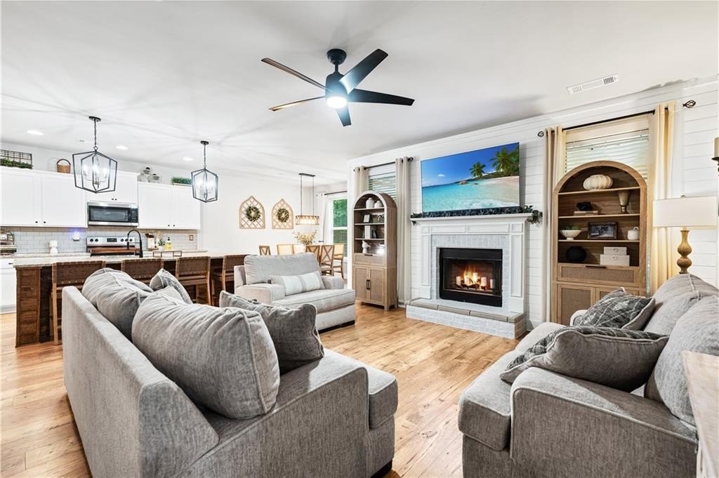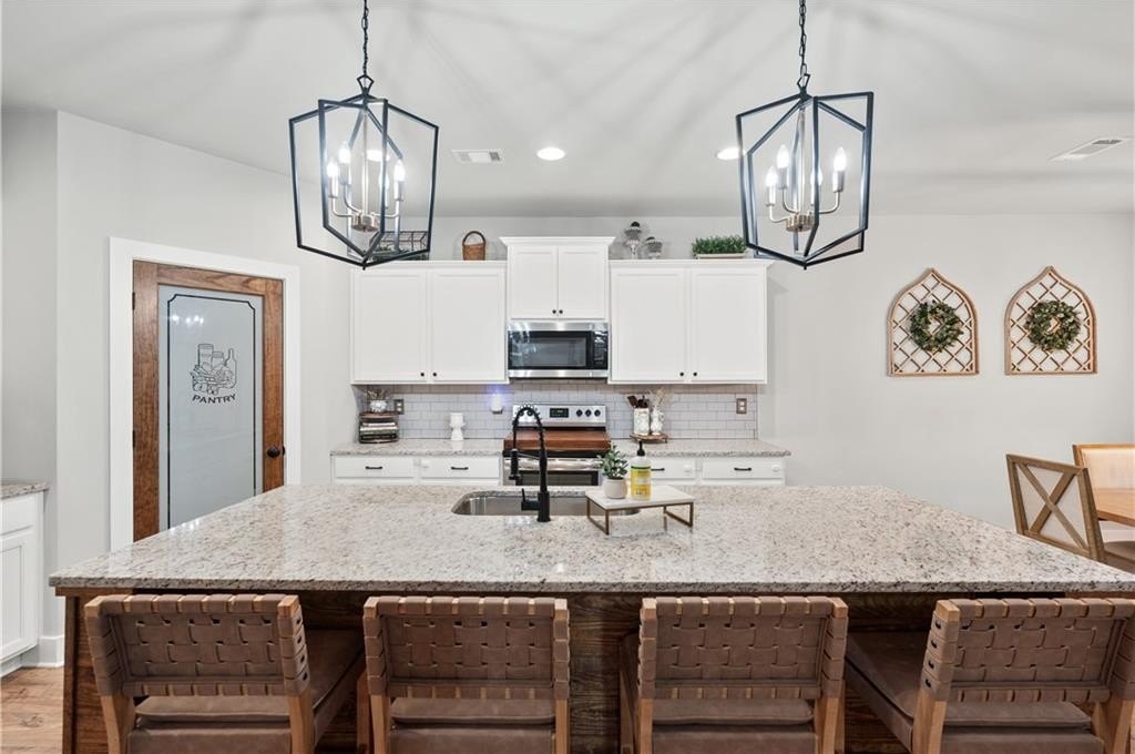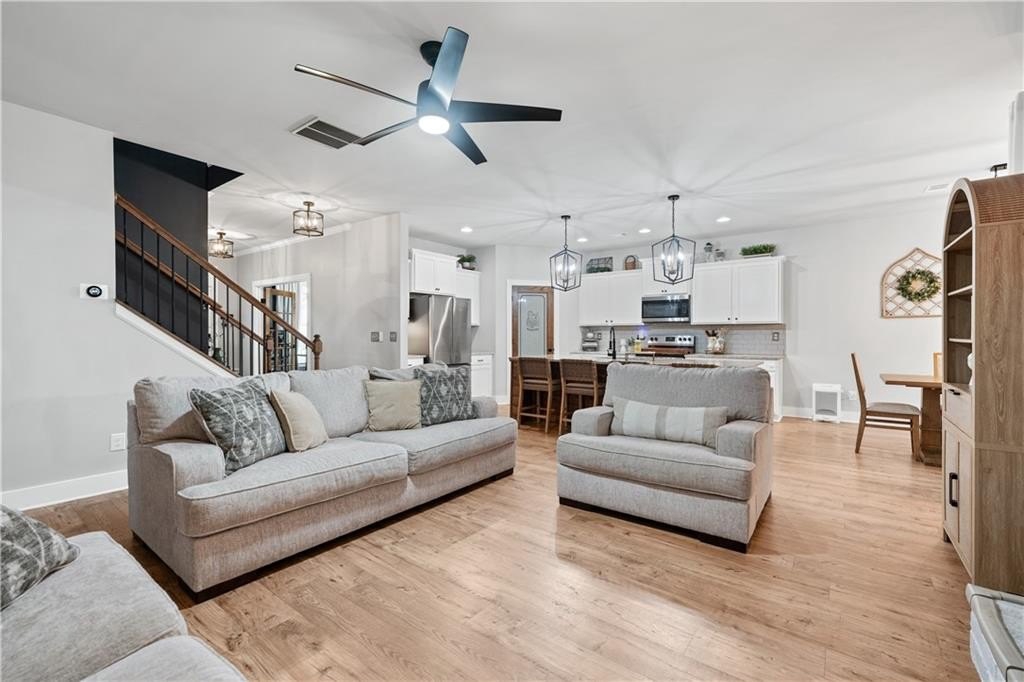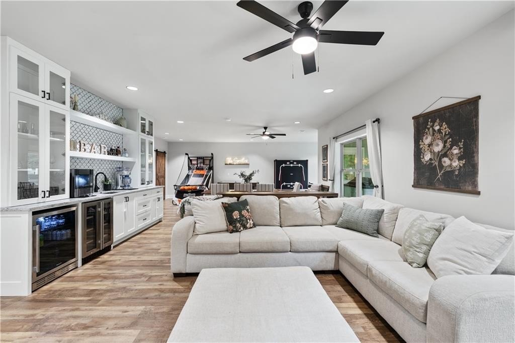 Welcome to your dream home! This beautifully updated 5 bedroom, 4 bathroom home on a fully finished basement sits on 1.5 + acres and offers the perfect blend of comfort, function, and style. Step inside to find modern finishes at every turn, upgraded lighting fixtures that elevate every room and LVP flooring throughout (No Carpet). The kitchen features a large island complete with granite countertops, stainless steel appliances and a custom pantry. Upstairs, the newly remodeled master bathroom and custom closet create a true retreat, while a custom barn door offers convenient access between the 5th bedroom and the master, ideal for a nursery or home office. (can easily be converted back if desired) As you head downstairs, you will find the recently finished basement that features a full bathroom, custom wet bar and a flex room, which is perfect for a gym, media room, or office. Enjoy outdoor living at its best with a covered back deck, storage shed, custom playhouse, epoxy coated patios and garage floors, a HUGE fenced in backyard and beautifully enhanced landscaping with rock accents and an in ground irrigation system. WAY too many upgrades to list. Conveniently located near schools, major highways and shopping. This home truly has it all!