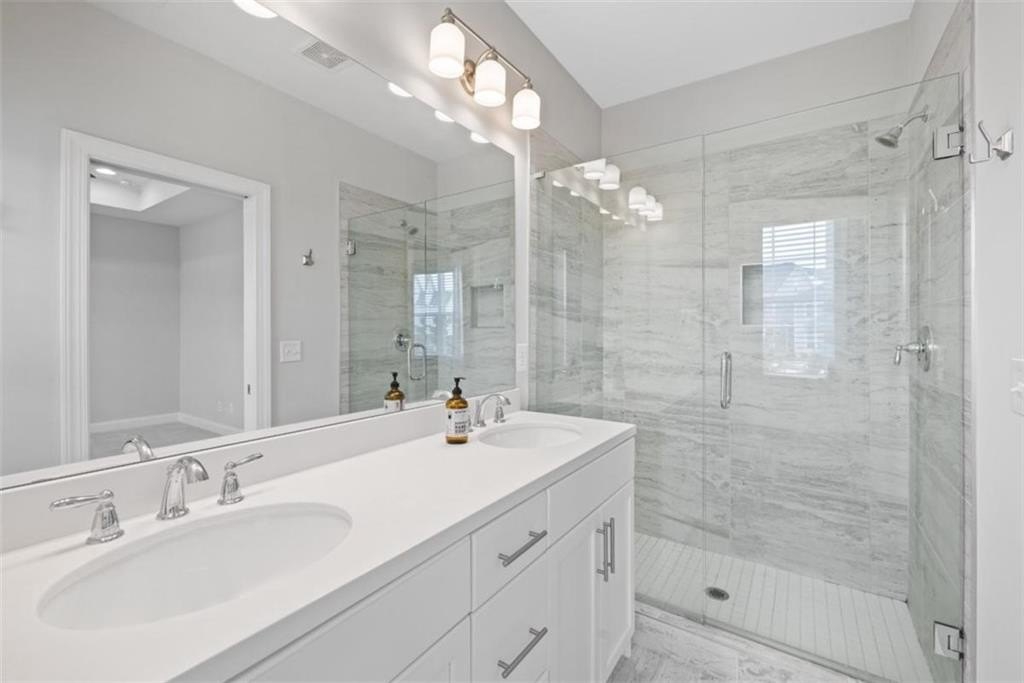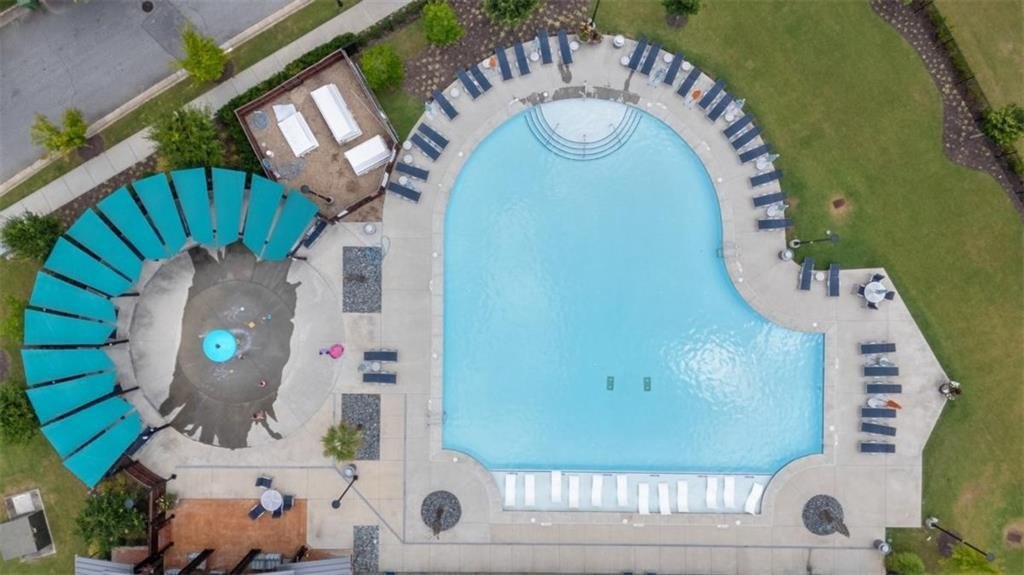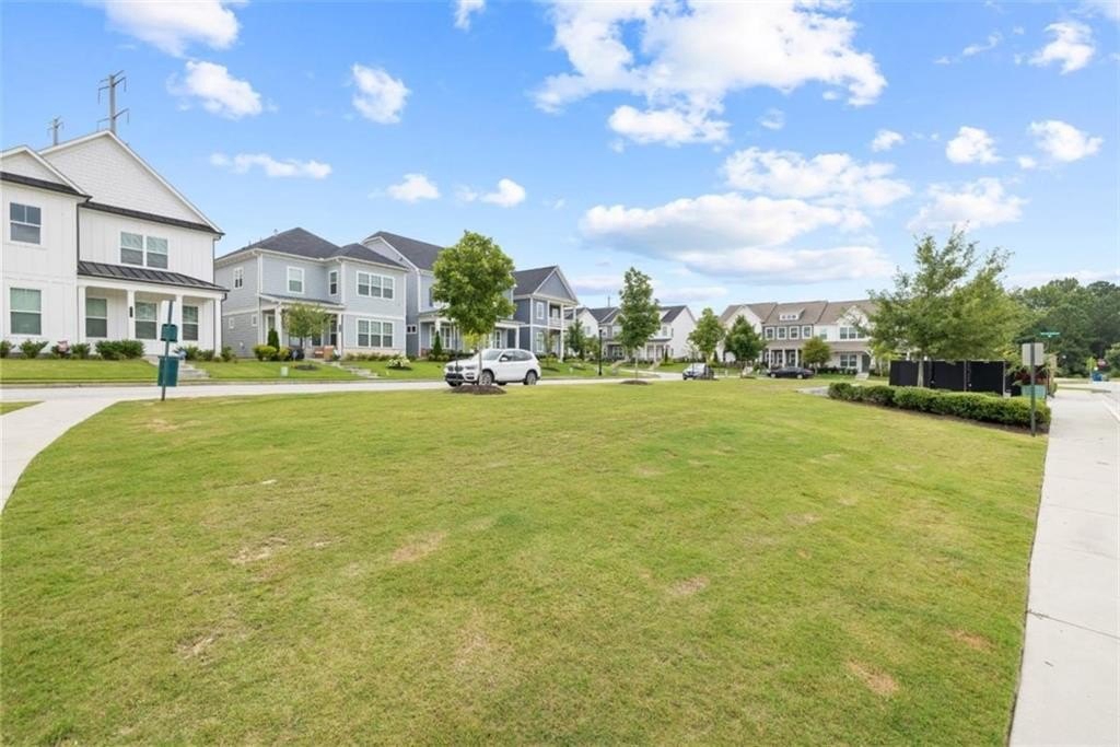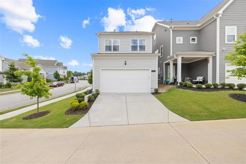 Highly desired West Highlands 3/2.5 home. Bright and modern kitchen with white cabinetry with soft-close drawers, gas cooktop, large quartz island and bar seating. Living room with fireplace will easily accommodate a sectional sofa, with additional space for a breakfast table. Powder room on main level. Upstairs are 3 bedrooms including the primary with walk-in closet, and attached bath, tile shower with seamless glass upgrade, and double vanity. Secondary bedrooms with shared bathroom. All adjacent to convenient, spacious laundry room. Priced to sell, and truly better than new with stainless refrigerator, washer/dryer, window treatments and mounted flatscreen TV included - makes this one move-in ready without the extra expenses. Two car garage. Corner home overlooks front green space. Neighborhood offers a resort style community pool, playground, and dog park. Close proximity to all your favorites including The Works, Westside Provisions, and great restaurants in West Midtown. Enjoy easy access to Proctor Creek walking trails. The home is equipped with a complete Ring system. Welcome Home!