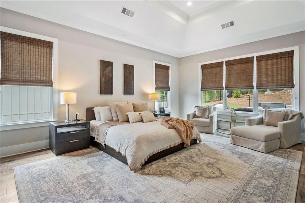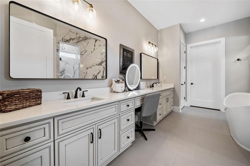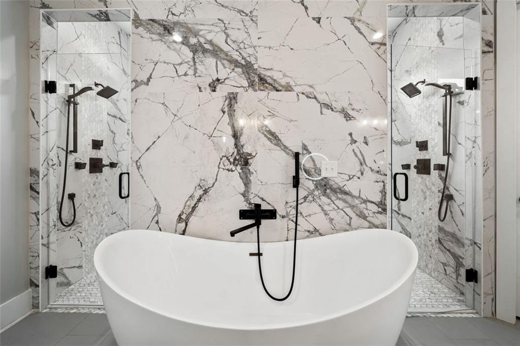 Step inside to over 4,500 square feet of thoughtfully designed living space with 10 foot ceilings, including two true primary suites—one on each level. The main-level suite features a spa-like bathroom with a freestanding soaking tub, oversized double-entry shower, dual vanities, and an enormous walk-in closet. Upstairs, the second primary suite includes its own spacious walk-in shower and closet, ideal for multigenerational living or long-term guests.