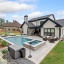 The backyard is a showstopper—featuring a heated PebbleTec pool with integrated hot tub, built-in outdoor kitchen with granite countertops, grill, and ice maker, plus an electric retractable screen that transforms the patio into a screened-in lounge with the push of a button. Enjoy your own private retreat surrounded by a fully fenced yard, outdoor landscape lighting, and built-in speaker system for seamless indoor/outdoor sound.