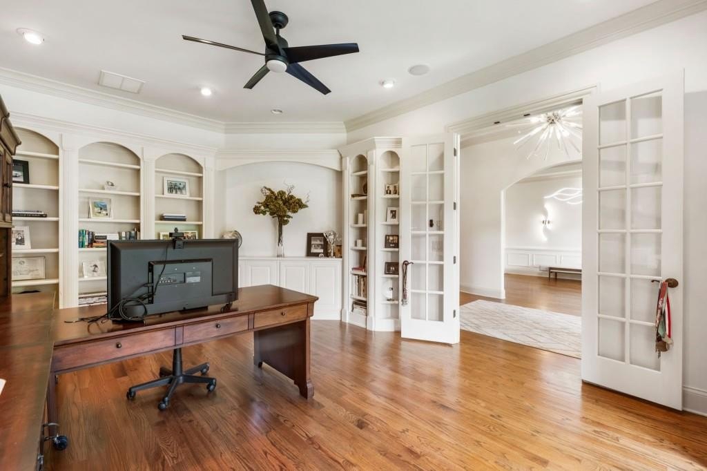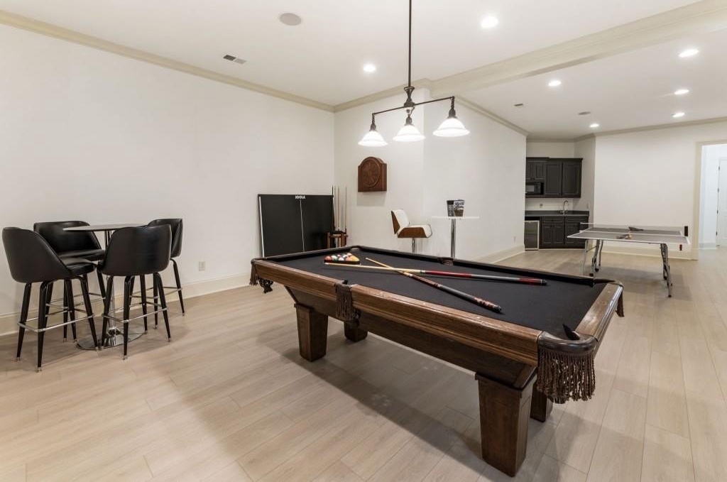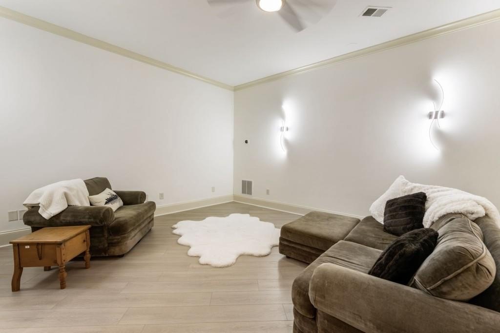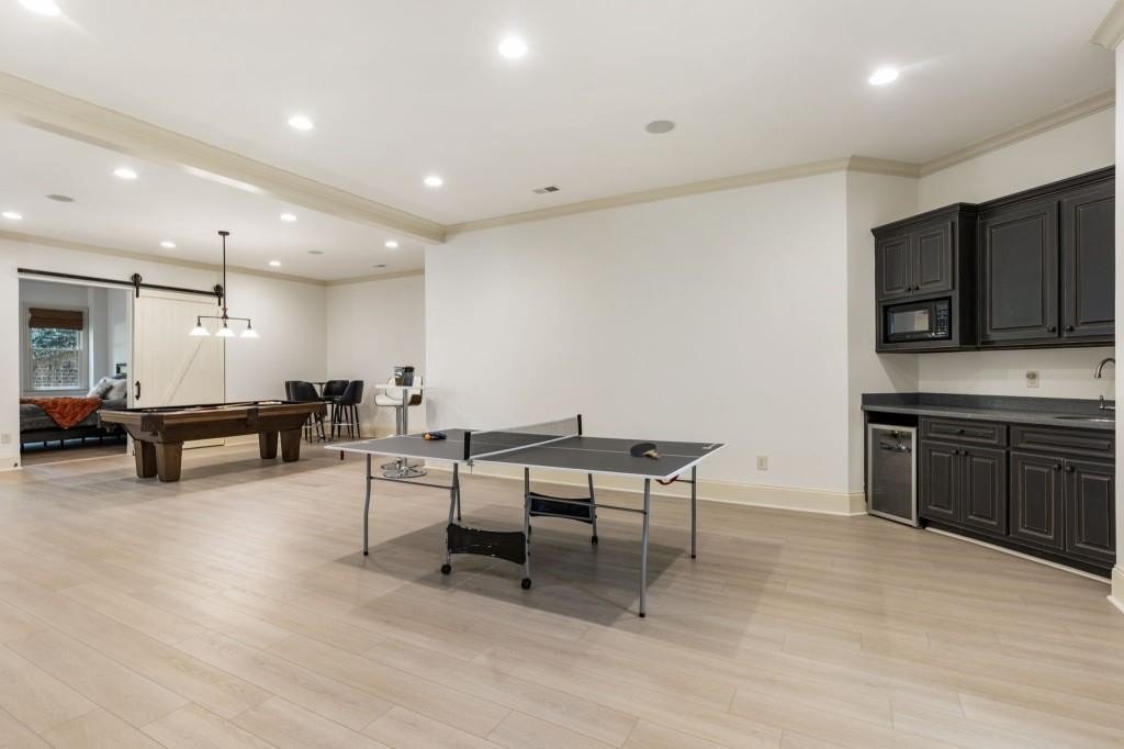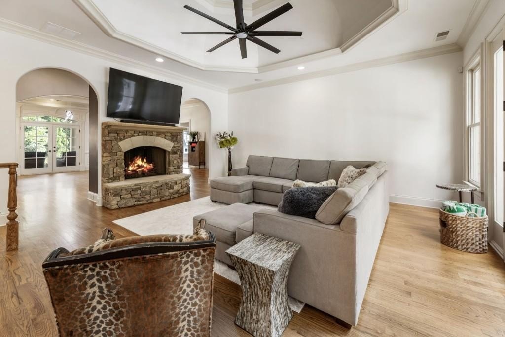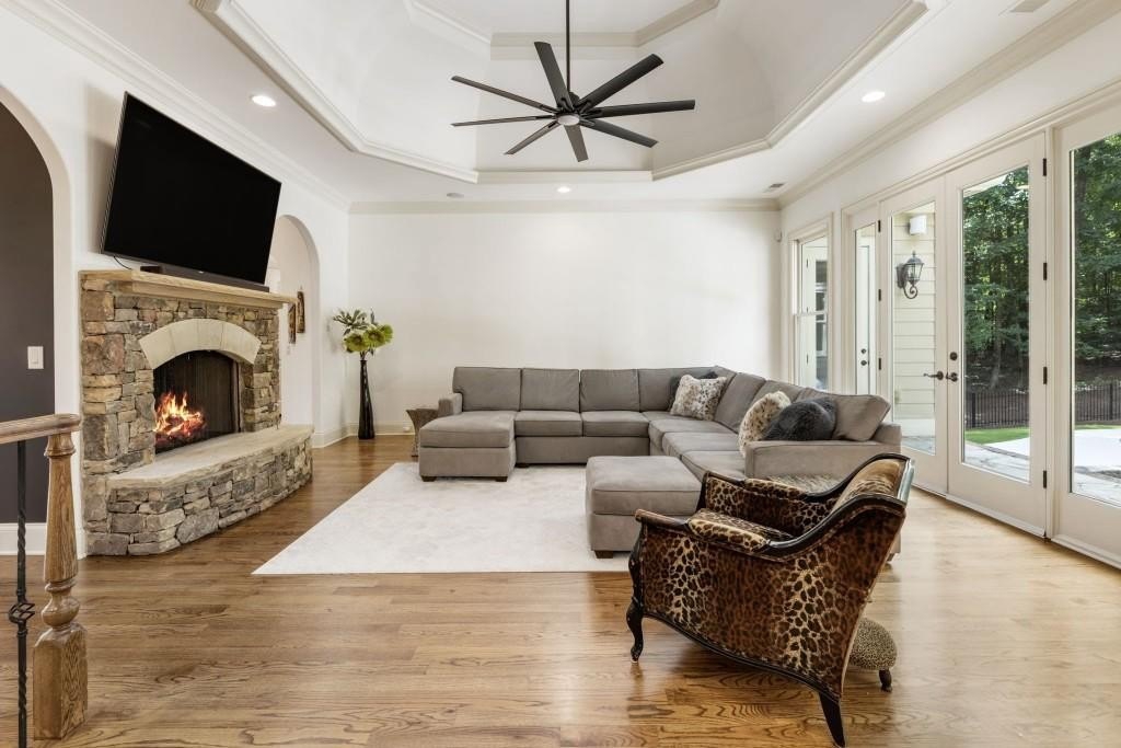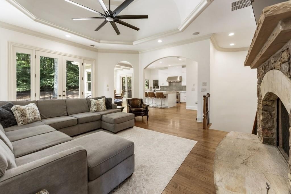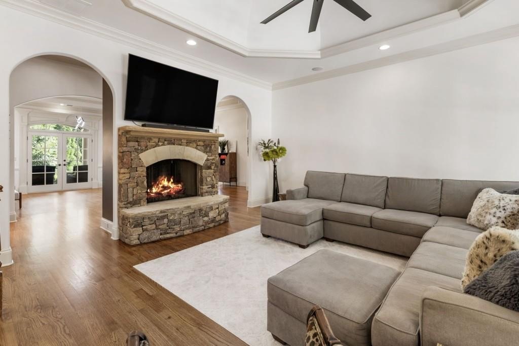 Welcome to this beautifully updated one level ranch style home that offers walk-out on the main level to your outdoor oasis featuring a gunite sparkling pool, hot tub and lots of outdoor entertaining space. This gorgeous home is located in Forsyth county and situated at the end of a quiet cul-de-sac in gated enclave of luxury homes. The charming front porch offers a warm welcome and sets the tone for the comfort and quality found throughout the property. Upon entering through the front door, you are greeted by a formal dining room on your right and a private study on your left, complete with built-in bookcases. This thoughtful layout creates a balanced and inviting entry that leads effortlessly into the main living space. The heart of the home features an open-concept kitchen design with this oversized island that offers seating and open concept. The completely modernized kitchen with all new appliances opens to the living room and screened porch. A centrally located fireplace serves as a warm and welcoming focal point, perfect for both everyday living and entertaining. Just off the kitchen, a screened-in back porch with its own fireplace offers a comfortable outdoor living space that can be enjoyed year-round. The primary suite is a peaceful and well-appointed space. The ensuite bathroom features separate dual vanities, two walk-in closets, and a large walk-in shower. A private bonus room, currently used as a home gym, adds function and flexibility. A second bedroom with ensuite is also located on the main floor. The fully finished basement includes two additional bedrooms, two full bathrooms, one half bathroom, a generous media room, and a wet bar. The lower level offers multiple flexible living spaces ideal for craft room, media space, movie room, ping pong or pool table room perfect for entertaining & hosting guests. Every major system has been thoughtfully updated including pool heater, HVAC, water heaters, roof replaced and freshly painted interior with all bathrooms and the kitchen perfectly updated. Even the garage has been upgraded with the flooring recently completed. This home offers timeless design, modern upgrades, and a serene setting. Minutes to GA 400, and shopping/dining at The Collection, Halcyon, and Avalon. Enjoy living with the convenience of Fowler Park and the Greenway right outside of your community!
