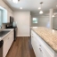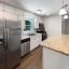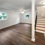 Step inside to find a spacious and airy main level with a modern open-concept layout. The renovated kitchen is the heart of the home, showcasing white cabinetry, granite countertops, a large island, and stainless steel appliances including a gas range—perfect for everyday living or entertaining. The kitchen flows seamlessly into both the dining area and the family room, creating an ideal gathering space filled with natural light. Elegant iron rail staircases add a custom touch and visual charm to the layout.