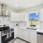 The remodeled kitchen showcases new cabinets, stainless steel appliances, and quartz countertops—a perfect space for both cooking and entertaining.