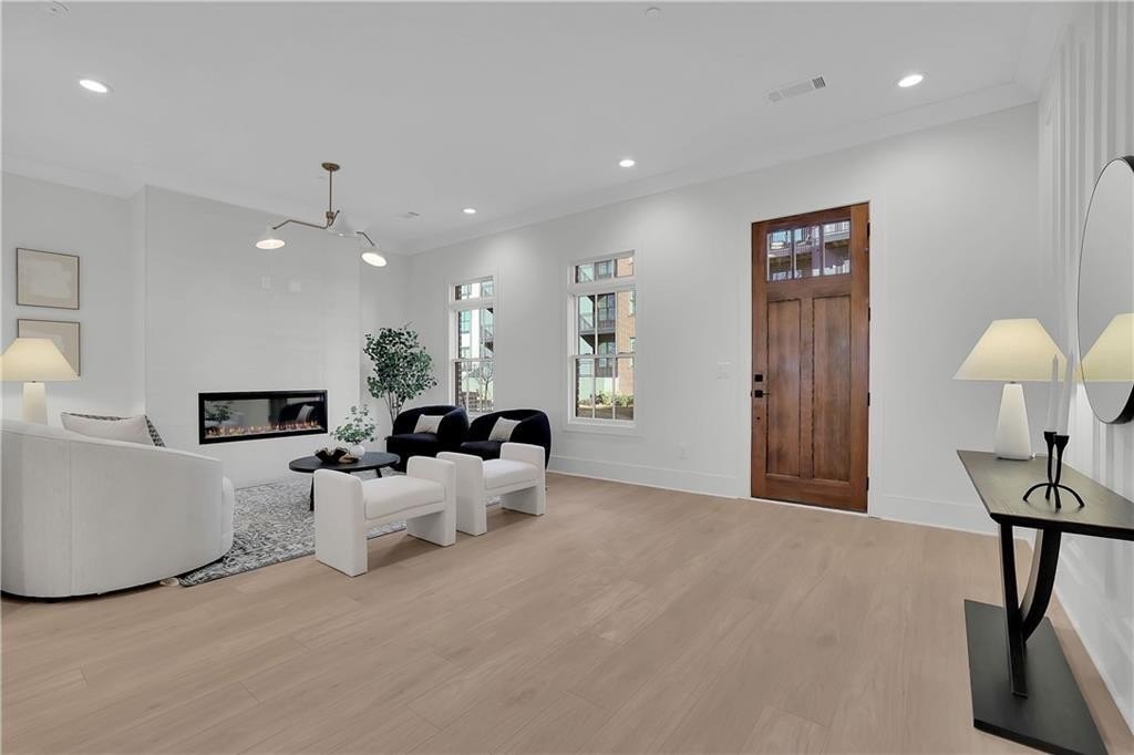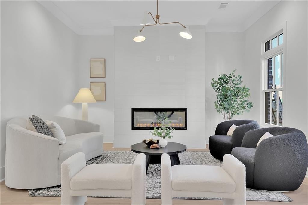 Discover the perfect fusion of luxury and leisure at Skyview on Broad, nestled in the heart of Downtown Sugar Hill. Kittle Homes,a 2 time Obie award recipient proudly presents a stunning new collection of three-story luxury townhomes, thoughtfully designed to complement your lifestyle. Entertain with ease in this expansive floorplan. Kitchen features sleek hood vented to the exterior, quartz countertops, designer backsplash, apron front sink and Bosch Appliances. Kitchen access to private deck from kitchen area. This open floorplan has an open-concept dining area and fireside family room with linear fireplace and tiles to ceiling for that transitional look that is perfect for everyday use or for entertaining. Owner's ensuite features freestanding tub, separate shower with frameless shower door with tiles to the ceiling, and double vanity. Two feature walls add class and charm to the home. The all-brick exteriors throughout the community evoke a sense of timeless luxury that will make anyone proud to call this home. Gas lanterns grace your front door to add charm and chic! Don’t miss this opportunity to be part of one of Sugar Hill’s most luxurious new construction communities where modern living meets hometown charm. Just outside your door, immerse yourself in the dynamic yet charming atmosphere of Sugar Hill’s walkable Downtown. Explore an array of shops, restaurants, and entertainment options, all within reach. Year-round festivals and community celebrations bring the neighborhood to life, making it a welcoming and vibrant place for all ages. A community Dog Park is there for your pooch to run around and enjoy outdoors. PICTURES ARE NOT INDICATIVE OF THE FLOORPLAN, BUT ARE REPRESENATIVE OF FINISHES. PICTURES ARE OF A DIFFERENT FLOORPLAN. Projected completion date FALL 2025.