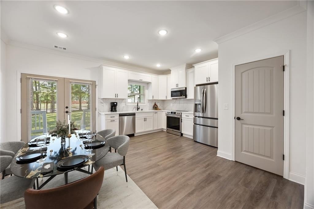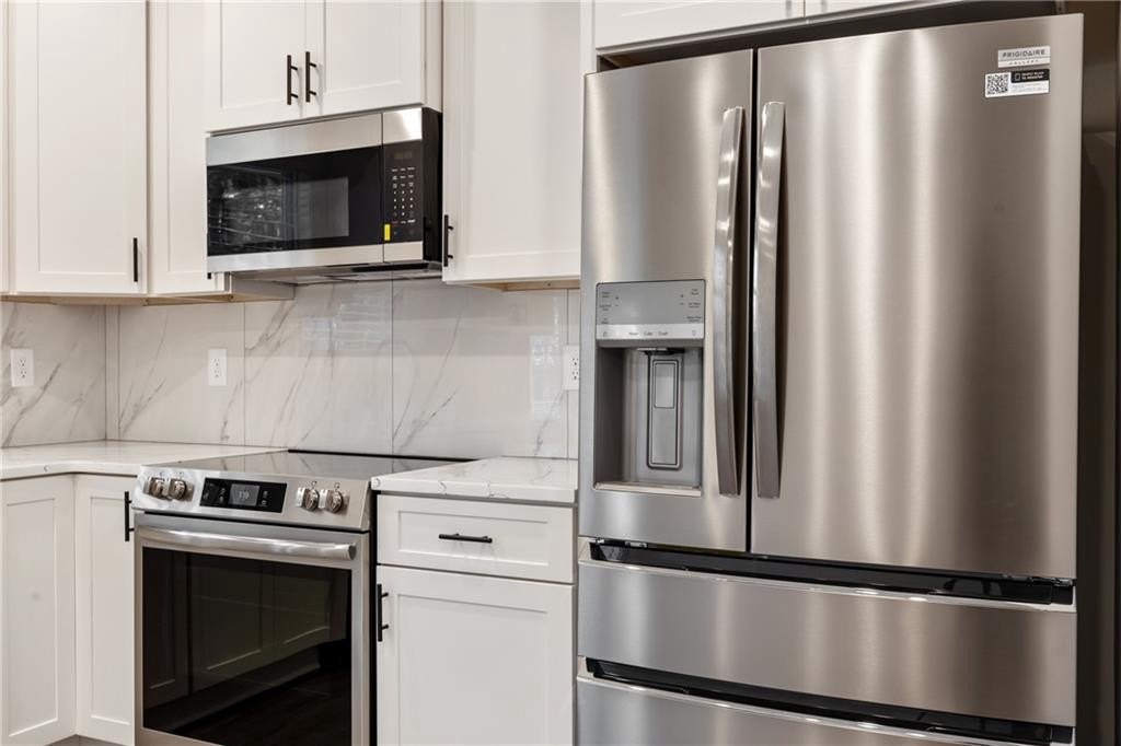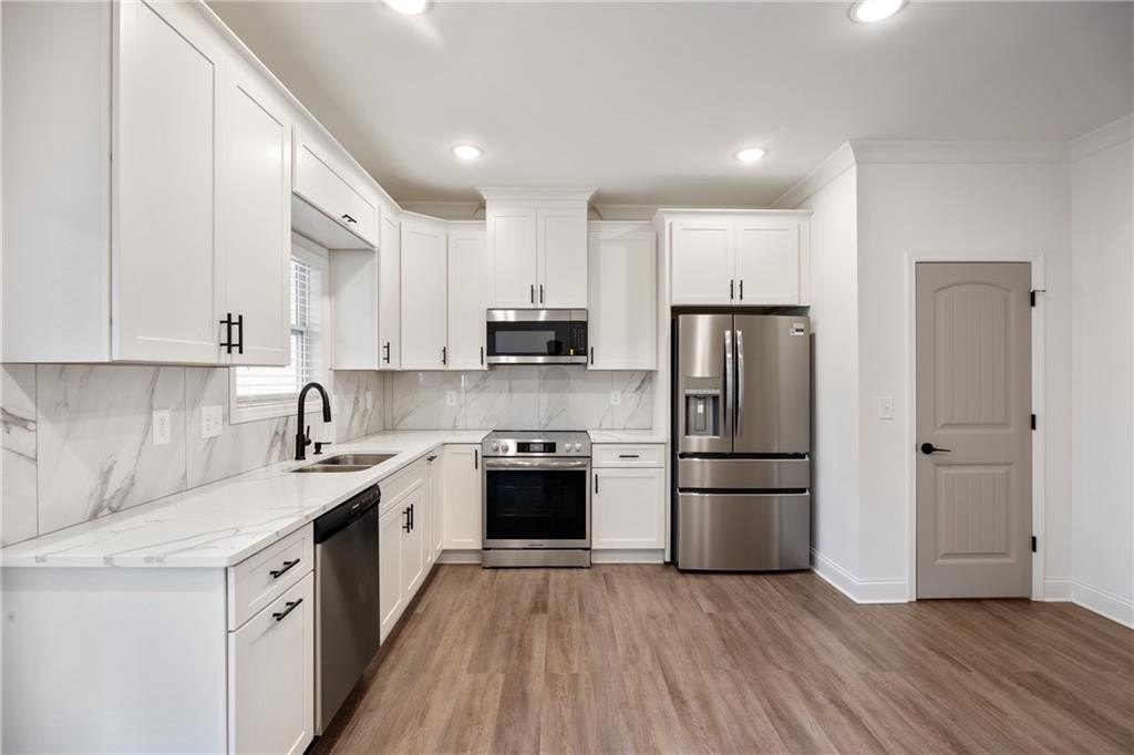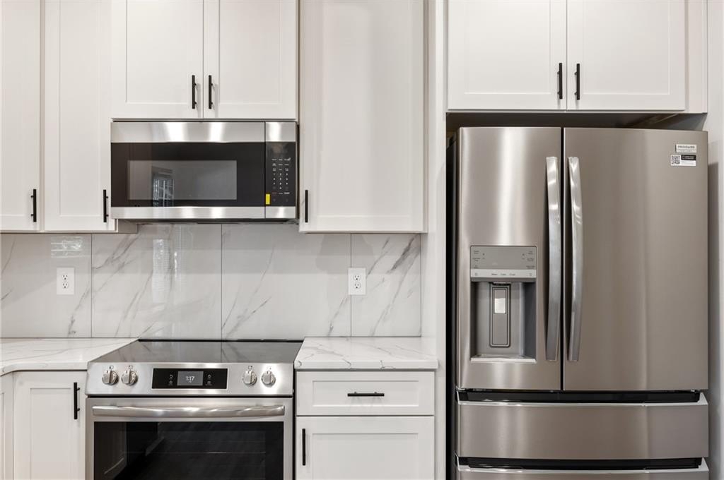 Step inside and be greeted by an open, airy floor plan filled with natural light and thoughtful details throughout. The living space flows effortlessly into a beautifully designed kitchen — complete with Quartz countertops, soft close cabinets, and modern stainless steel appliances. It’s a space that feels both fresh and cozy, perfect for everything from casual dinners to holiday gatherings.