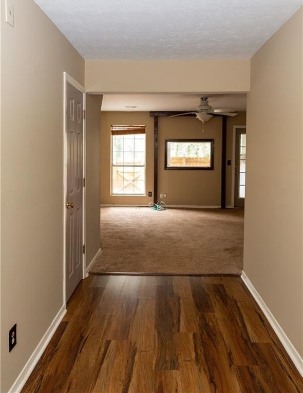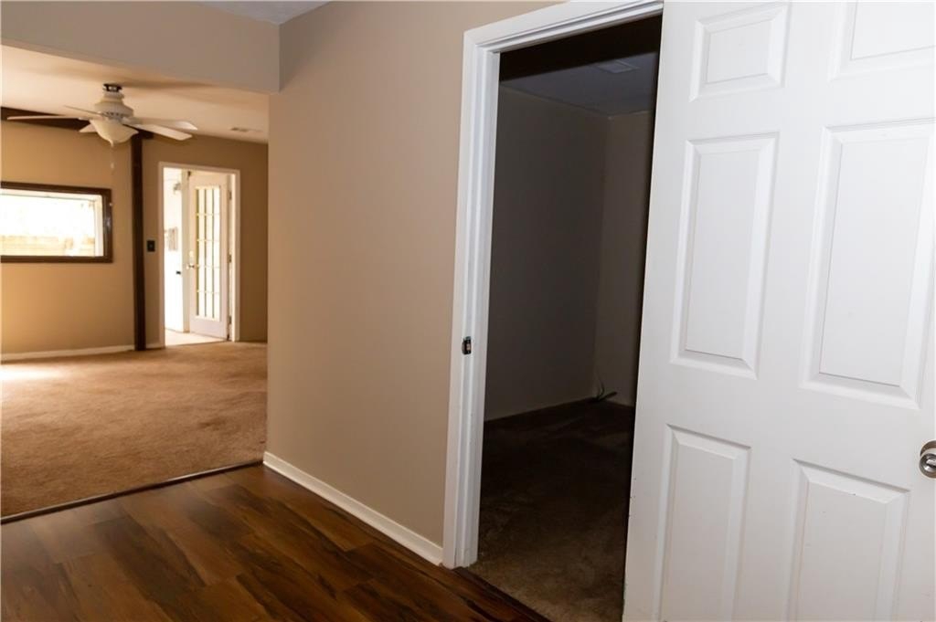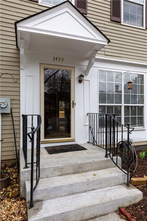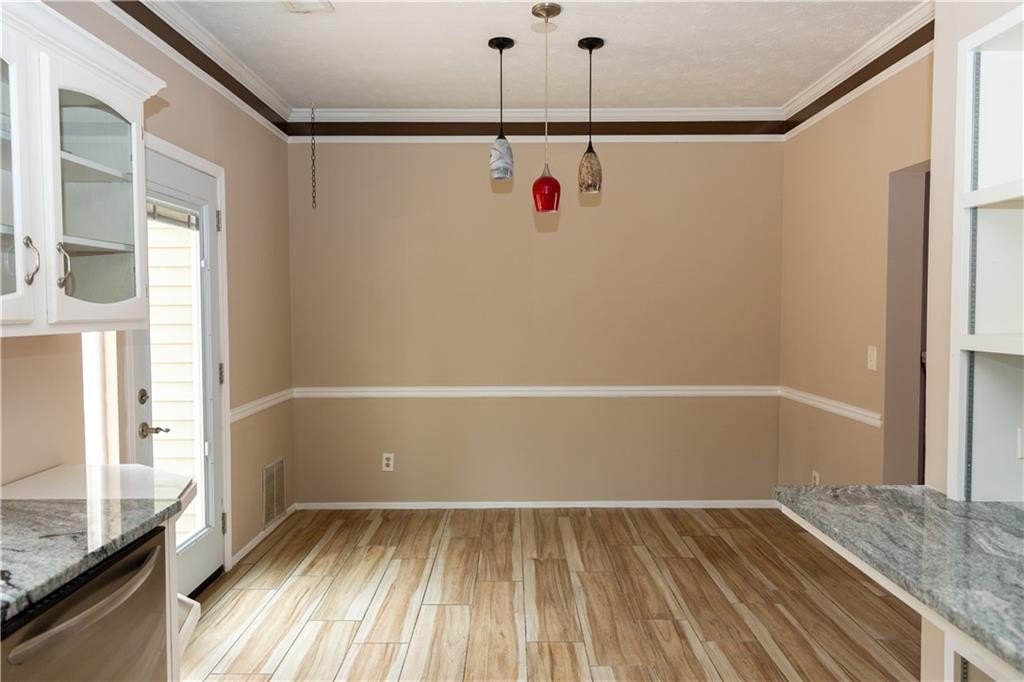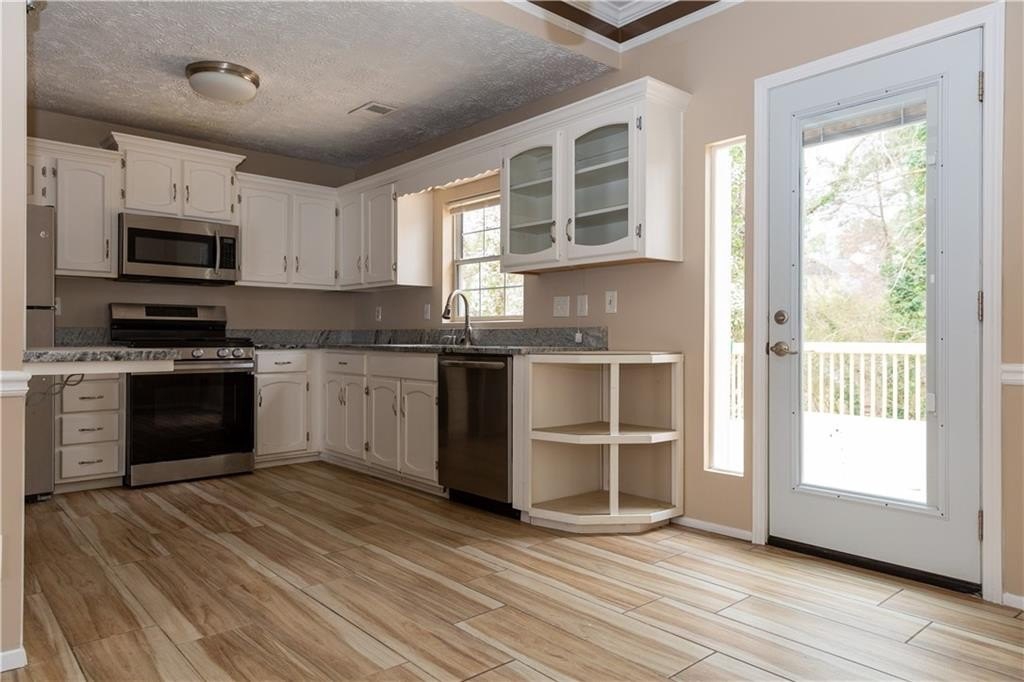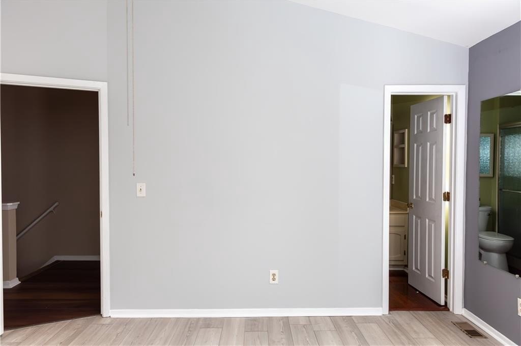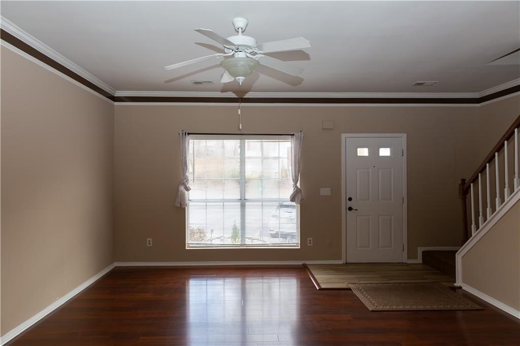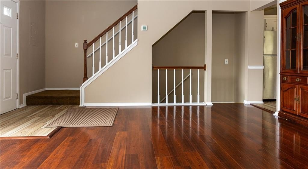 Welcome to this beautifully updated townhome located in the sought-after Washington Square gated community! As you step inside, you'll be greeted by a spacious living room featuring warm hardwood floors and a cozy fireplace, perfect for relaxing or entertaining. The open kitchen is a standout with sleek stone countertops, white cabinets, and stainless steel appliances-including a refrigerator with icemaker, stove, microwave, and dishwasher. There's also a comfortable eat-in dining area, and from the kitchen, you can step right out onto a lovely wood deck that overlooks a peaceful creek and tree-lined view-an ideal spot for morning coffee or unwinding in the evening. Upstairs, you'll find two generously sized bedrooms, each with its own private ensuite bathroom and ample closet space. The lower level offers a third bedroom, a half bath, and a bright sunroom that opens to a fenced outdoor area for added privacy. The home is surrounded by thoughtful landscaping and includes an irrigation system in the front yard for easy maintenance. Additional perks include two assigned parking spaces, access to the community pool, and HOA coverage for water, sewer, and trash. You'll love being part of a friendly neighborhood just steps from Graves Park, a 70-acre public space with walking trails, tennis and volleyball courts, a dog park, and a playground. This home truly has it all-style, space, and a prime location.