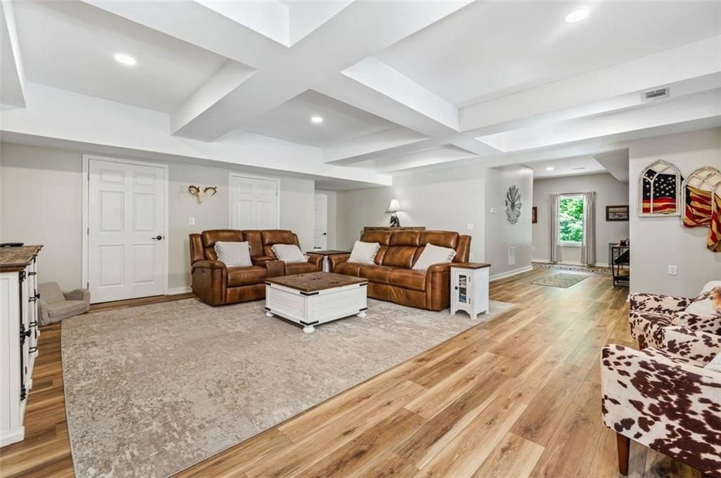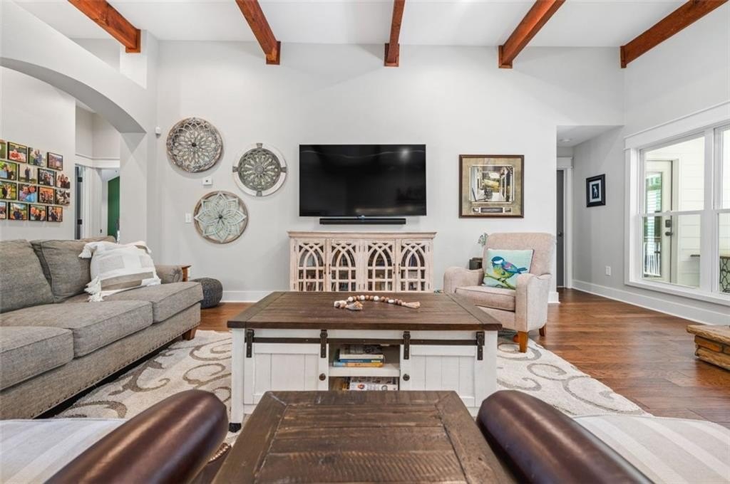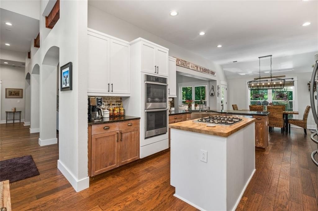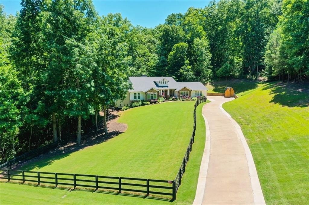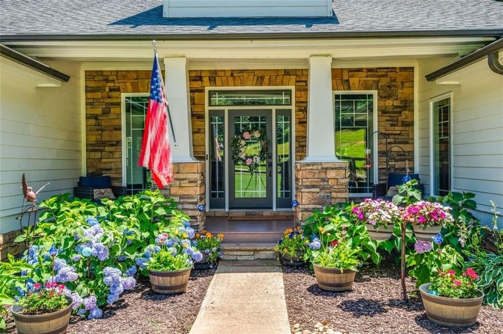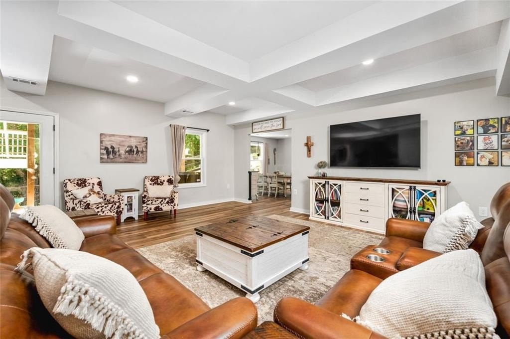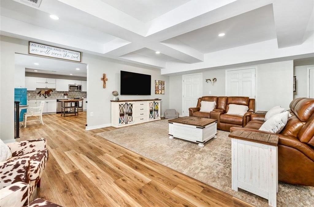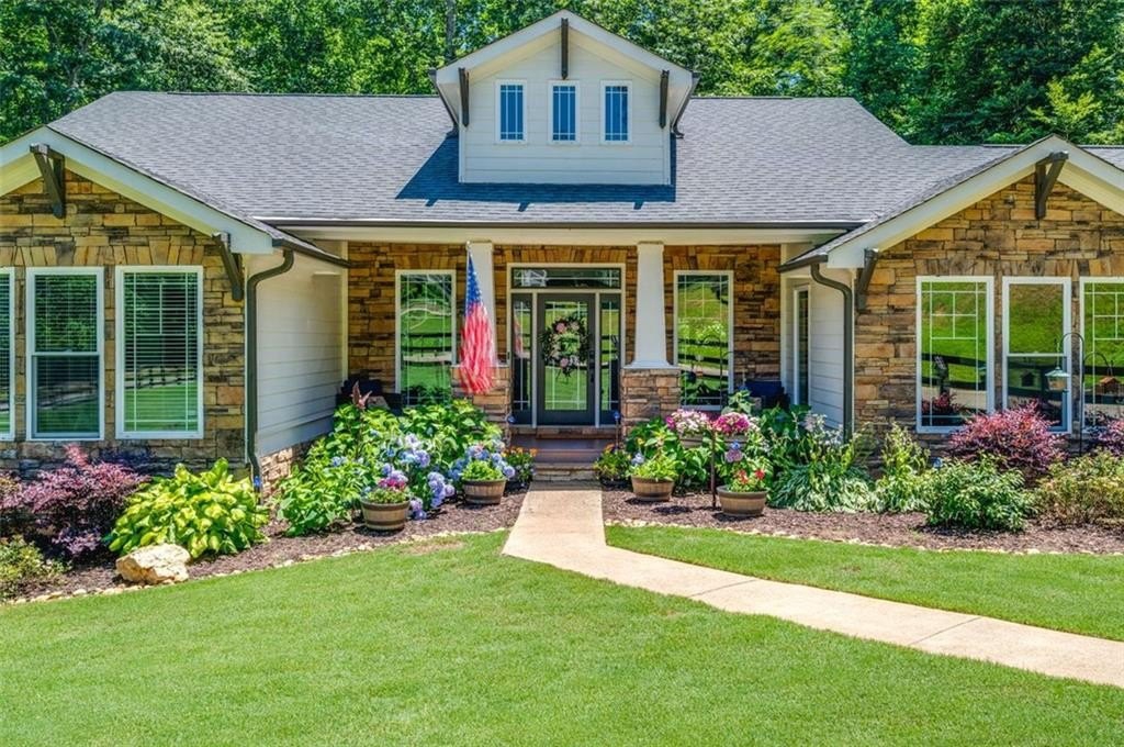 This Dreamy Ranch is Tucked away on a quiet, wooded lot, this Custom Ranch isn’t just a home—it’s a lifestyle. Picture yourself sipping morning coffee as deer wander through 2+ peaceful acres, the soft rustle of leaves replacing the noise of the city. Here, you’ll find the perfect balance of nature, luxury, and convenience—just minutes from Thriving Canton’s best shopping and dining, and top-rated Cherokee County schools. Inside, over 5,000 square feet of beautifully renovated living space blends rustic charm with modern elegance. Soaring beamed ceilings and a dramatic floor-to-ceiling stone fireplace set the tone, while fresh designer-selected finishes and newly painted interiors make every room feel warm and inviting.